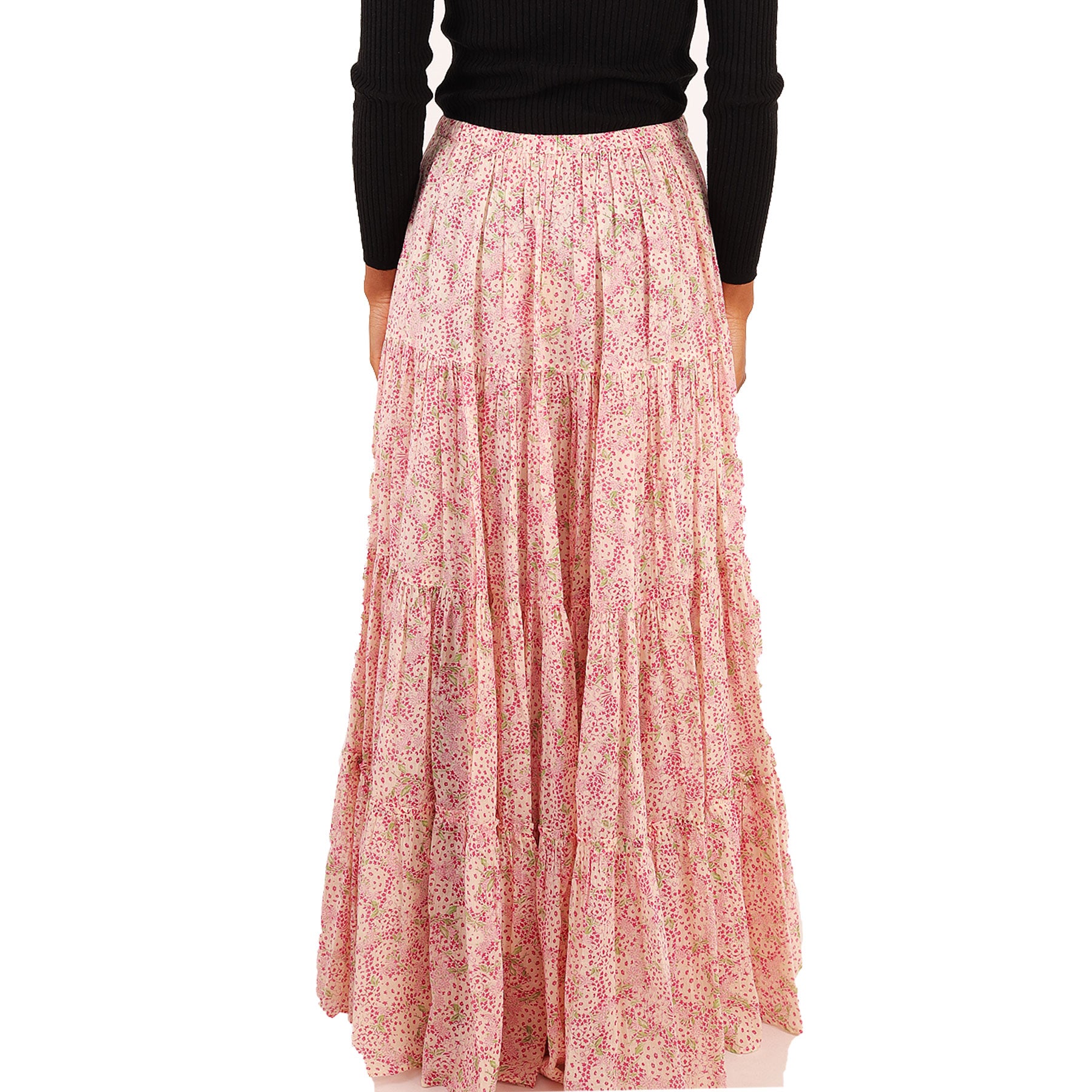 Gonna, Laurence Bras, a fiori, a balze, con elastico in vita, con cotone.