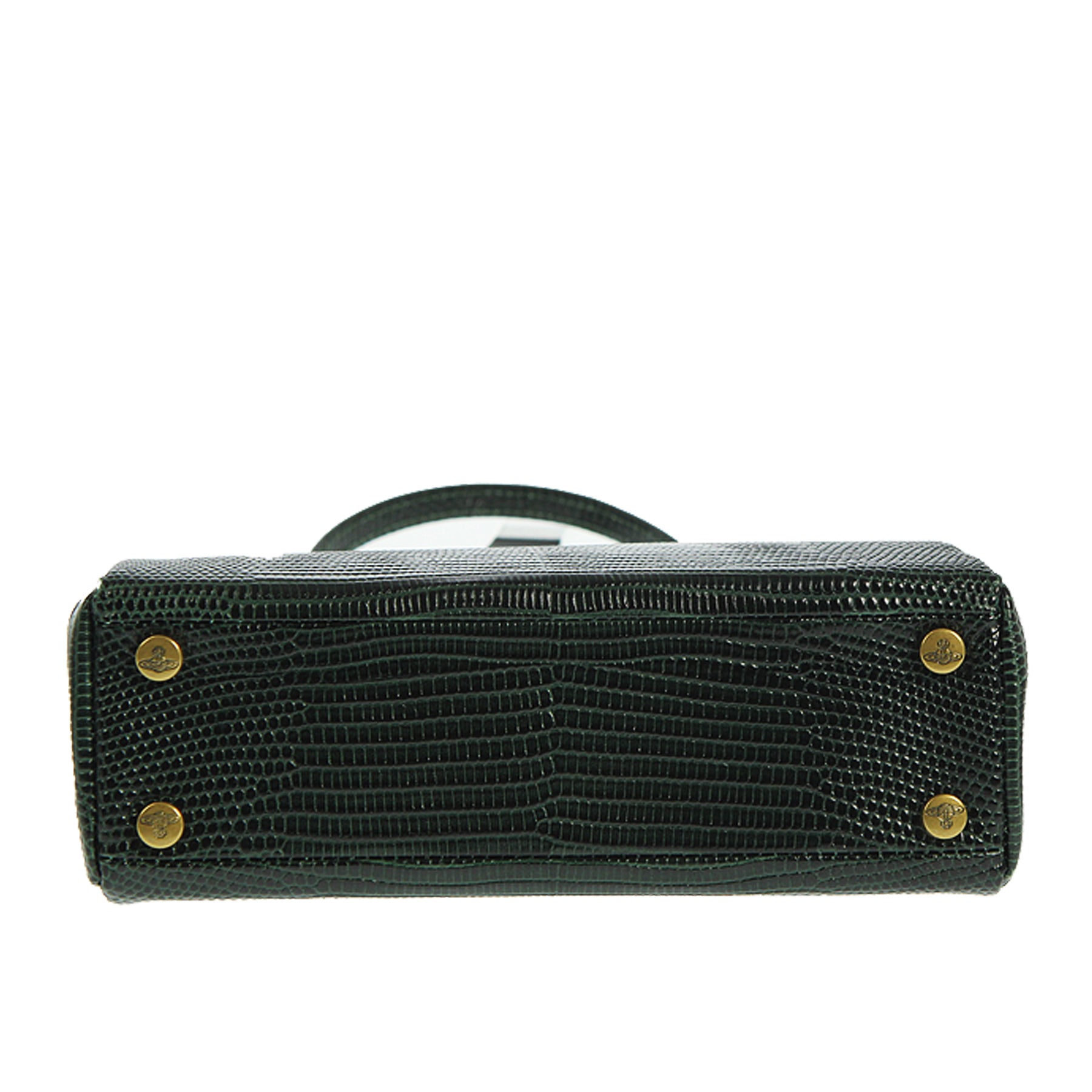 Borsa a tracolla Vivienne Westwood, in pelle effetto serpente, colore nero, logo strobo frontale, chiusura con bottone a scatto, tracolla staccabile, taschinna interna senza cerniera, retail € 475,00, altezza cm 19, larghezza cm 19, profondità cm 7