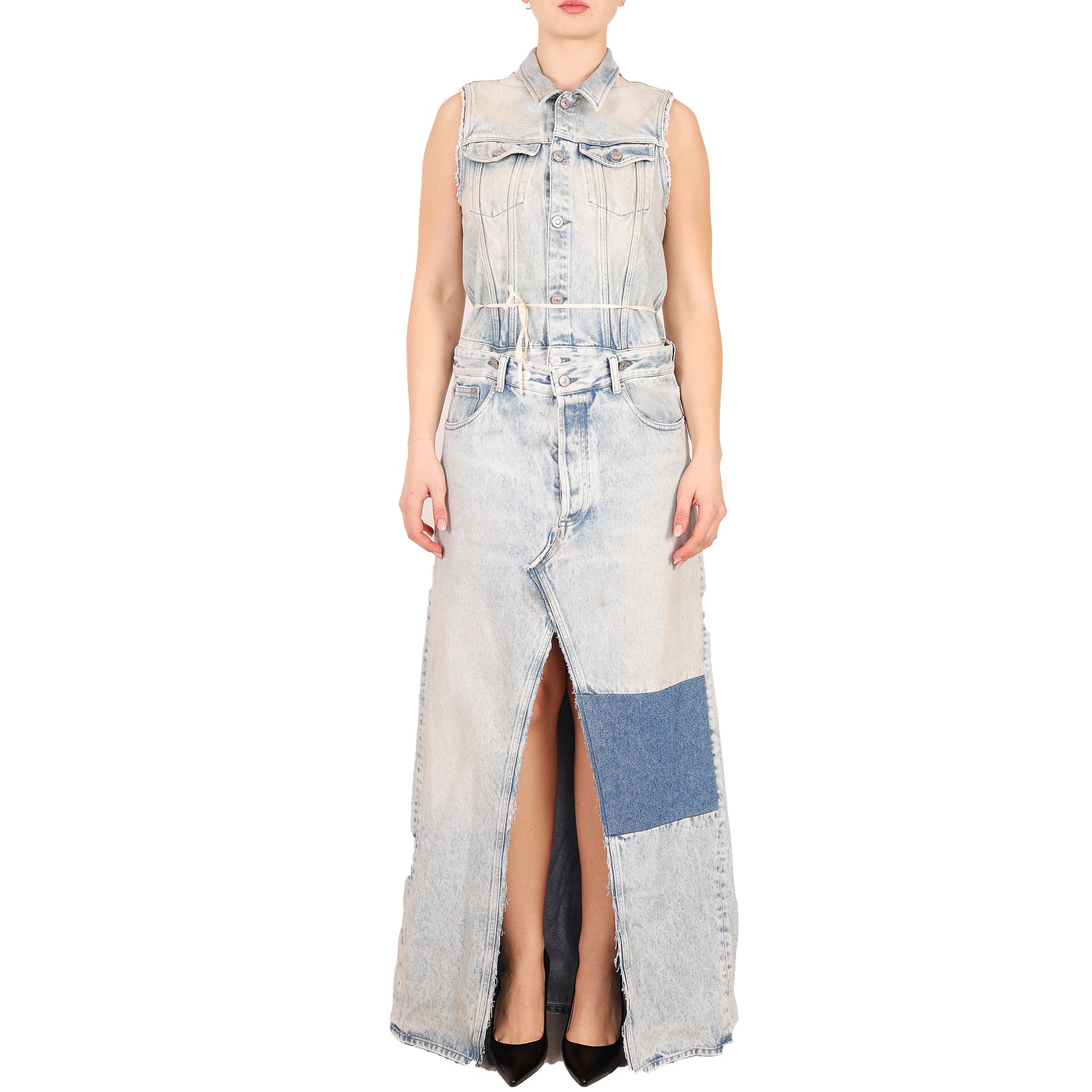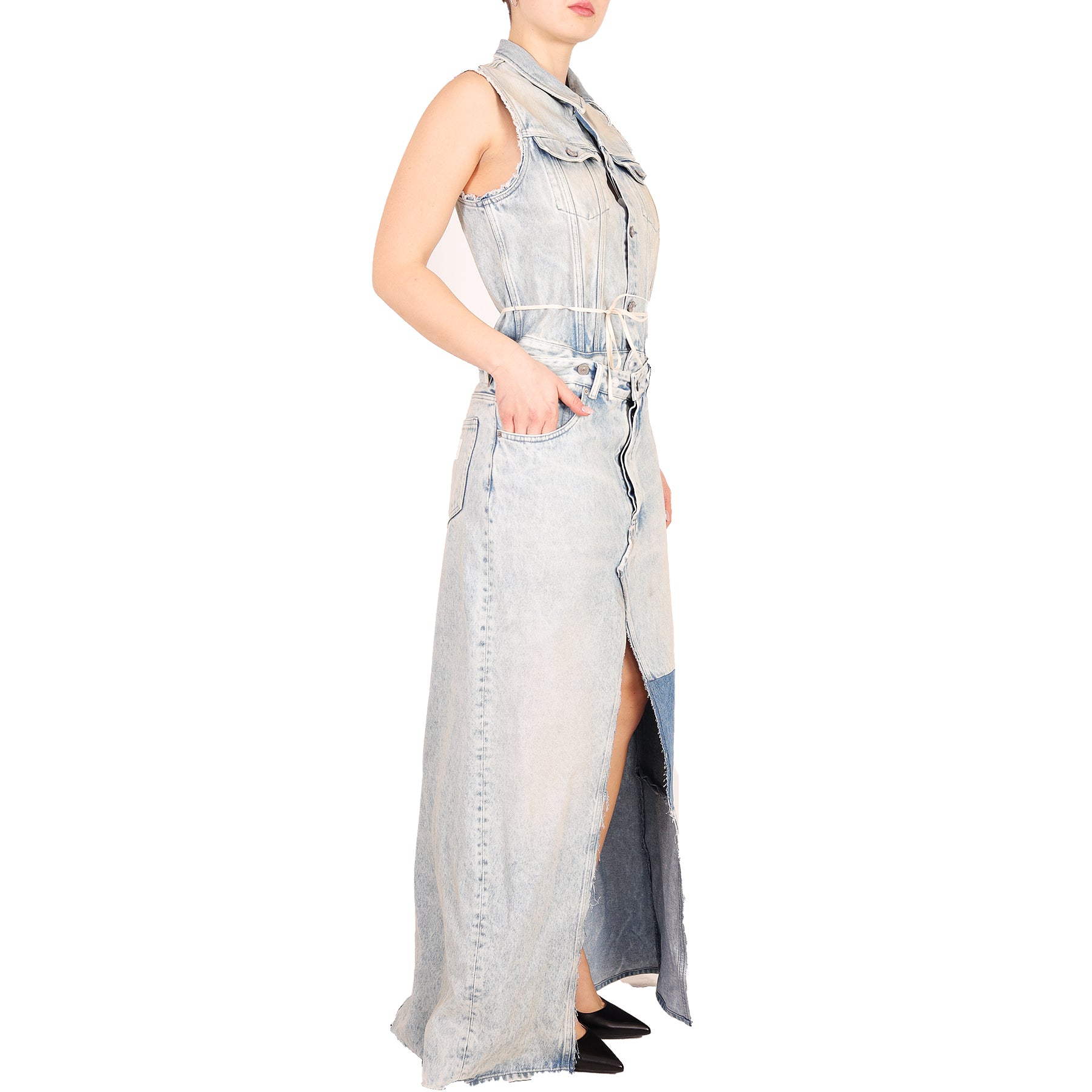 Abito Maison Margiela, in denim, senza maniche, con gonna rimovibile, chiusura con bottoni, con tasche, spacco frontale