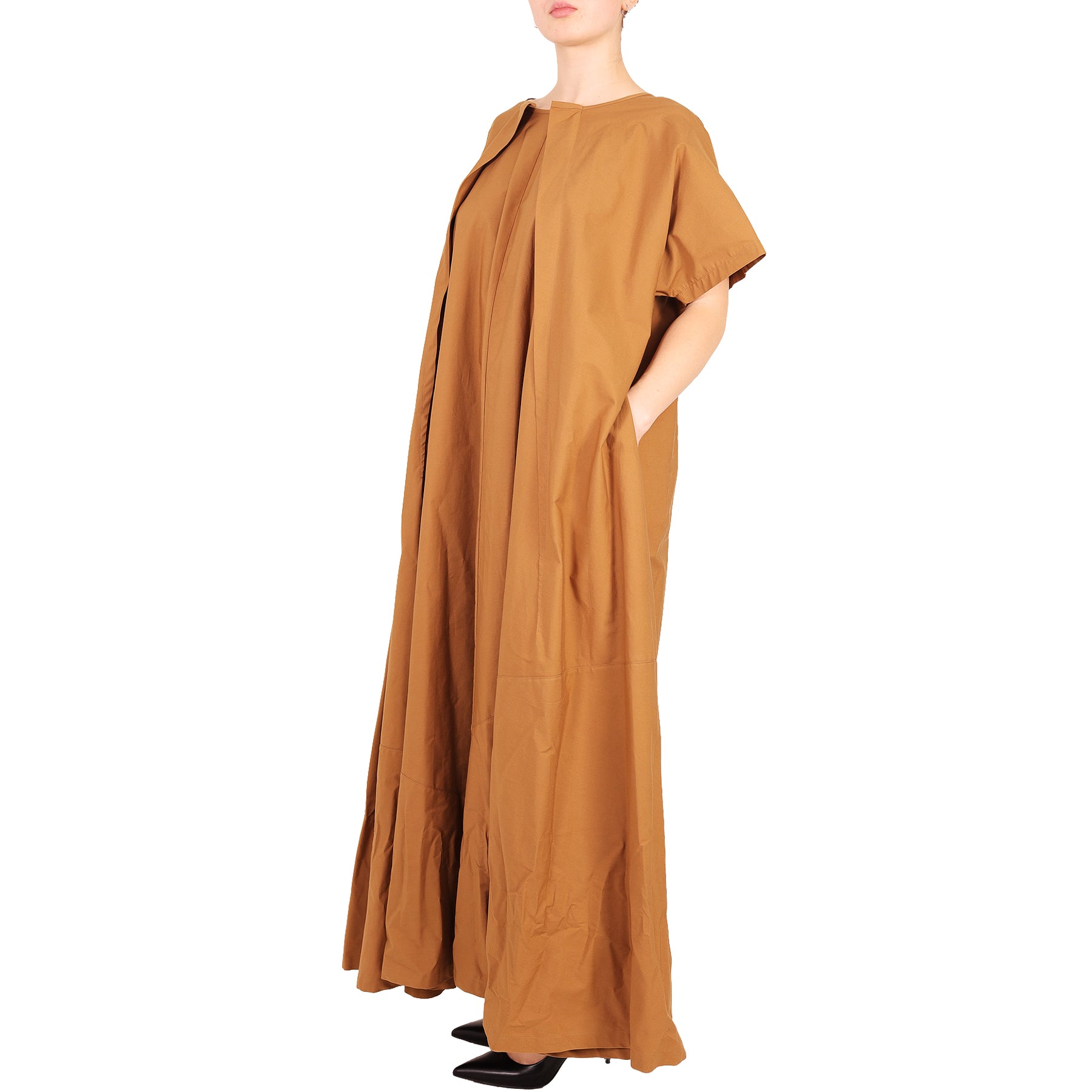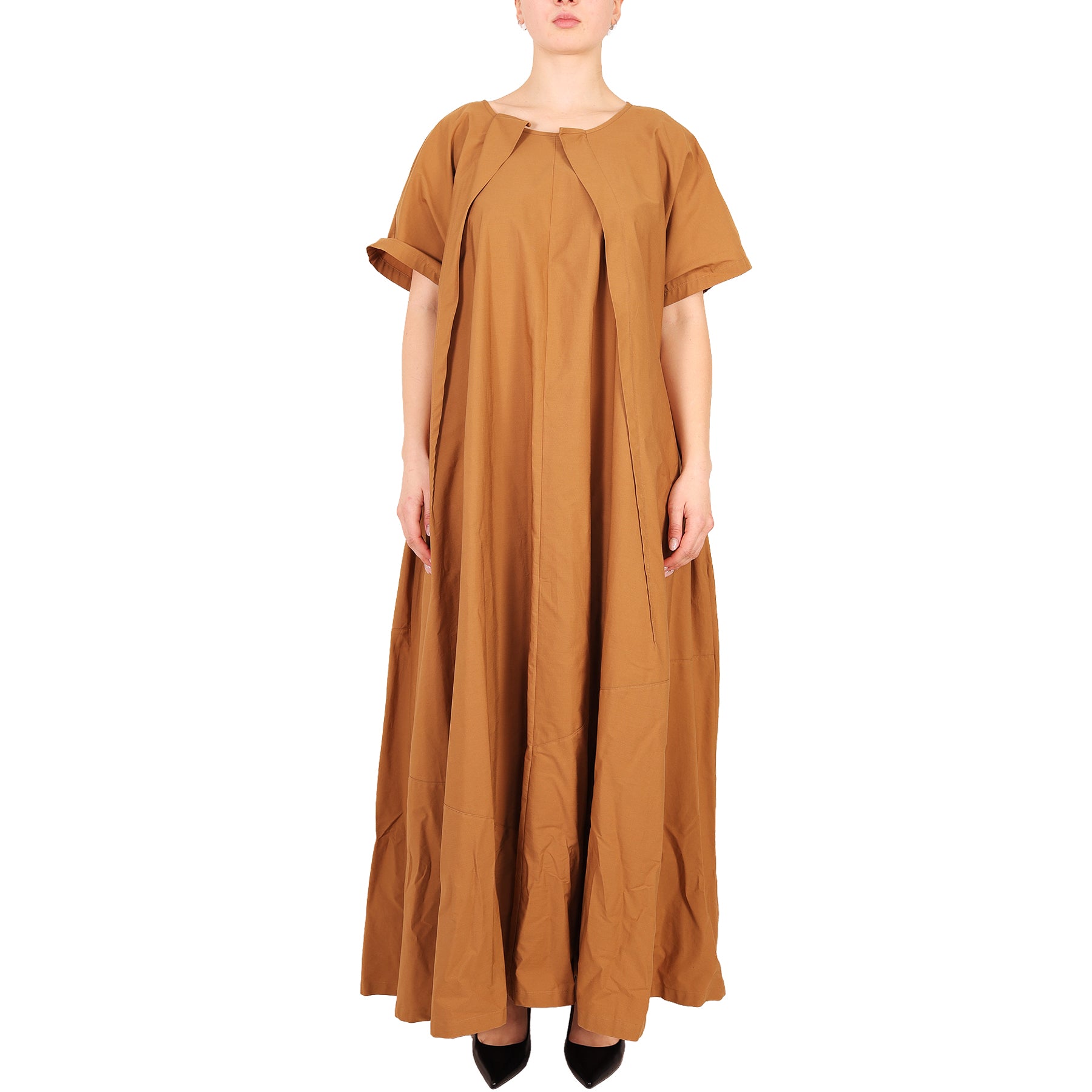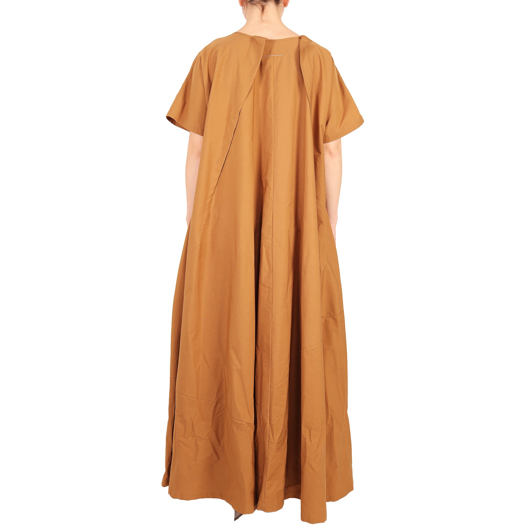 Abito lungo Maison Margiela, colore marrone, a maniche corte, scollo a barchetta, in cotone