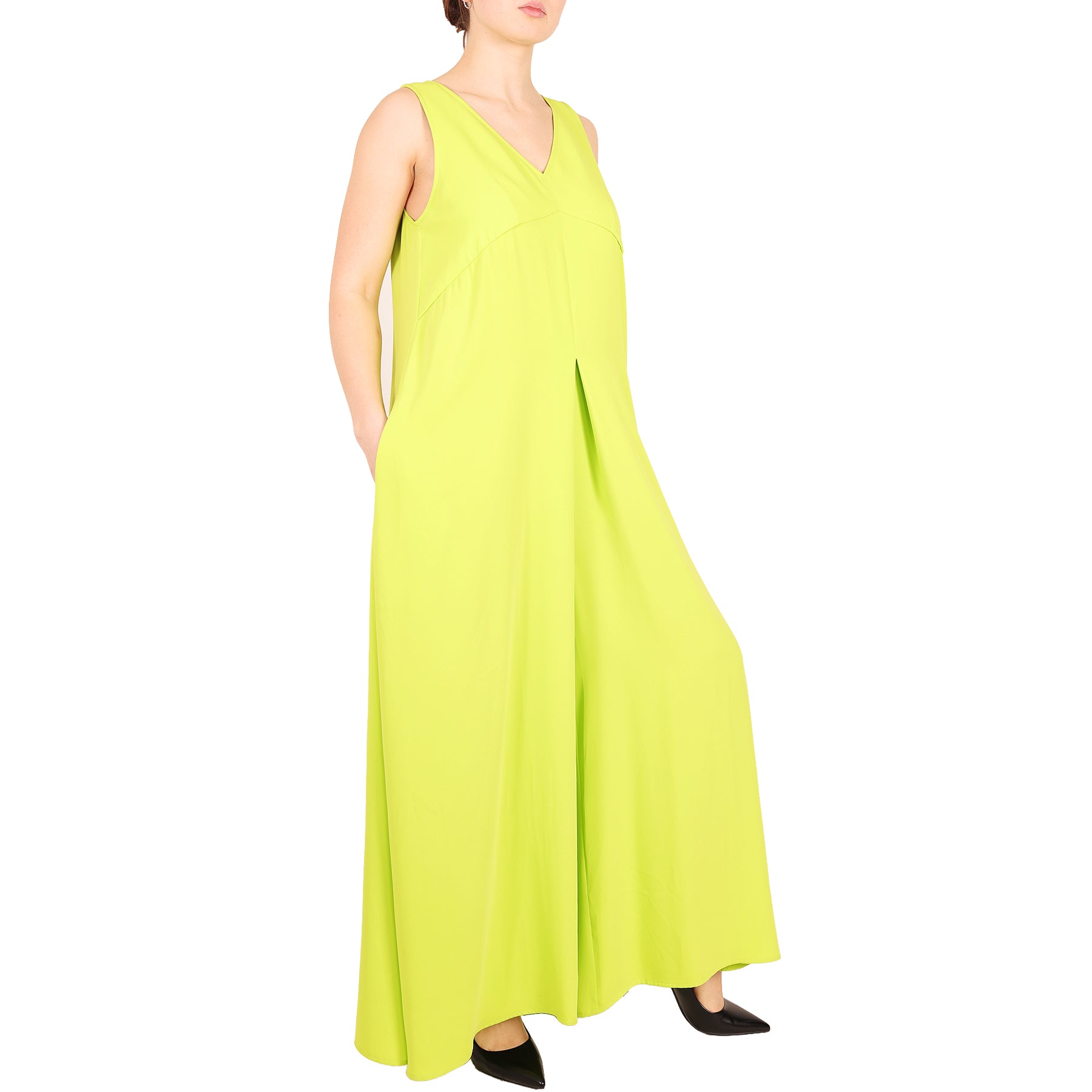 Tuta Maison Margiela, colore verde chiaro, senza maniche, scollo a v, zip sul retro, con tasche