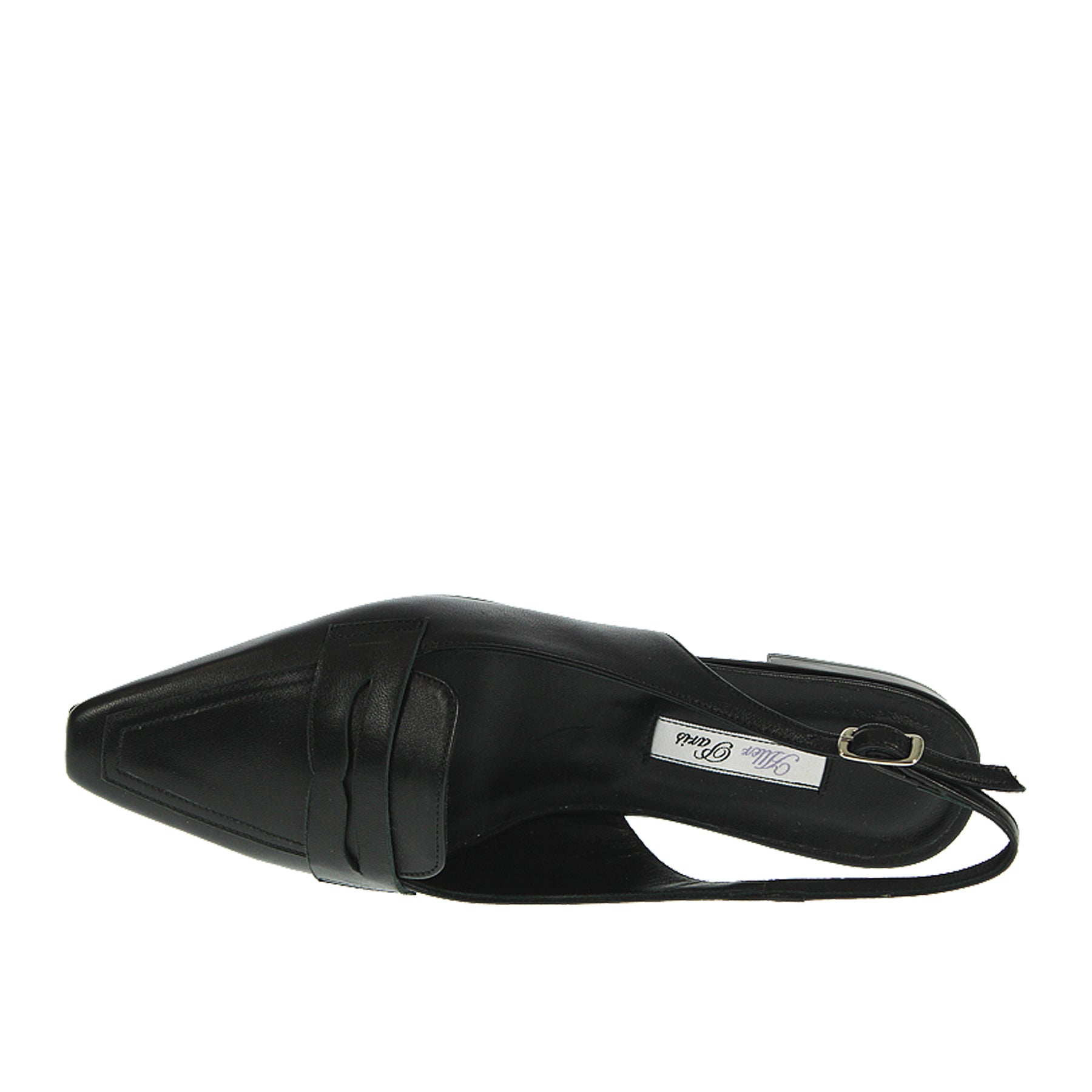 Ballerina Aller Paris, in pelle, colore nero, a punta, con cinturino laterale, aperta sul tallone, suola in cuoio