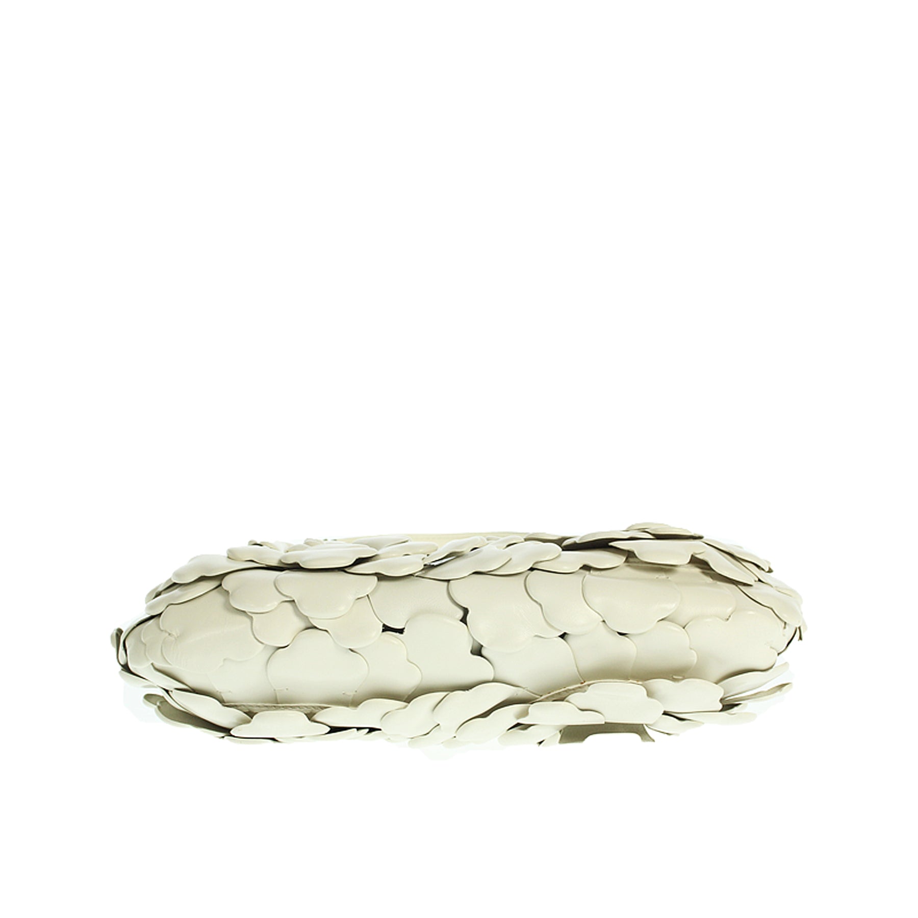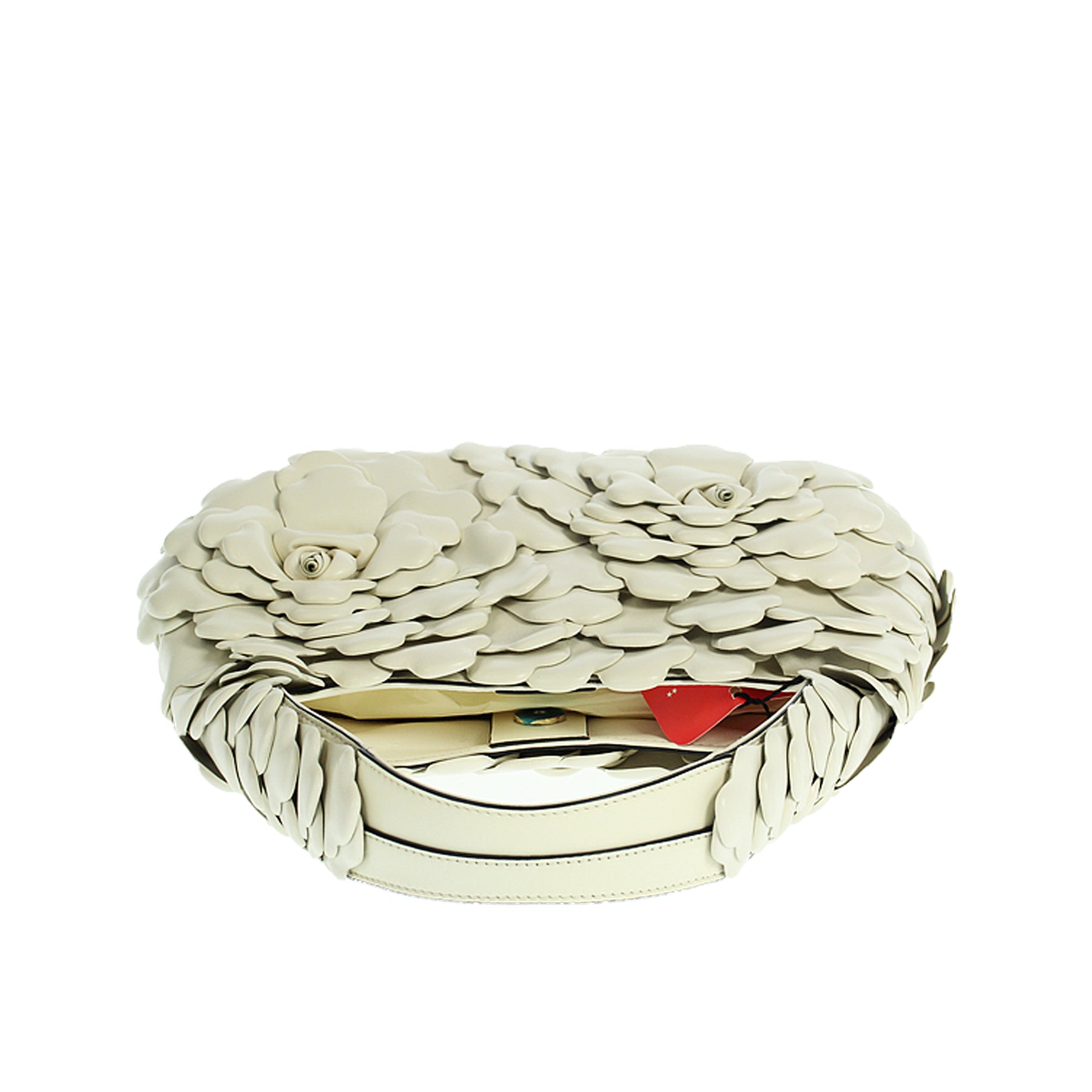 Borsa Valentino, con fiori in rilievo, in pelle, colore bianco, chiusura con bottone magnetico, tasca interna con zip