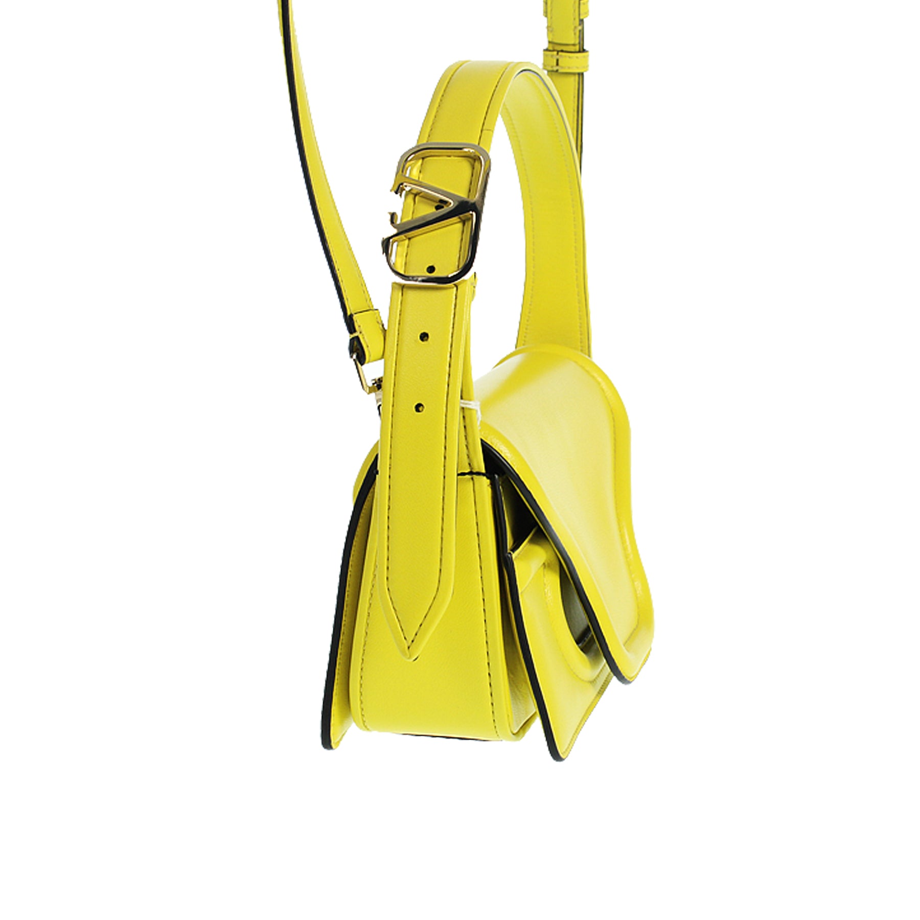 Borsa Valentino, in pelle, colore giallo limone, con patta, chiusura ad incastro con bottone magnetico, tracolla rimovibile, manico regolabile, tasca interna