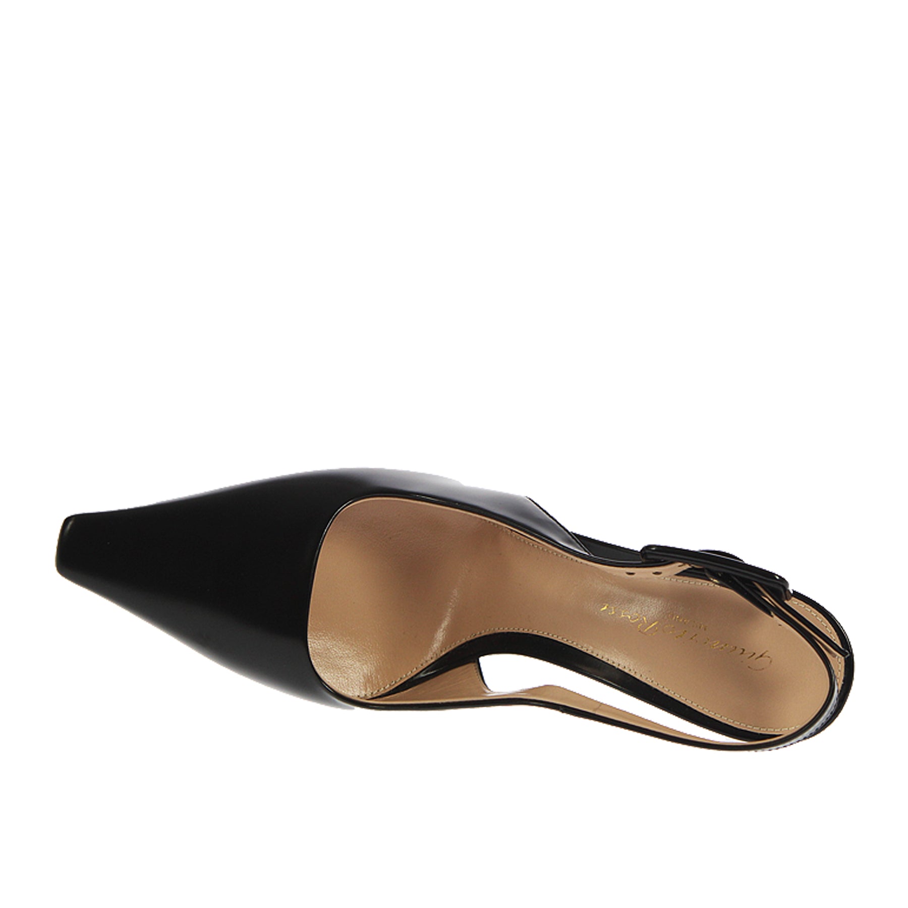 Chanel Gianvito Rossi, in pelle, punta quadrata stretta, colore nero, cinturino alla caviglia, suola in cuoio, tacco a spillo cm 9