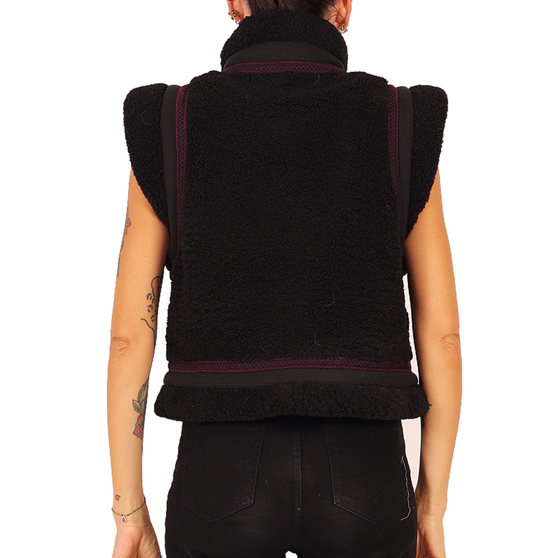 Gilet Antik Batik, in montone ecologico, colore nero, chiusura con bottoni automatici