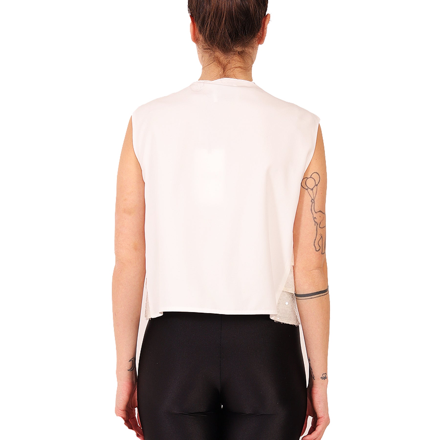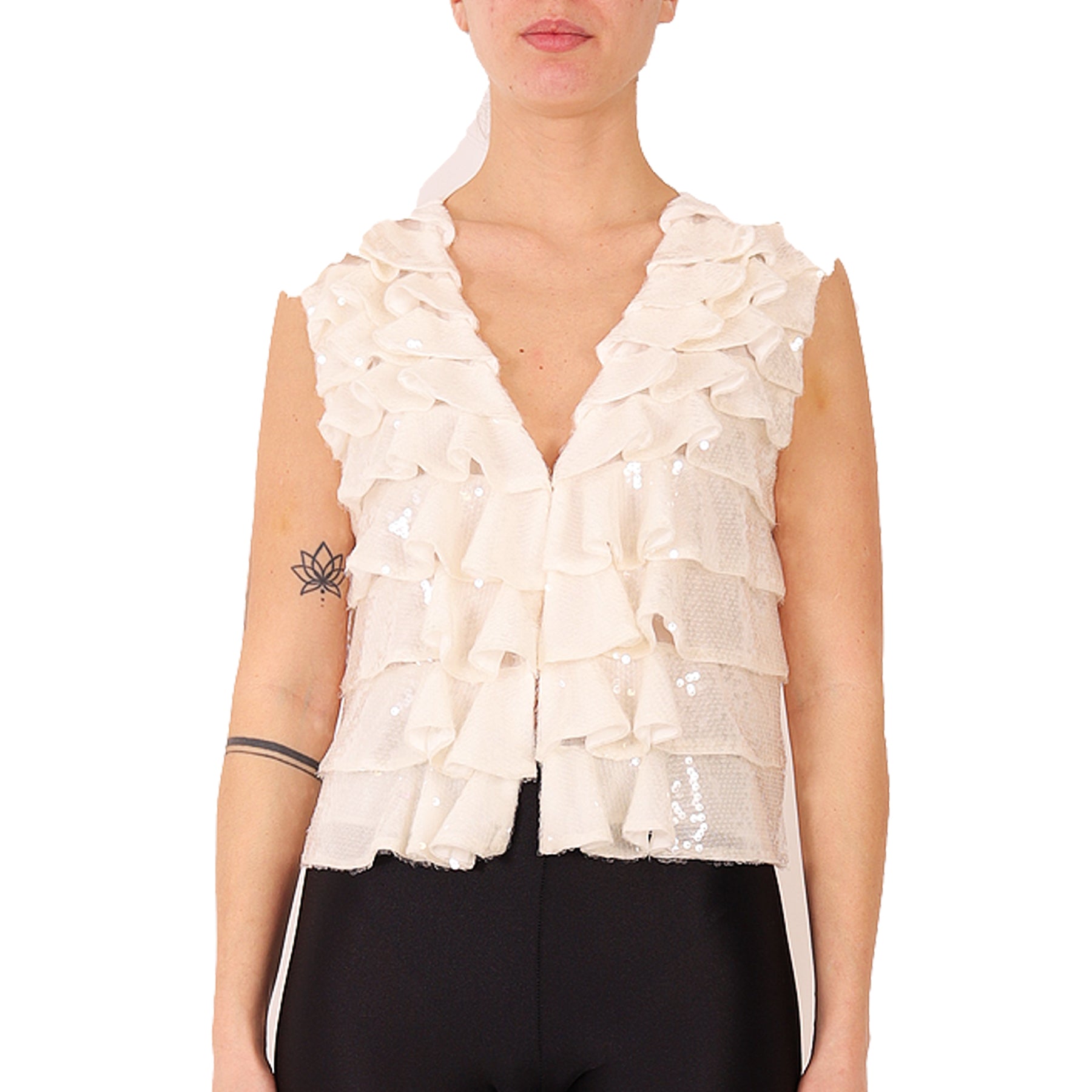 Gilet Nude, colroe bianco, con paillettes, con volant sul davanti, senza maniche, chiusura con gancetto, foderato internamente, in poliestere, lavare a mano, made in italy