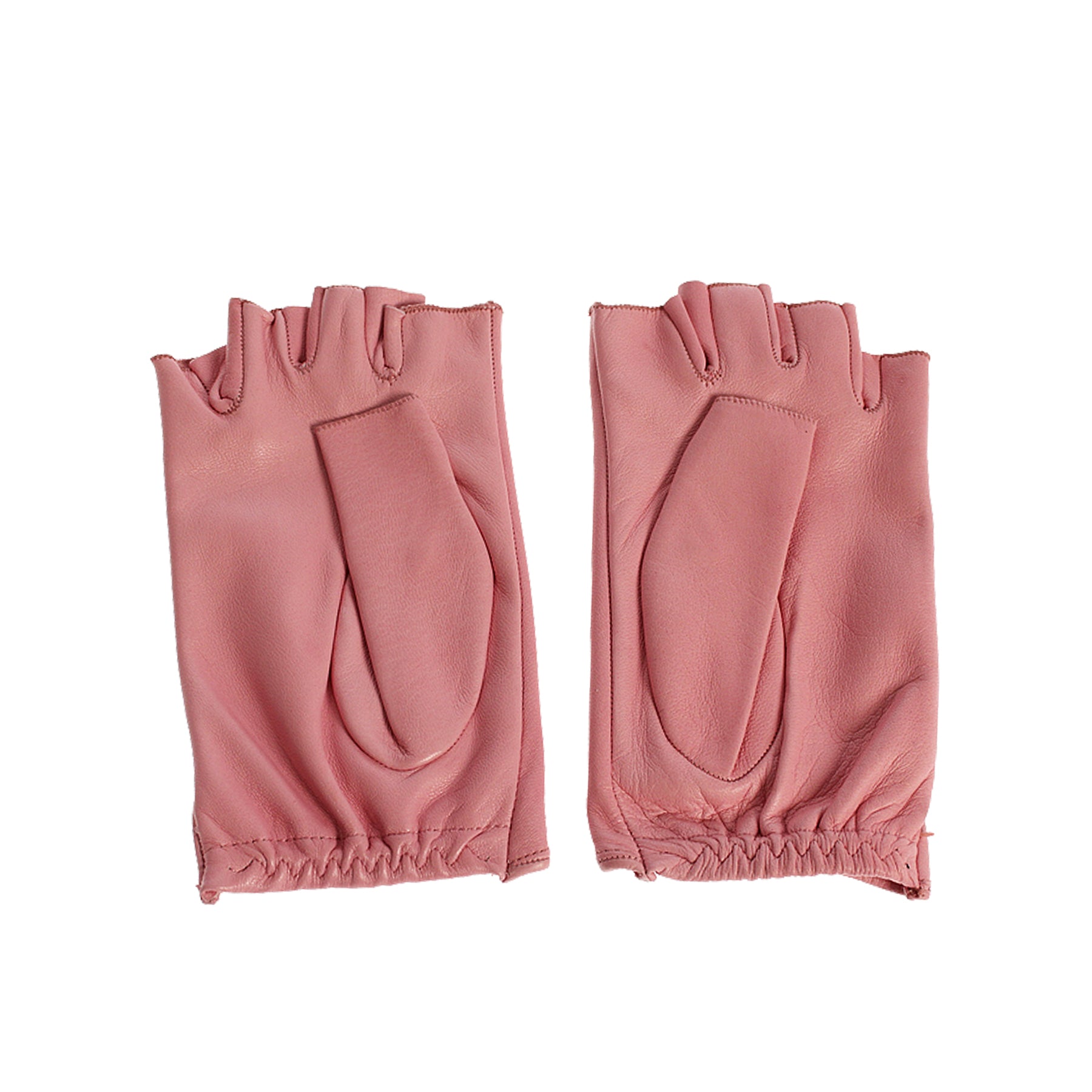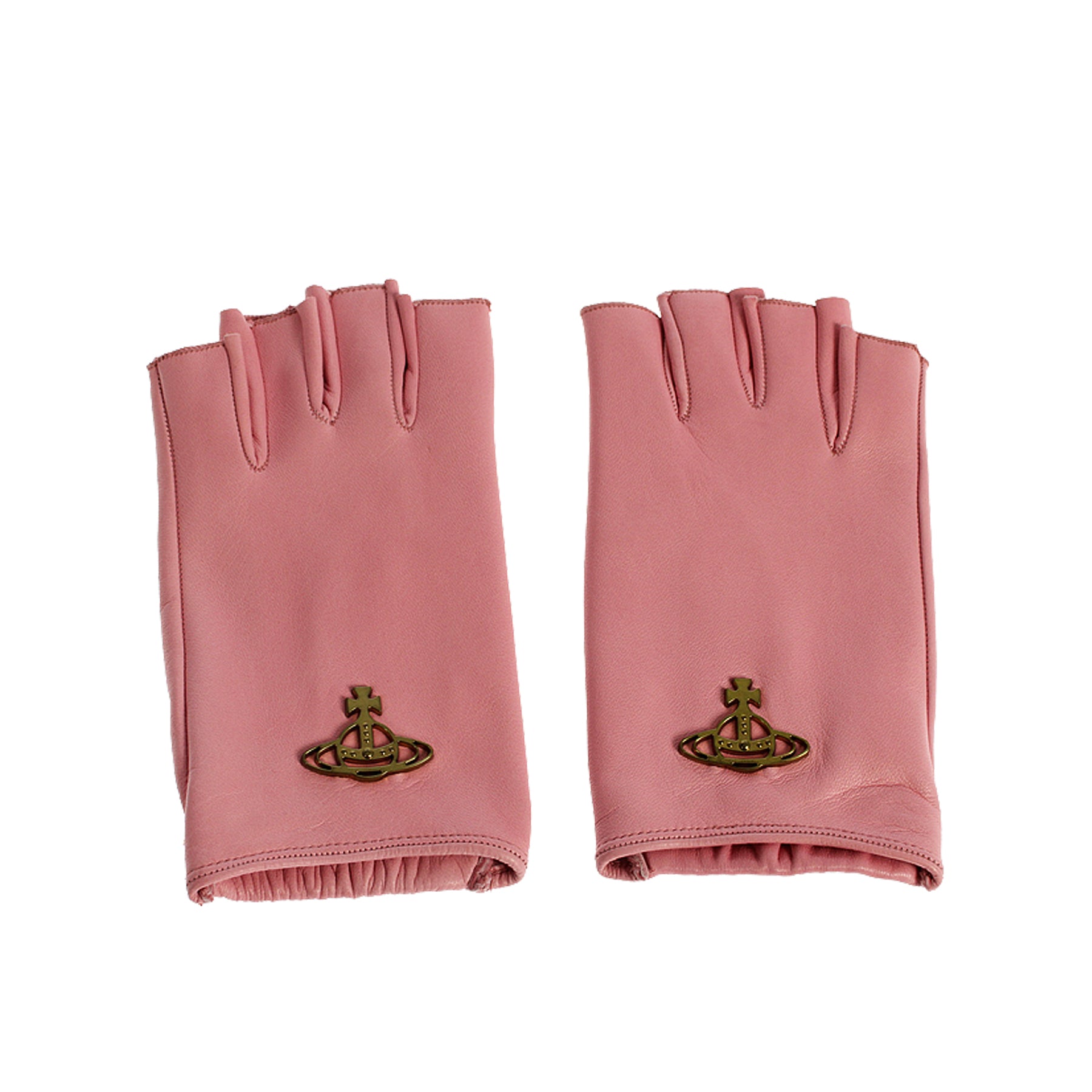 Guanti in pelle Vivienne Westwood, senza dita, con strobo oro applicato, retail € 210,00