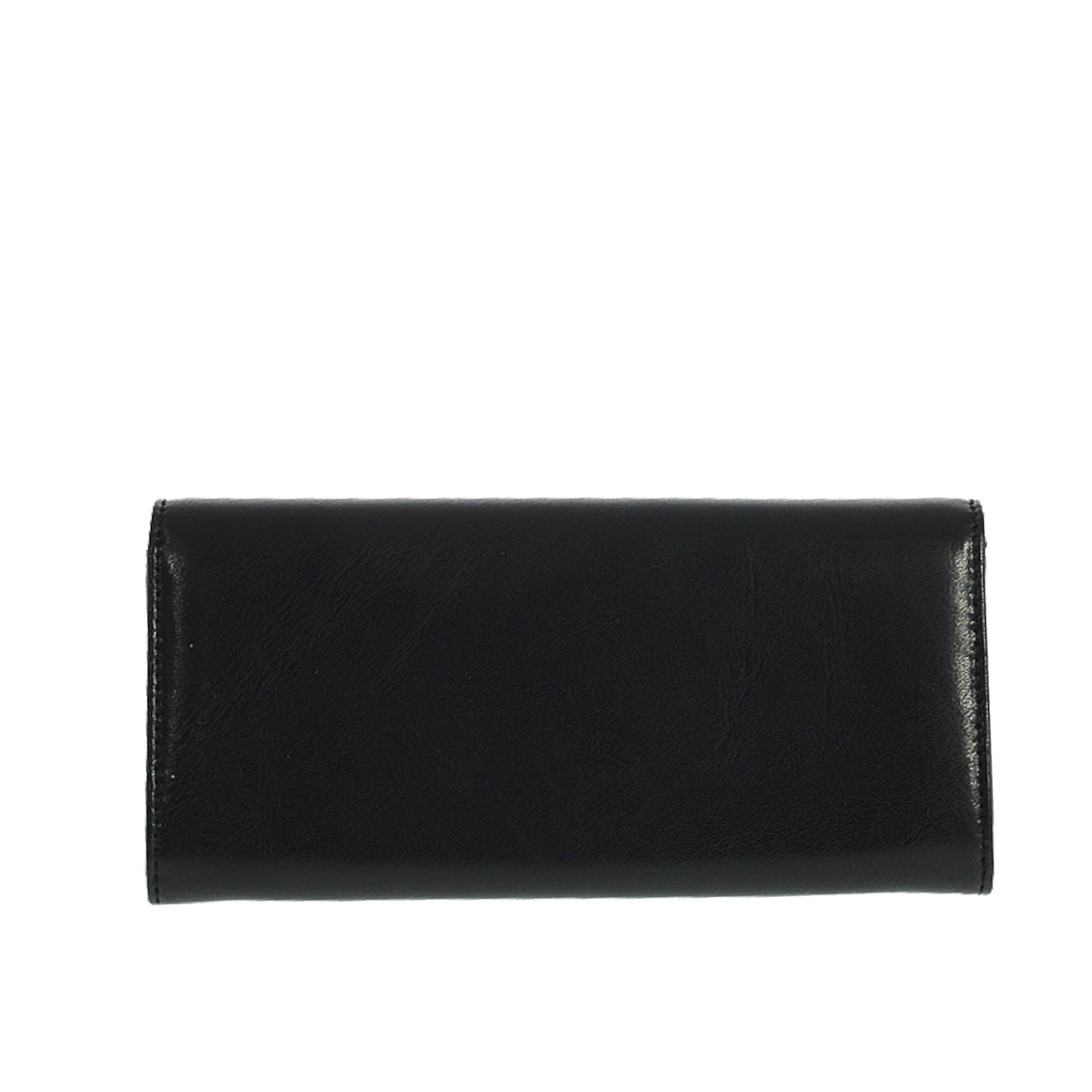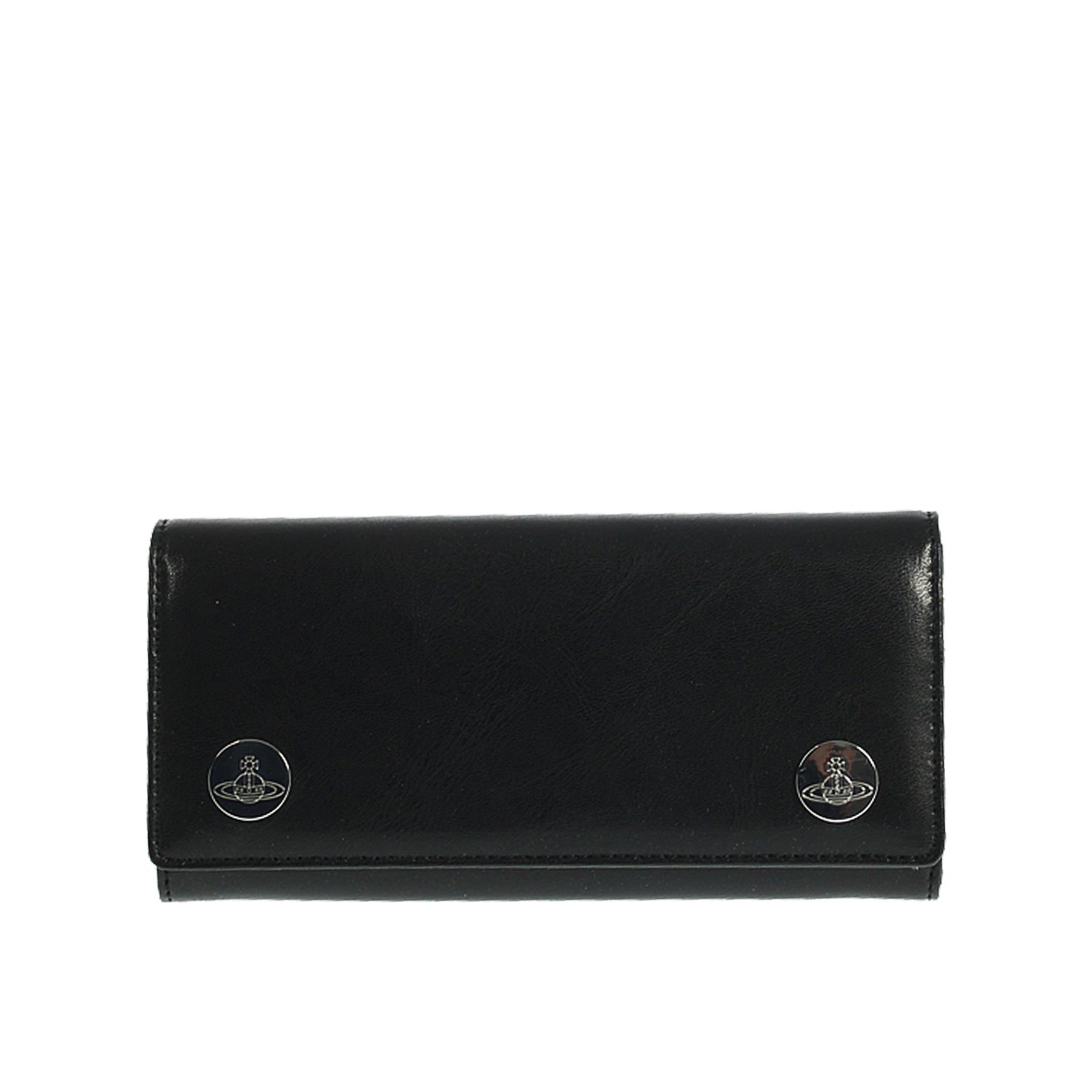 Portafoglio vivienne Westwood, in pelle, colore nero, logo strobo argento applicato, chiusura con doppio bottone a pressione tasca interna con cerniera, multicsomparto, tasche portacarte, lunghezza cm 19, retail € 190,00