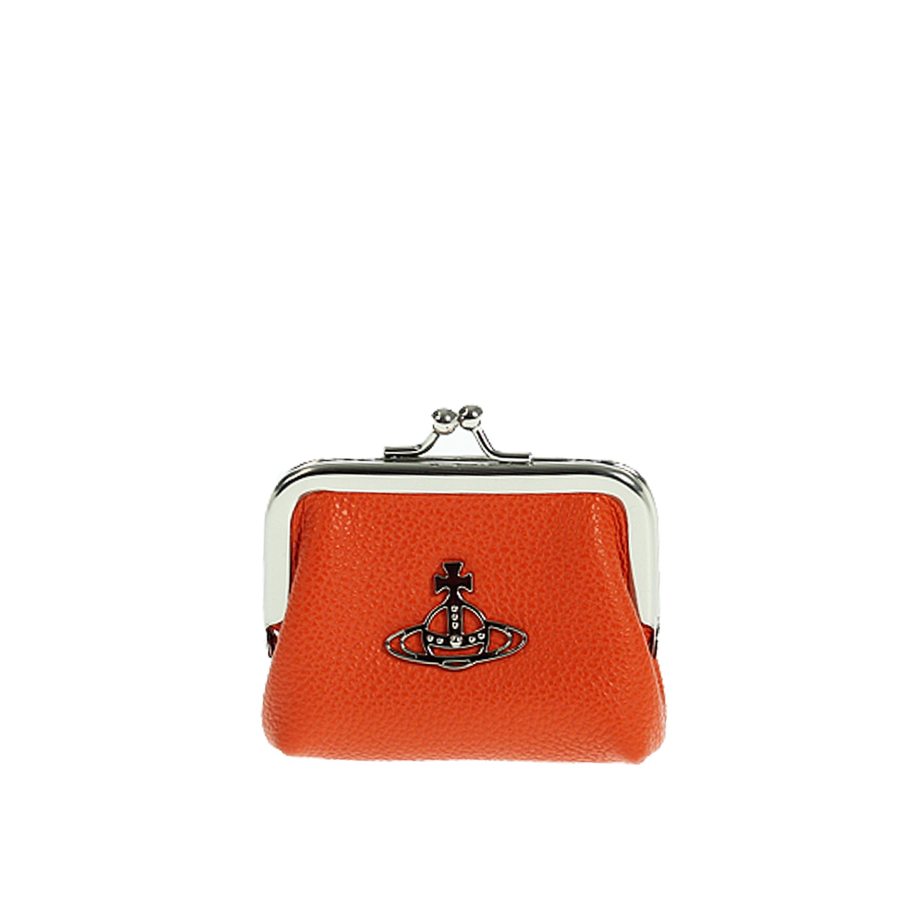 Portamonete Vivienne Westwood, in pelle martellata, colore arancione, chiusura a scatto, logo metallico