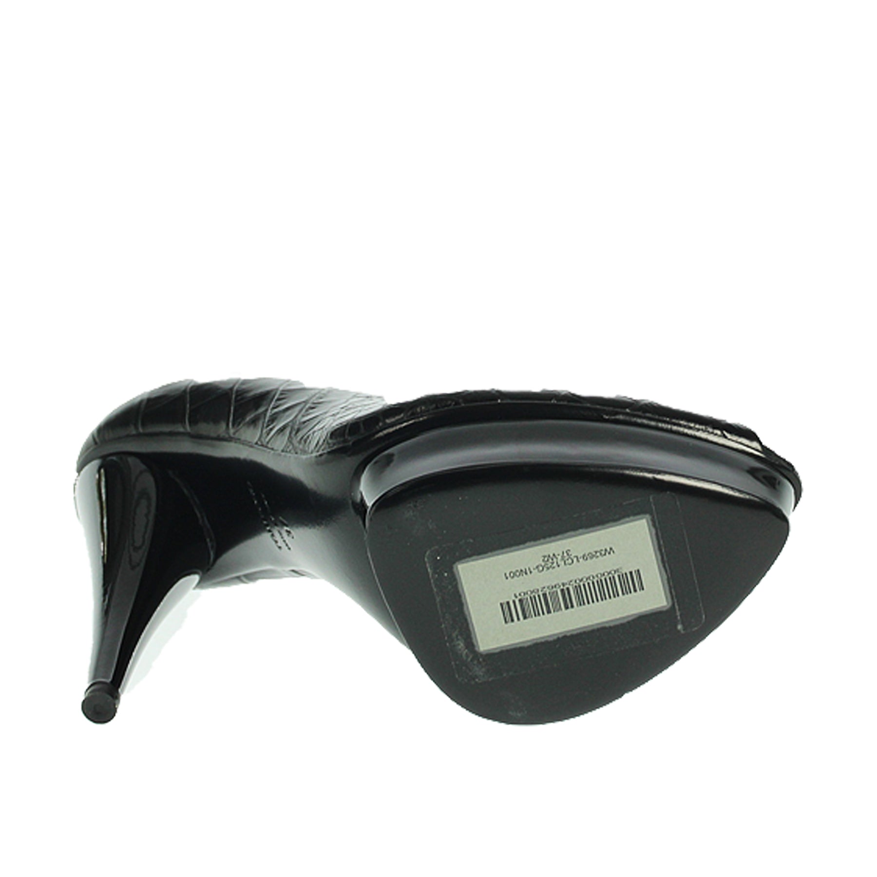 Pump Tom Ford, in pelle nera stampa coccodrillo, aperta in punta, con plateau, tacco a cono, suola in cuoio, altezza tacco 13,5 cm, altezza palteau 3 cm, made in italy