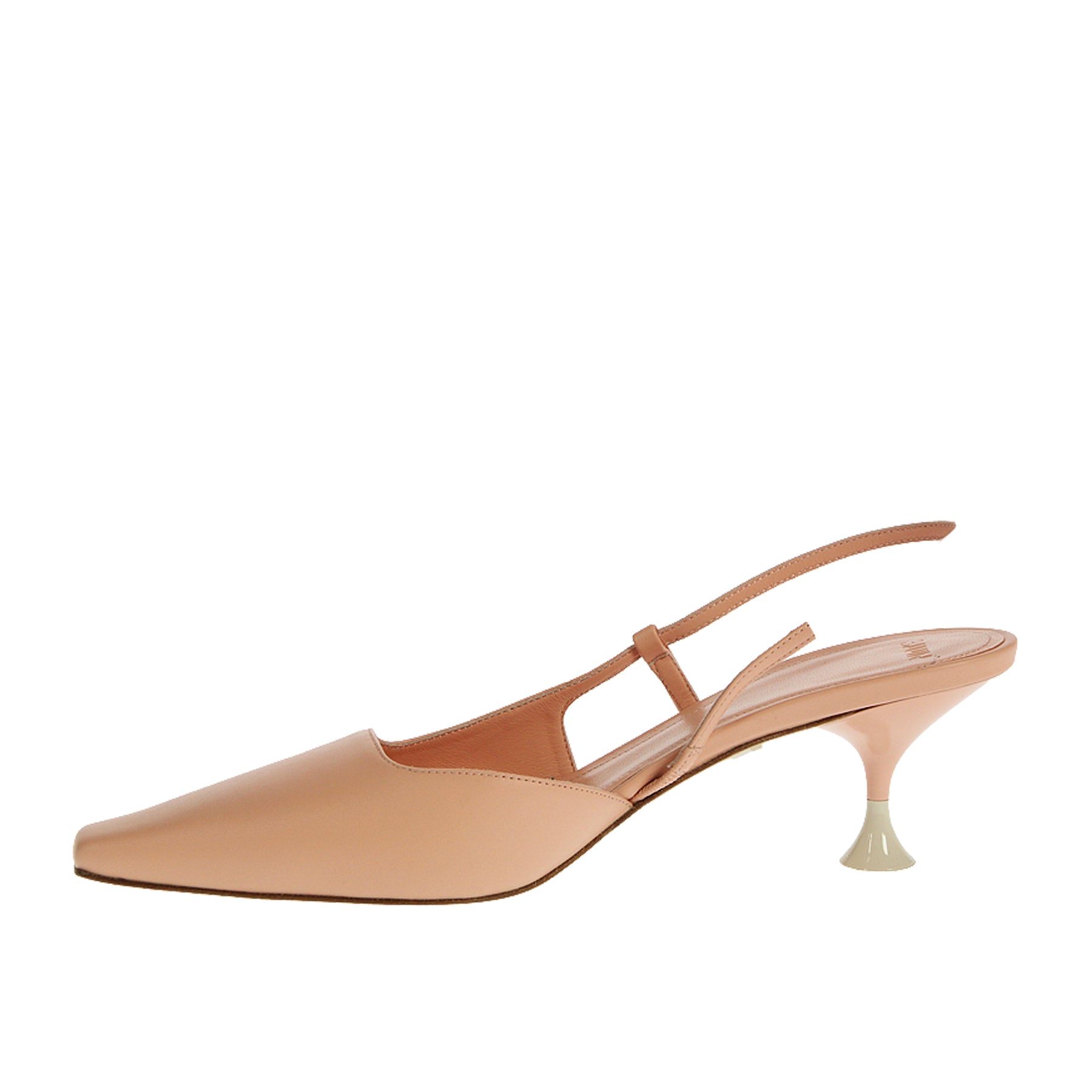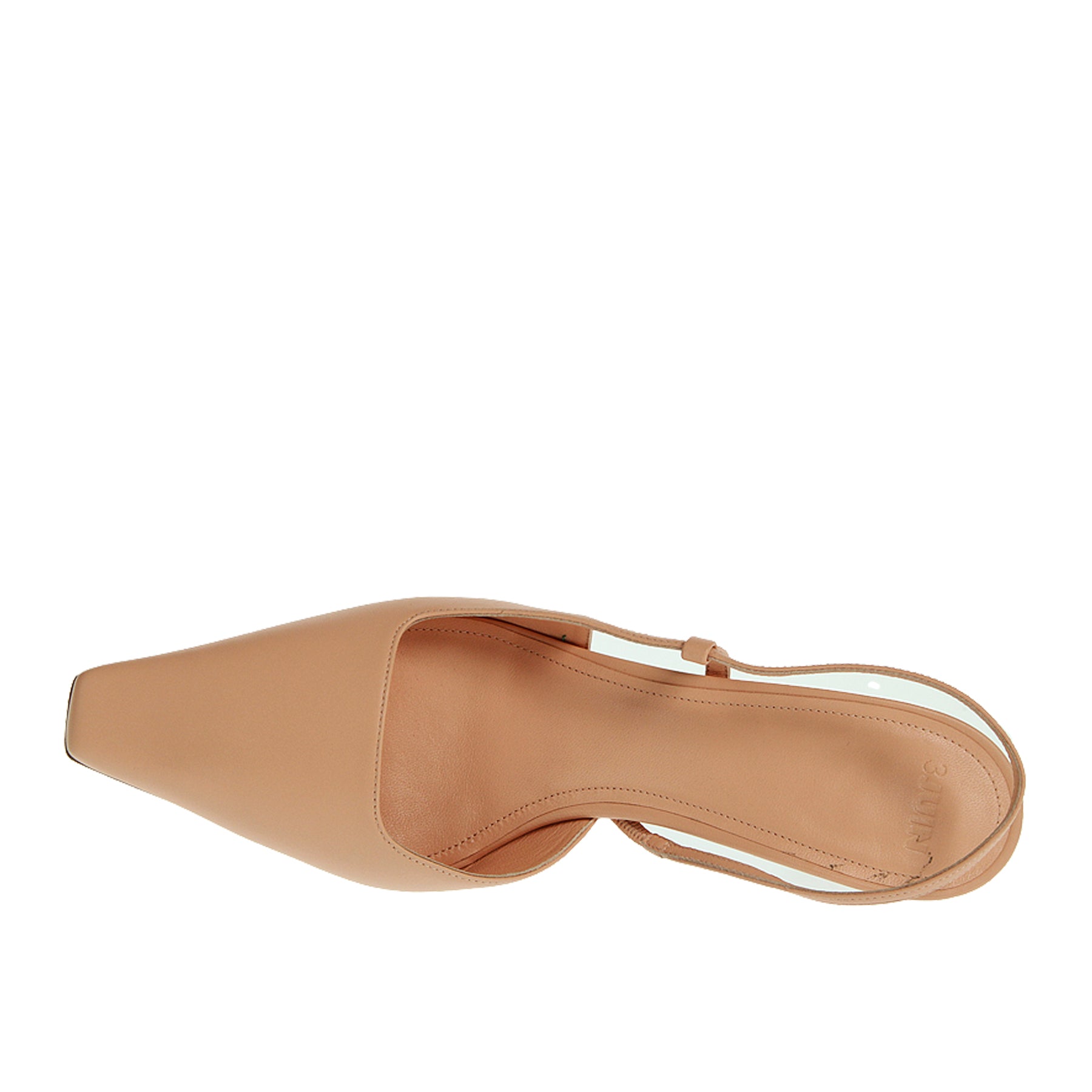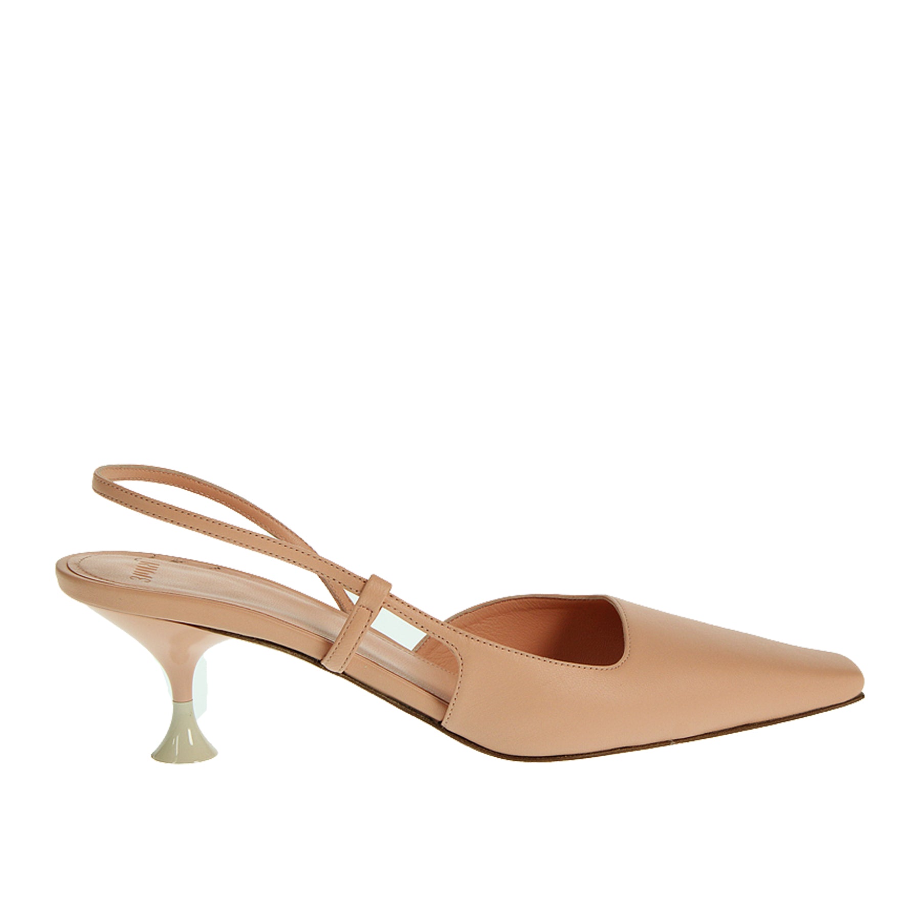 Sandalo 3Juin, modello kira, in pelle, colore rosa, a punta, cinturino al tallone, suola in cuoio e gomma, tacco altezza cm 6