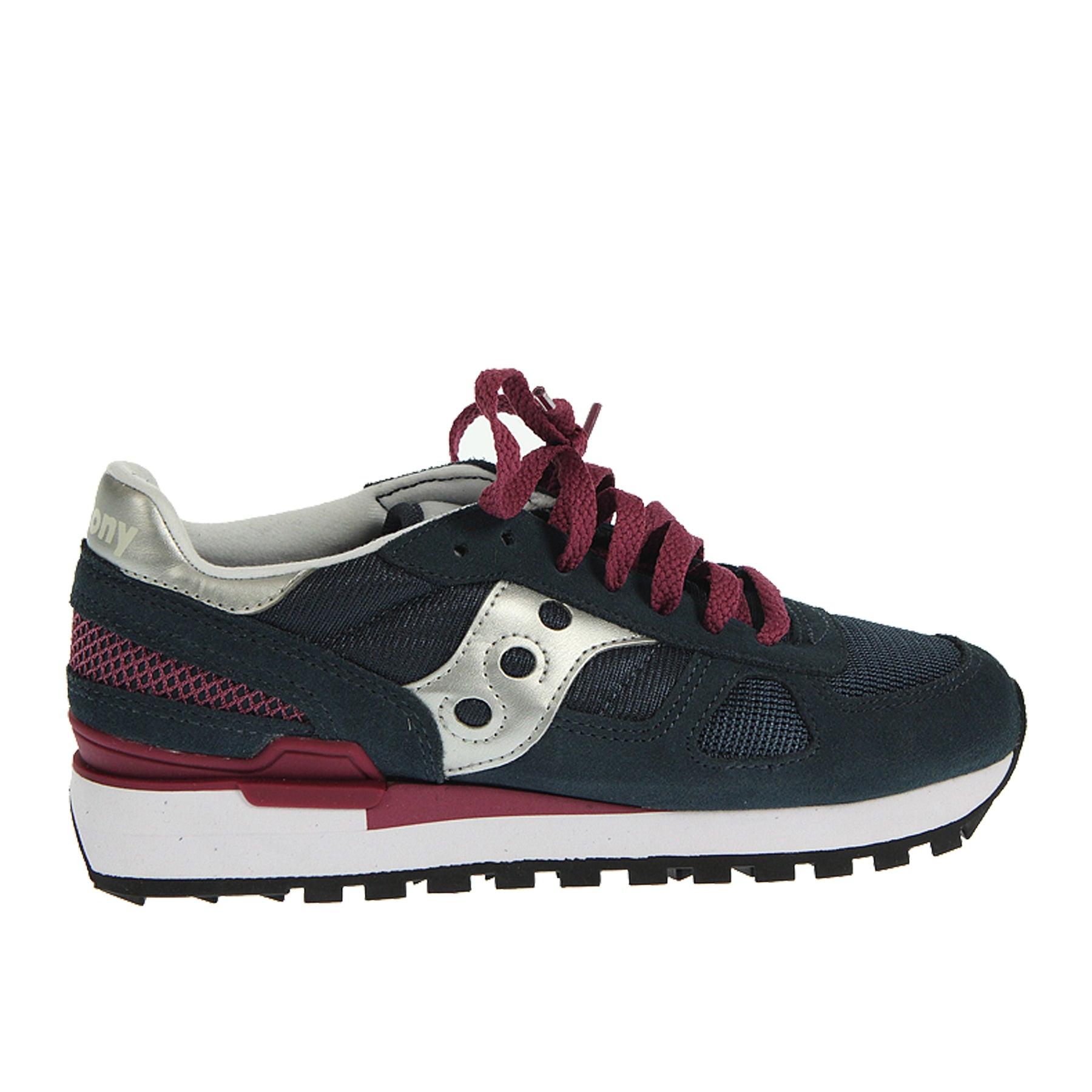 Sneakers Saucony, in camoscio e nylon, colore blu, inserto laterale argentato, lacci a contrasto, suola in gomma