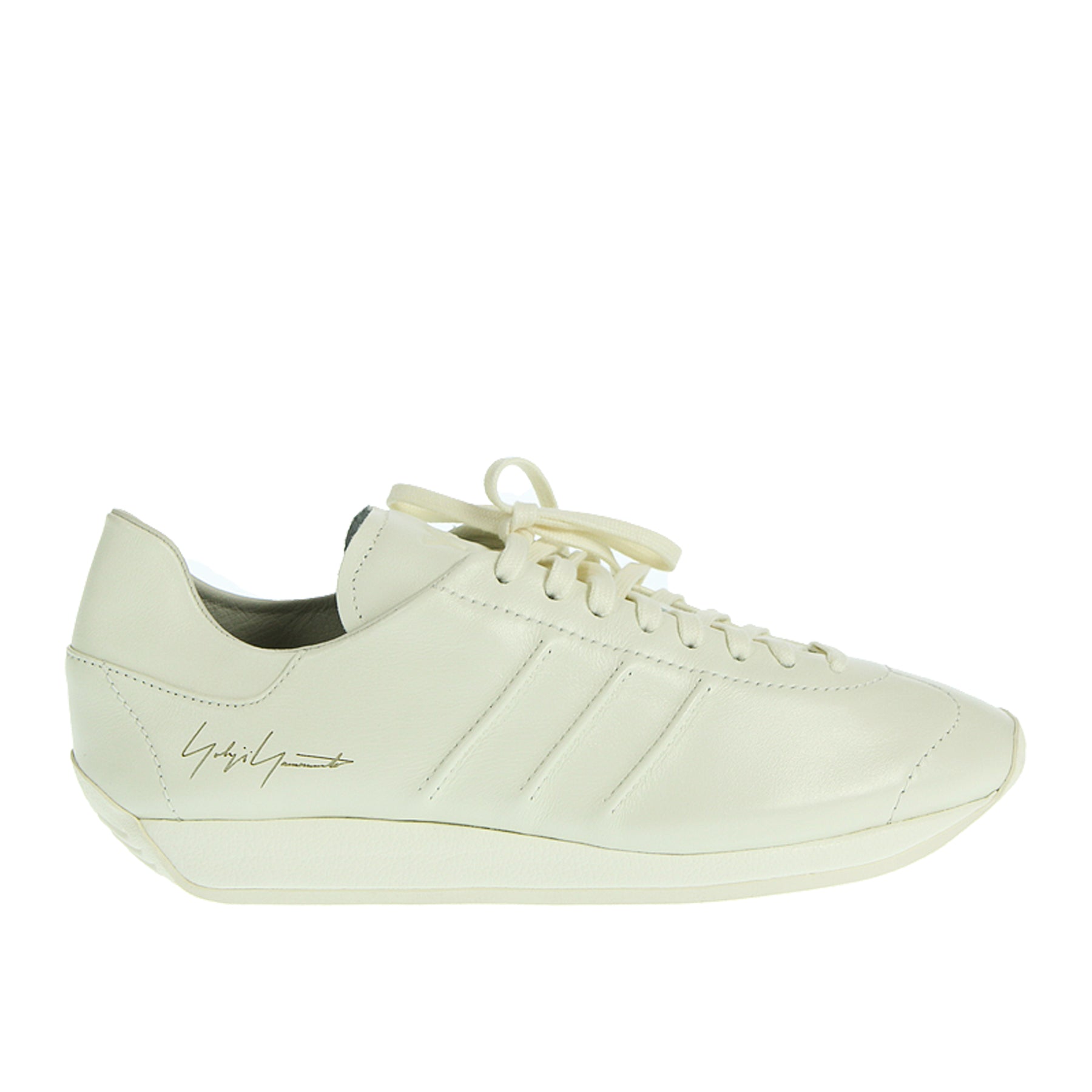 Sneakers Y-3 Yohji Yamamoto x Adidas, in pelle bianca, con lacci, logo laterale, suola in cuoio