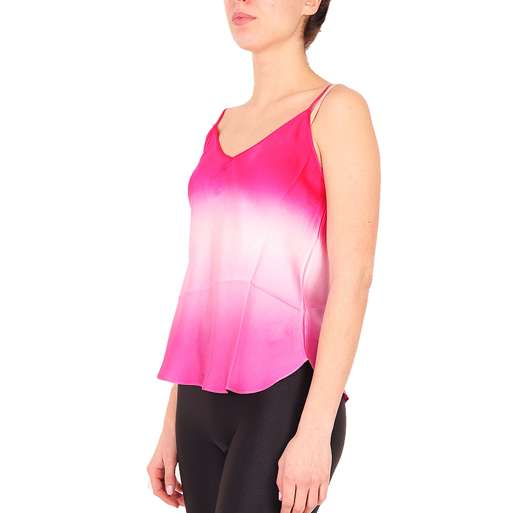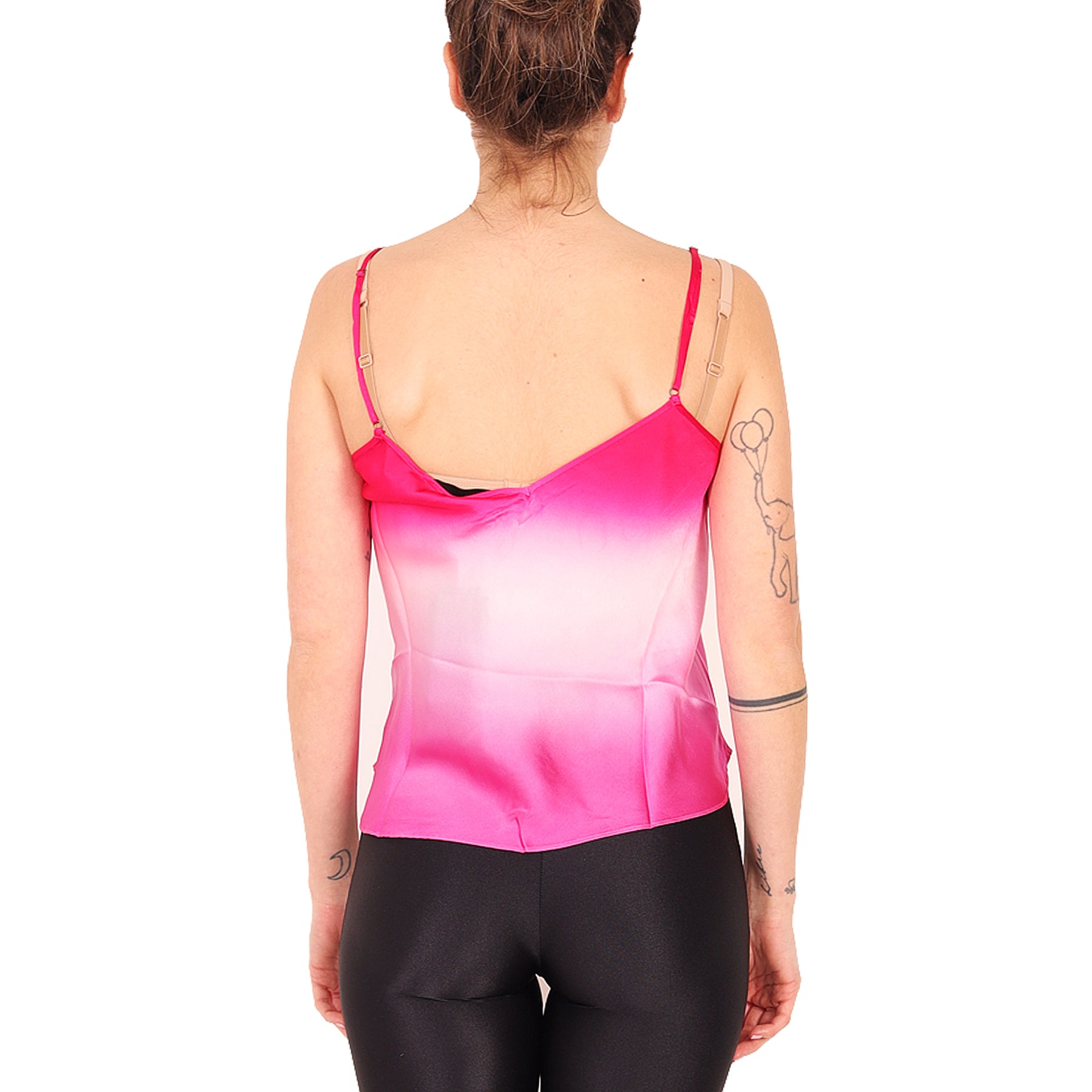 Top Mes Demoiselles, rosa degradè, senza maniche, in seta