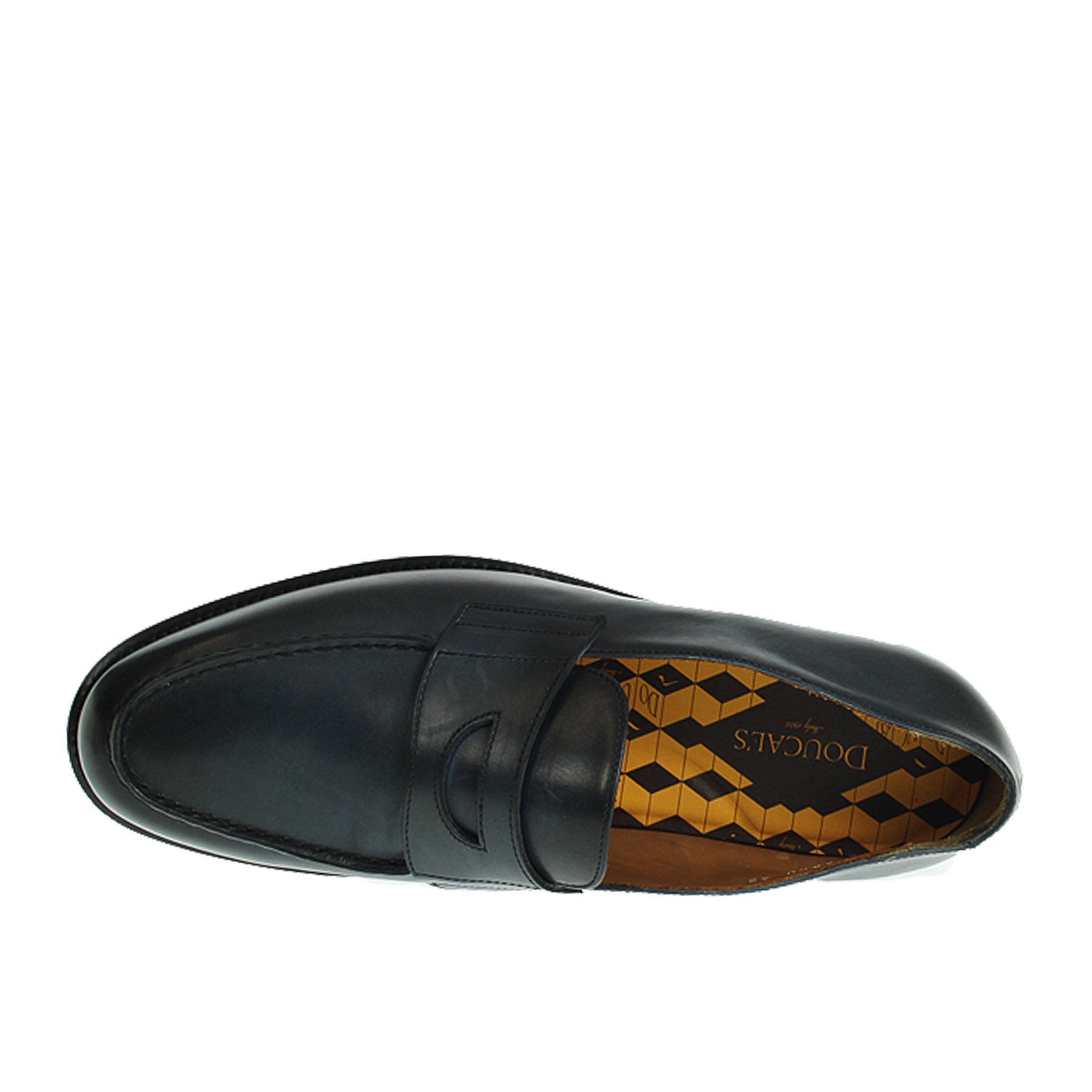 Mocassino Doucal's, in pelle nera, con suola in cuoio con inserto antiscivolo in gomma