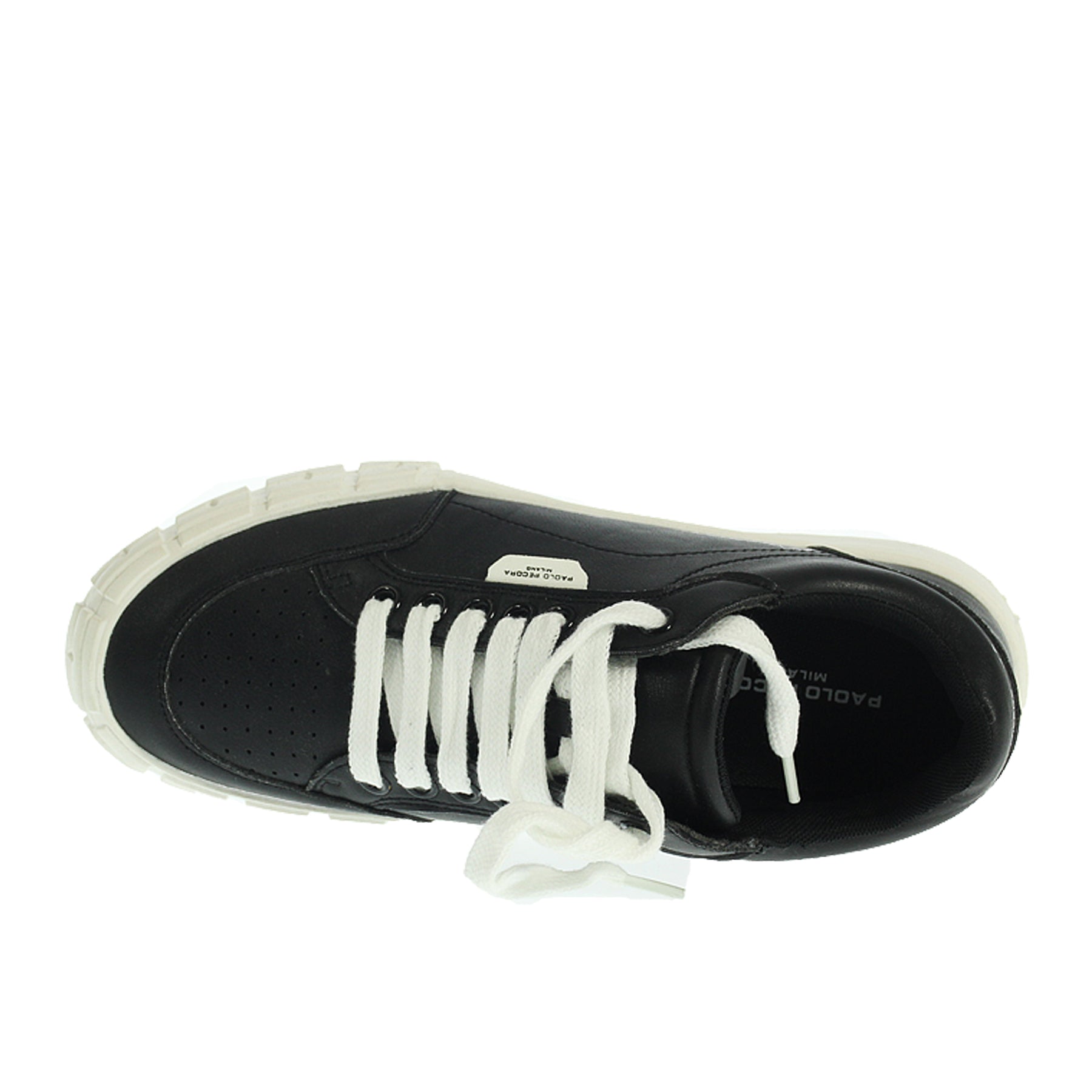 Sneakers Paolo Pecora, in ecopelle nera, con lacci a contrasto, suola in gomma