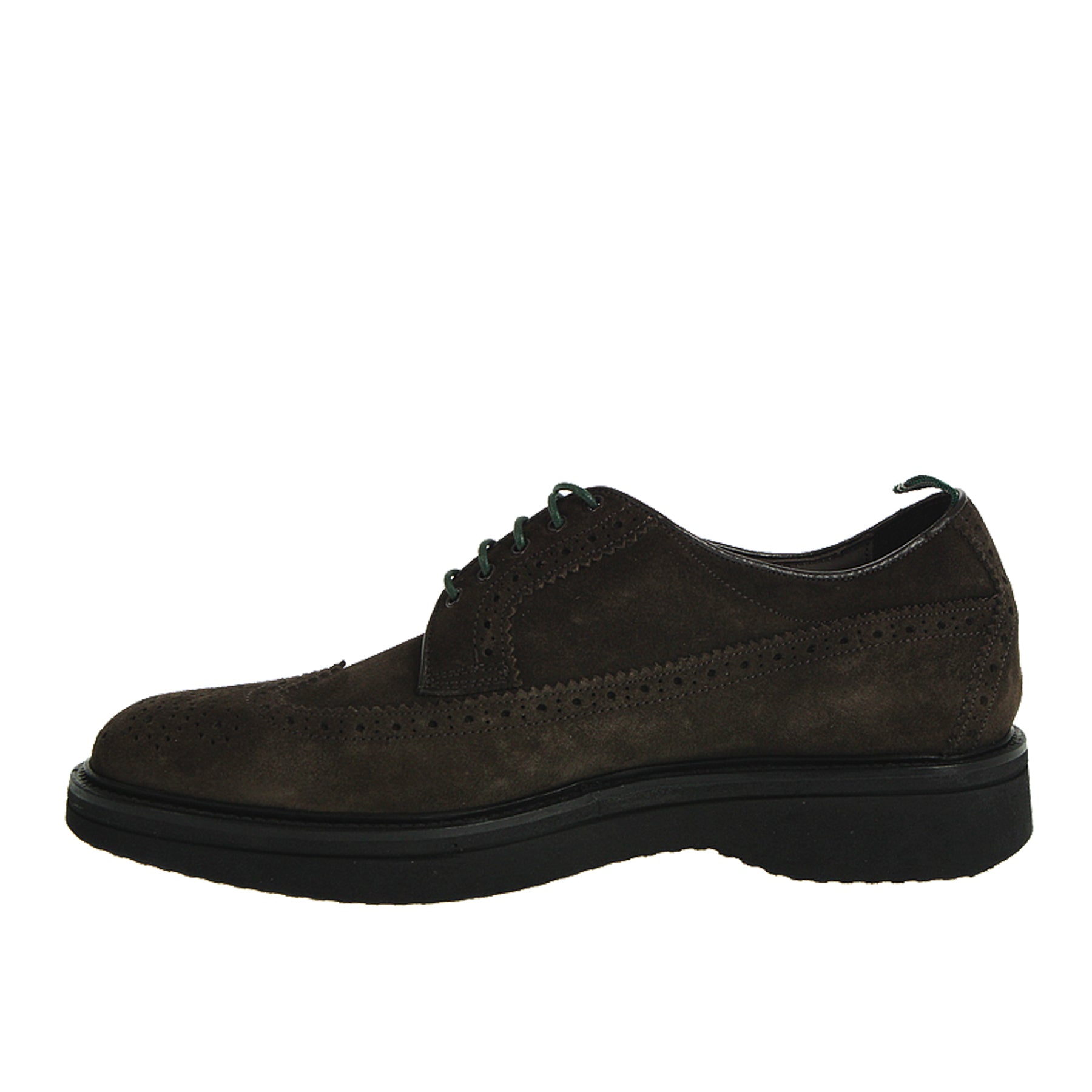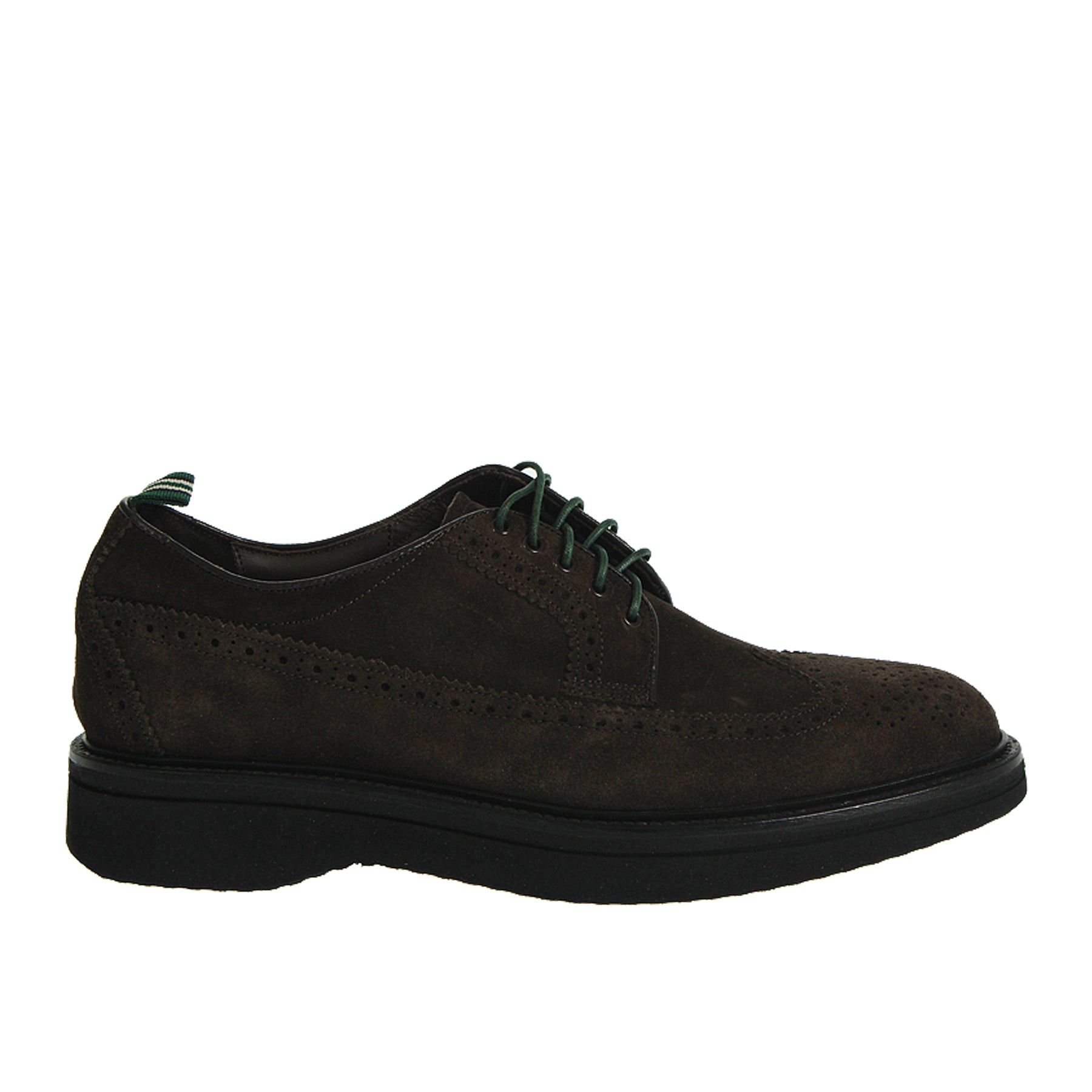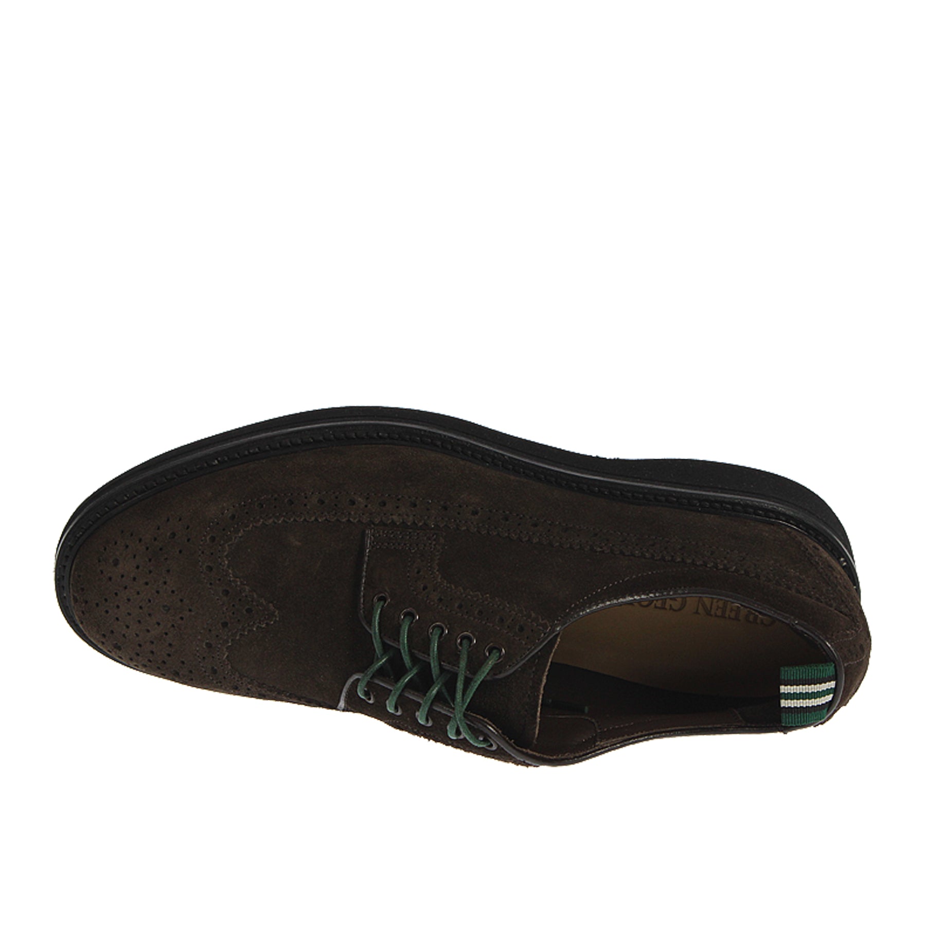Stringata Green George, in camoscio, colore marrone scuro, con impunture, chiusura con lacci, suola in gomma