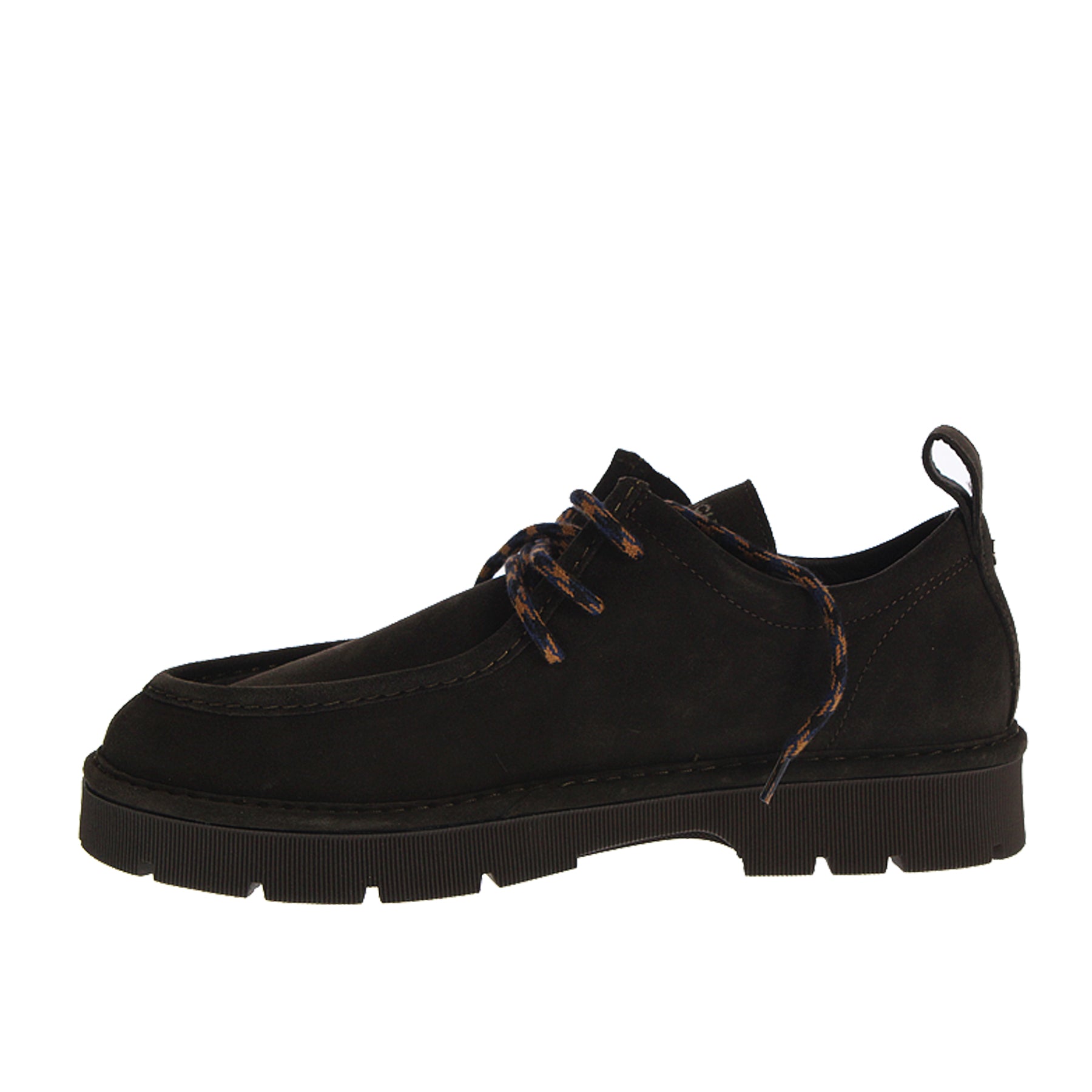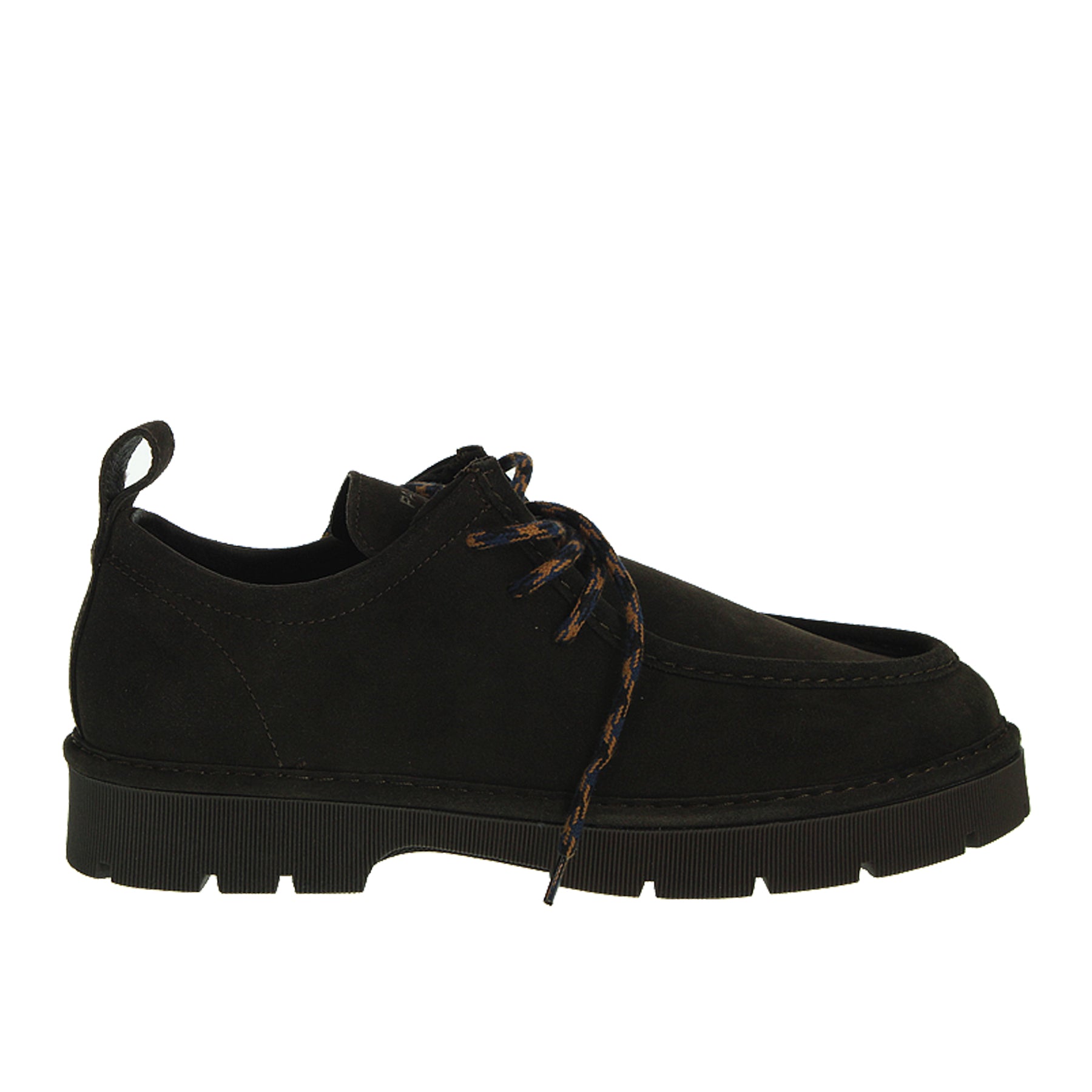 Stringata Panchic, in camoscio, con lacci, colore marrone scuro, suola in gomma