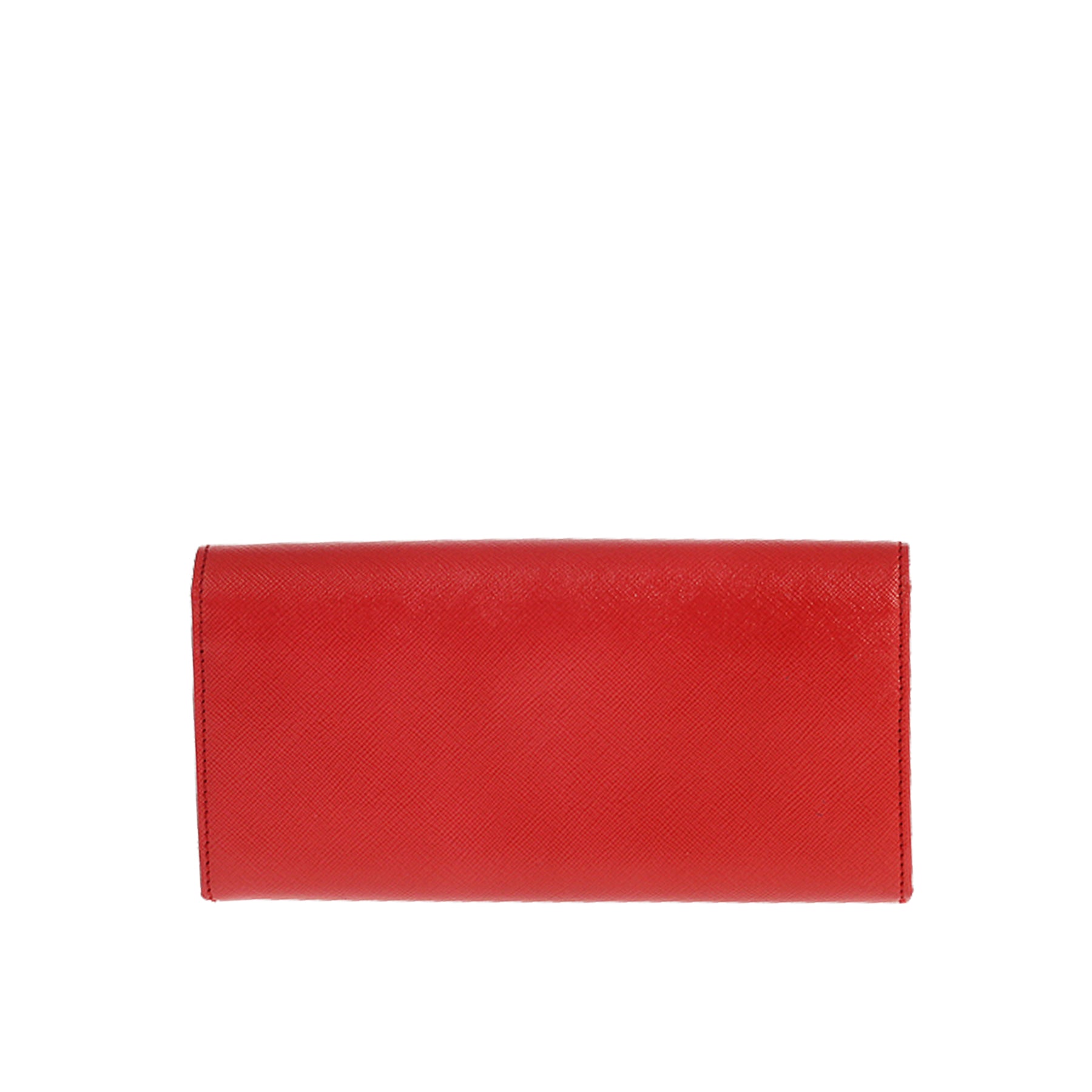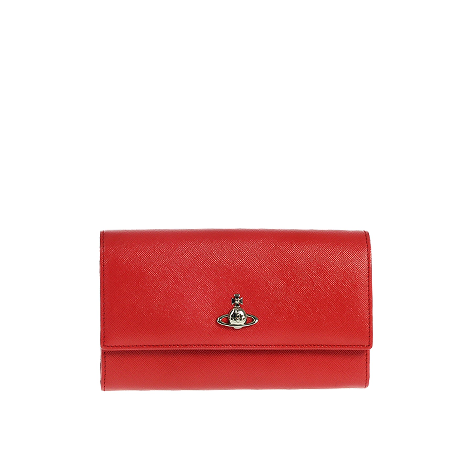 Portafoglio Vivienne Westwood, in saffiano, colore rosso, chiusura con bottone magnetico, tasca con cerniera, multiscomparto con tasche portacarte, lunghezza cm 19, retail € 210,00