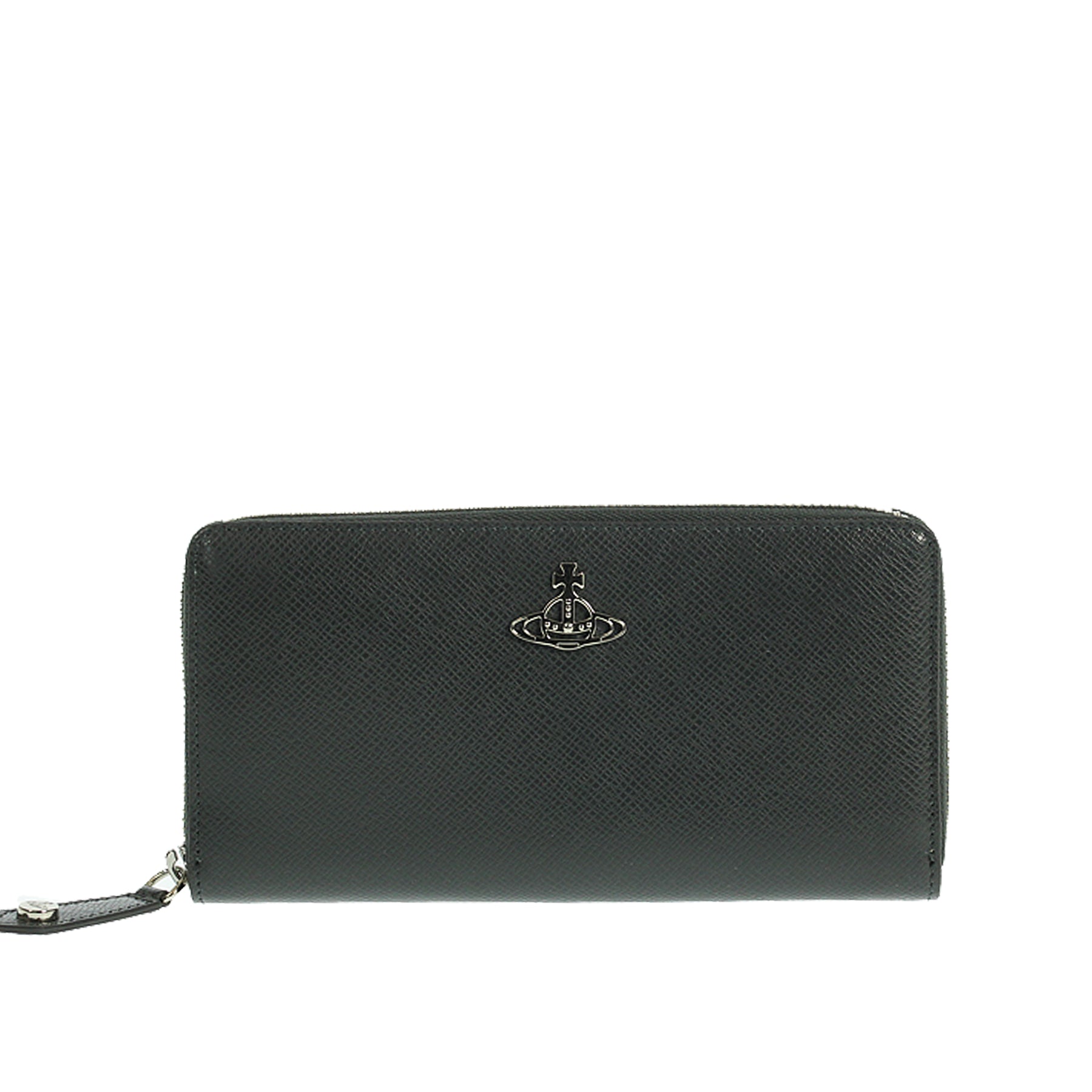 Portafoglio Vivienne Westwood, in saffiano, strobo argento applicato chiusura con cerniera, tasca interna con cerniera, multiscomparto, portacarte, lunghezza cm 19, retail € 200,00