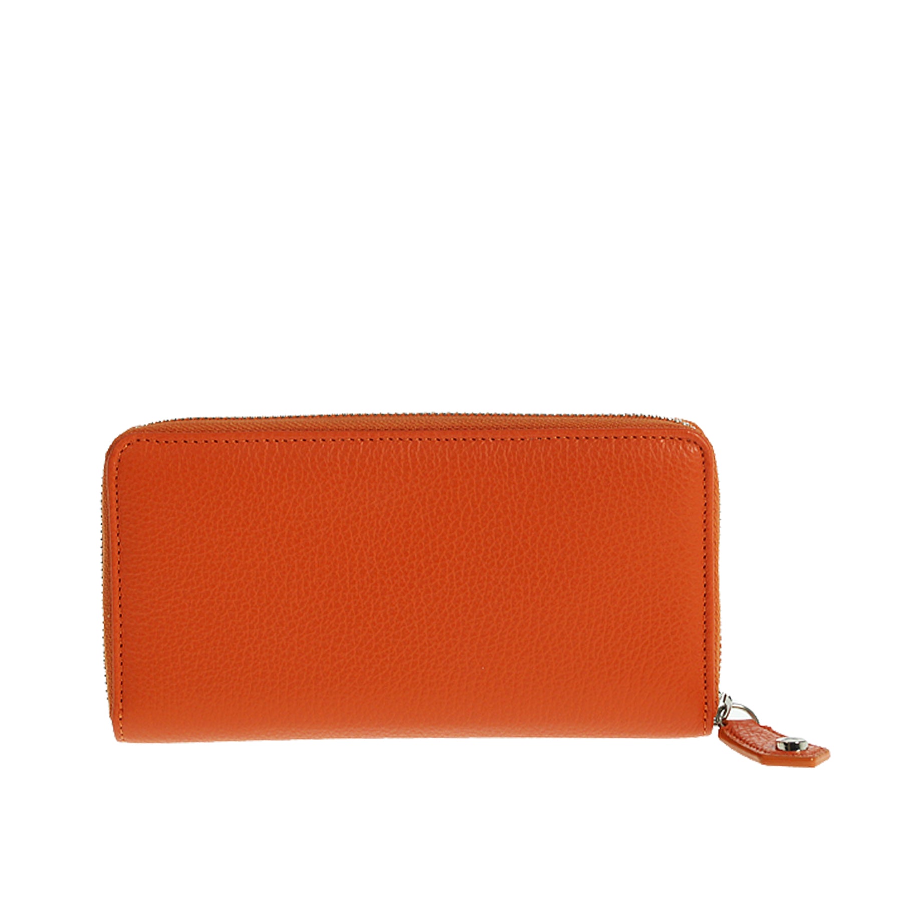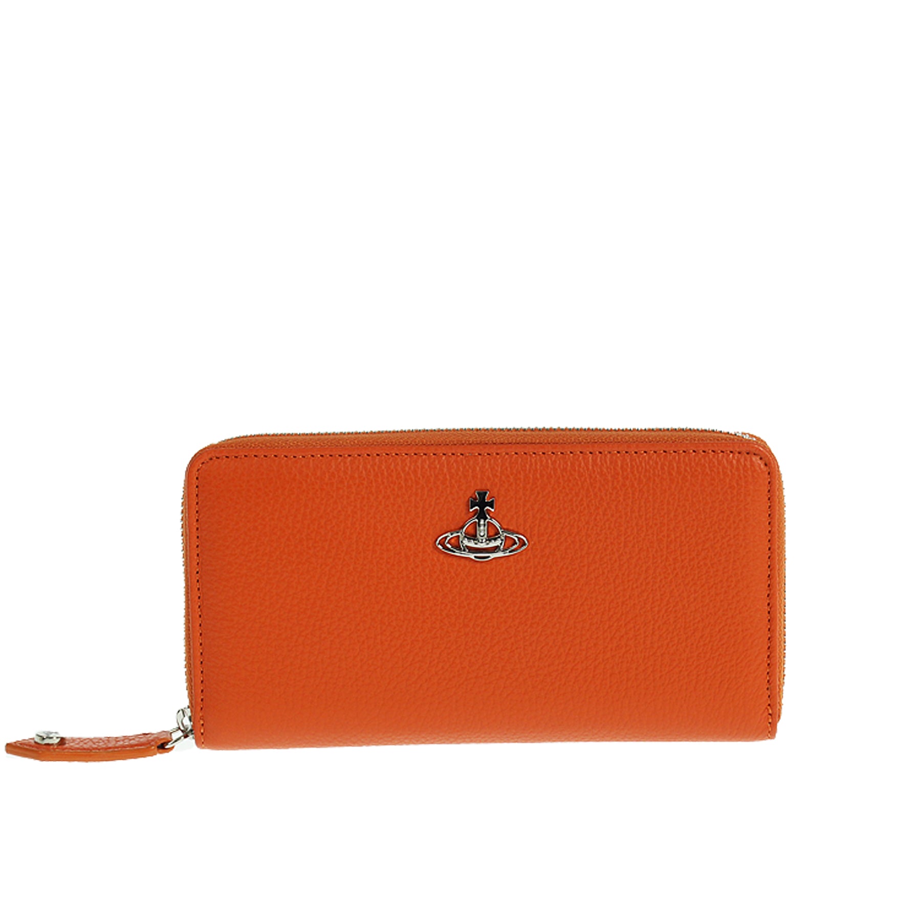 Portafoglio Vivienne Westwood, in saffiano, strobo argento applicato, colore arancione chiusura con cerniera, tasca interna con cerniera, multiscomparto, portacarte, lunghezza cm 19, retail € 225,00