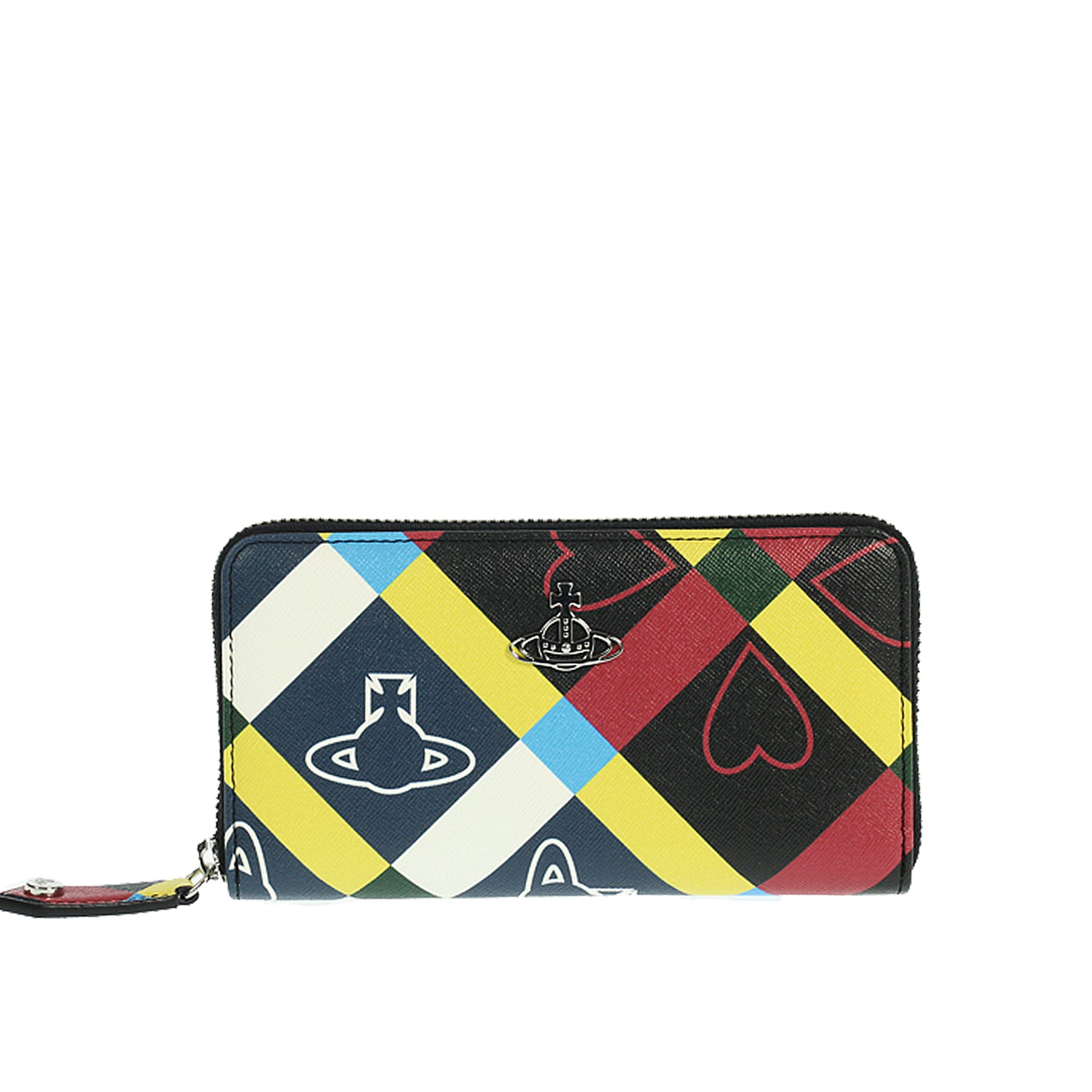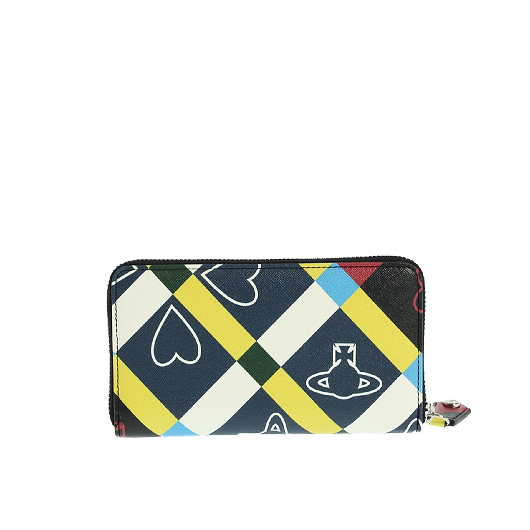 Portafoglio Vivienne Westwood, in saffiano, strobo argento applicato, fantasia astratta, chiusura con cerniera, tasca interna con cerniera, multiscomparto, portacarte, lunghezza cm 19, retail € 185,00
