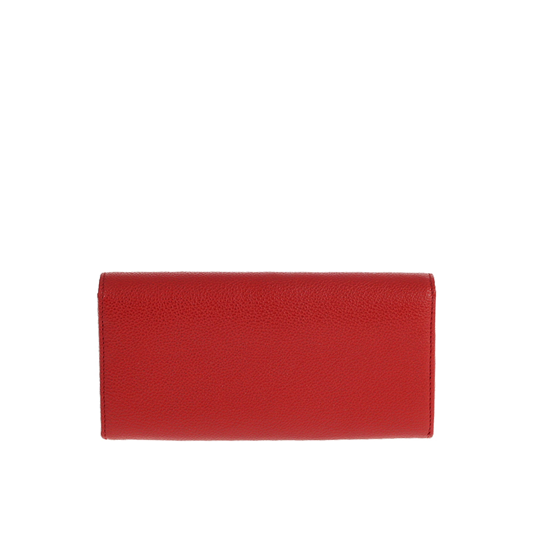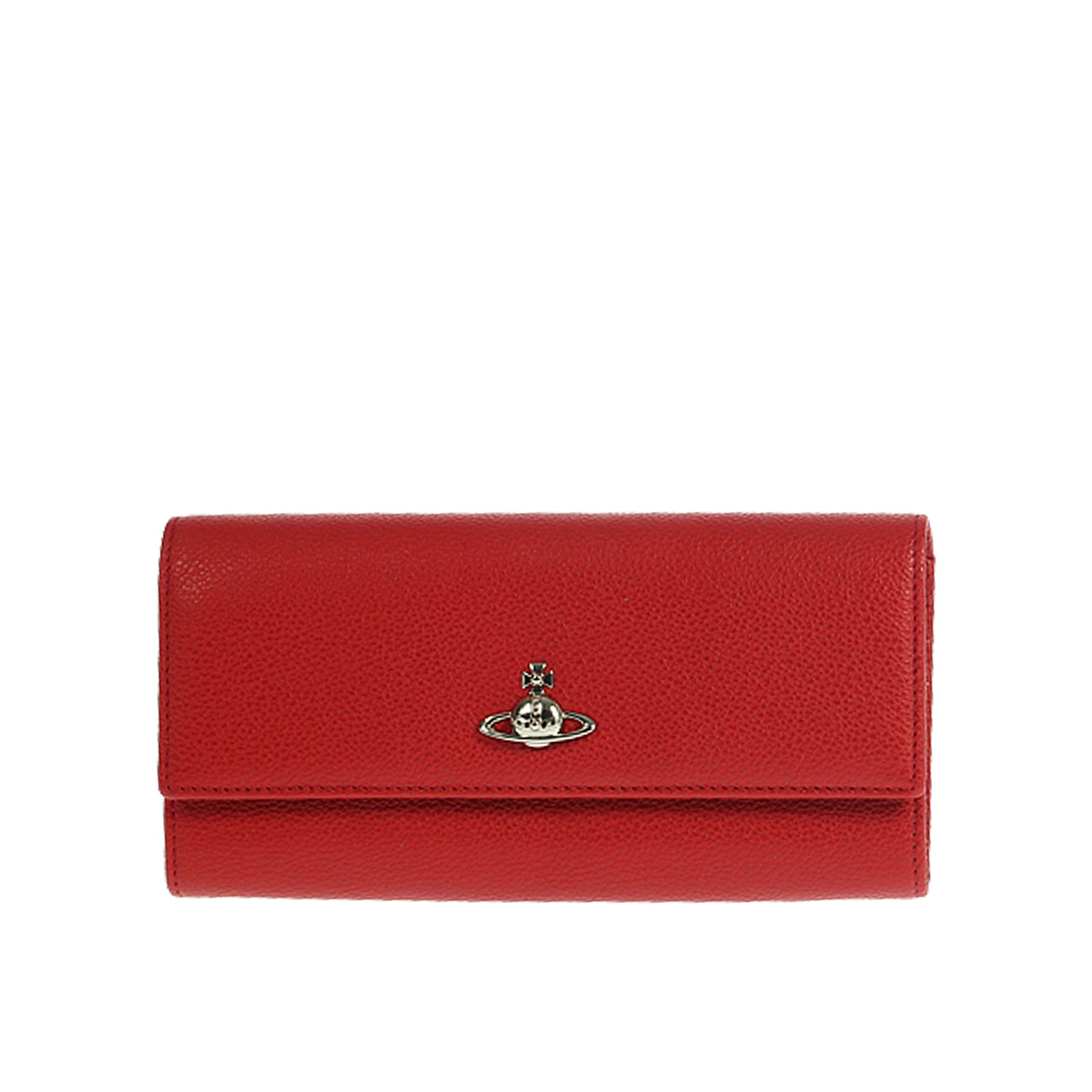 Portafoglio Vivienne Westwood, in pelle butterata, logo oro applicato, chiusura con bottone a pressione, tasca interna con cerniera, scmparto con portacarte, lunghezza cm 19, retail € 205,00
