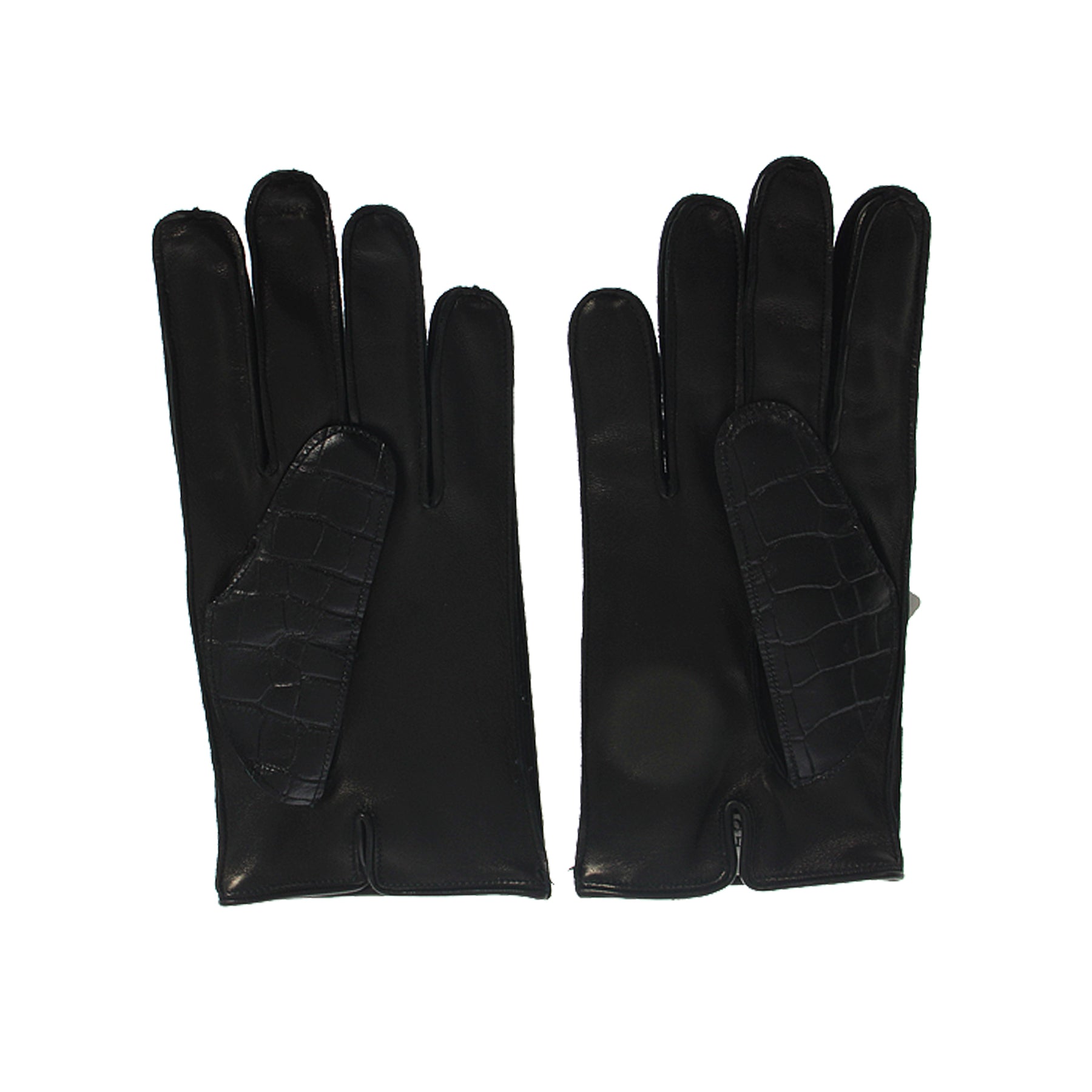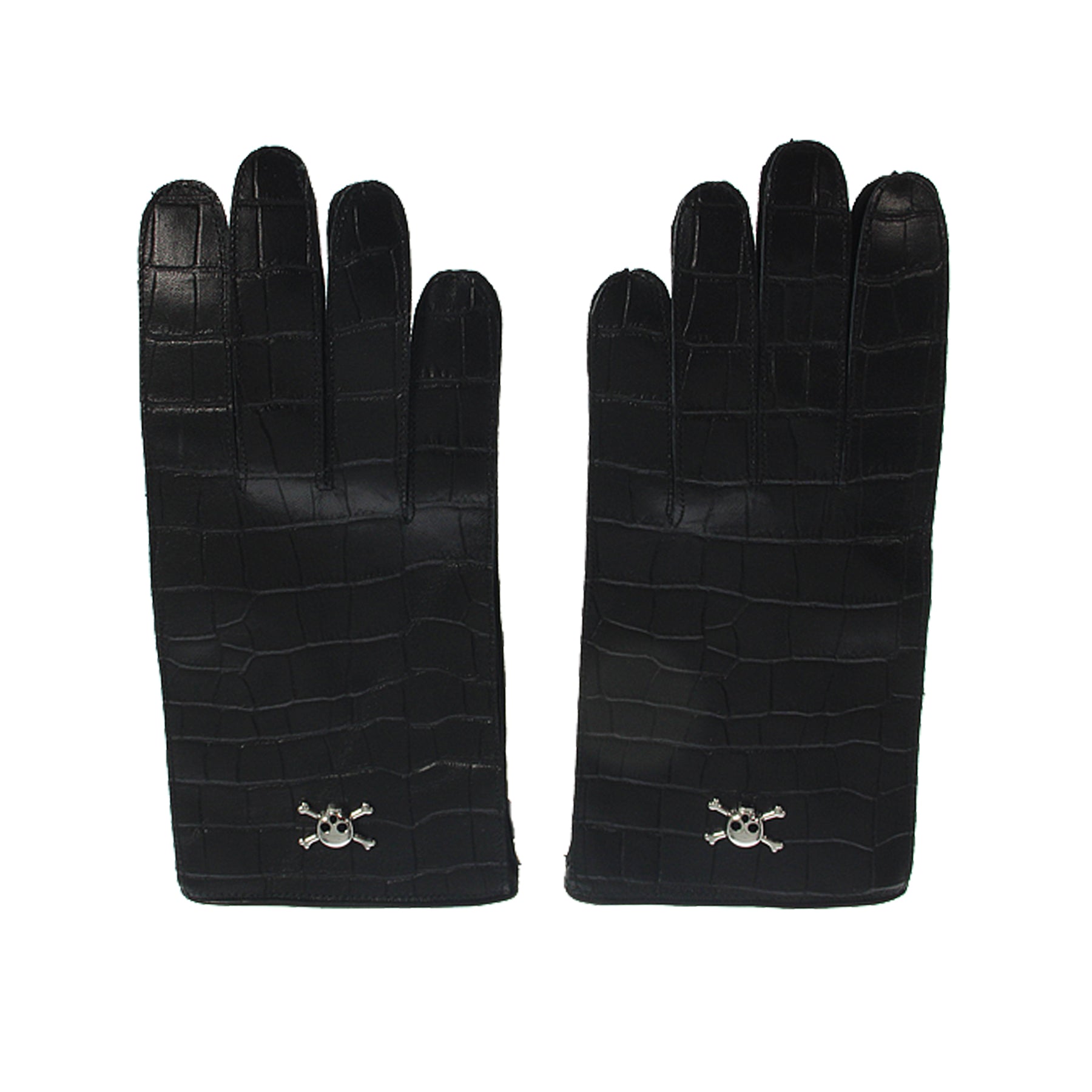 Guanti in pelle Vivienne Westwood, effetto cocco, interno in lana, teschio simbolo dei pirati applicato, retail € 540,00