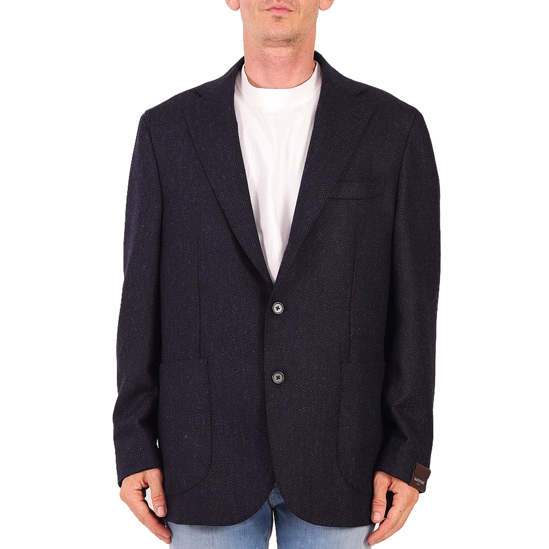 Sartiture jacket, in wool, blue herringbone color, 2-button closure, with pockets, double vent on the back