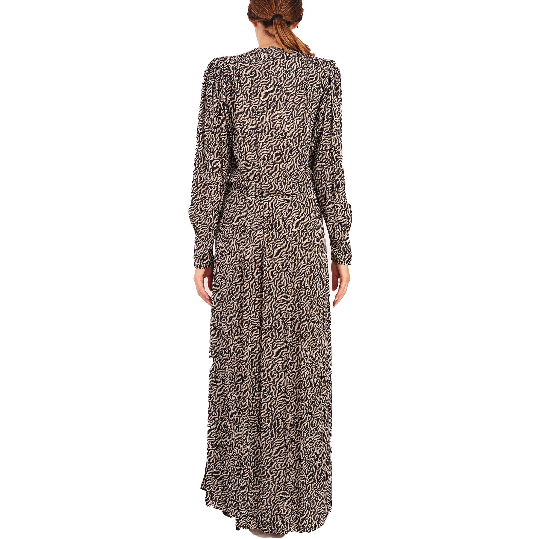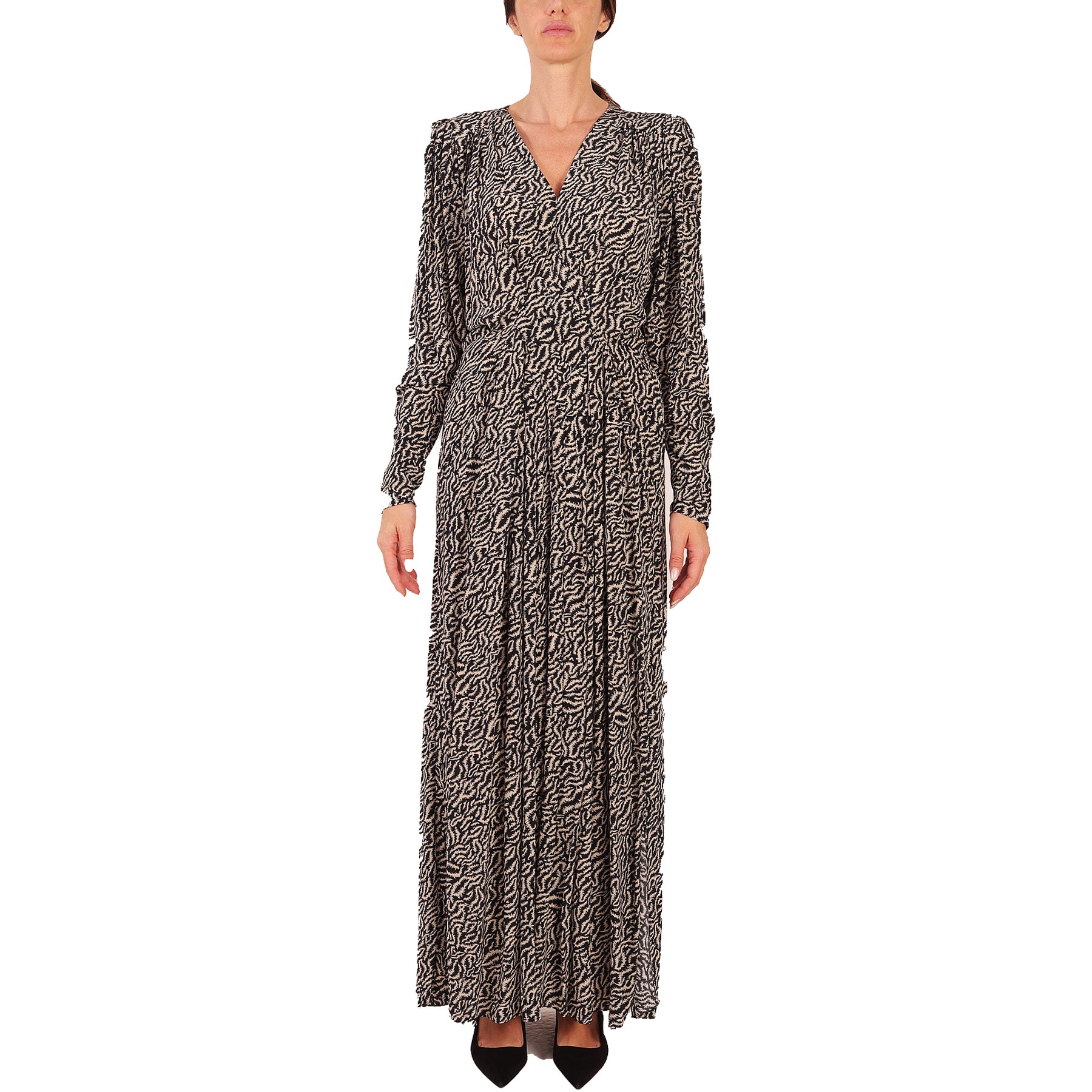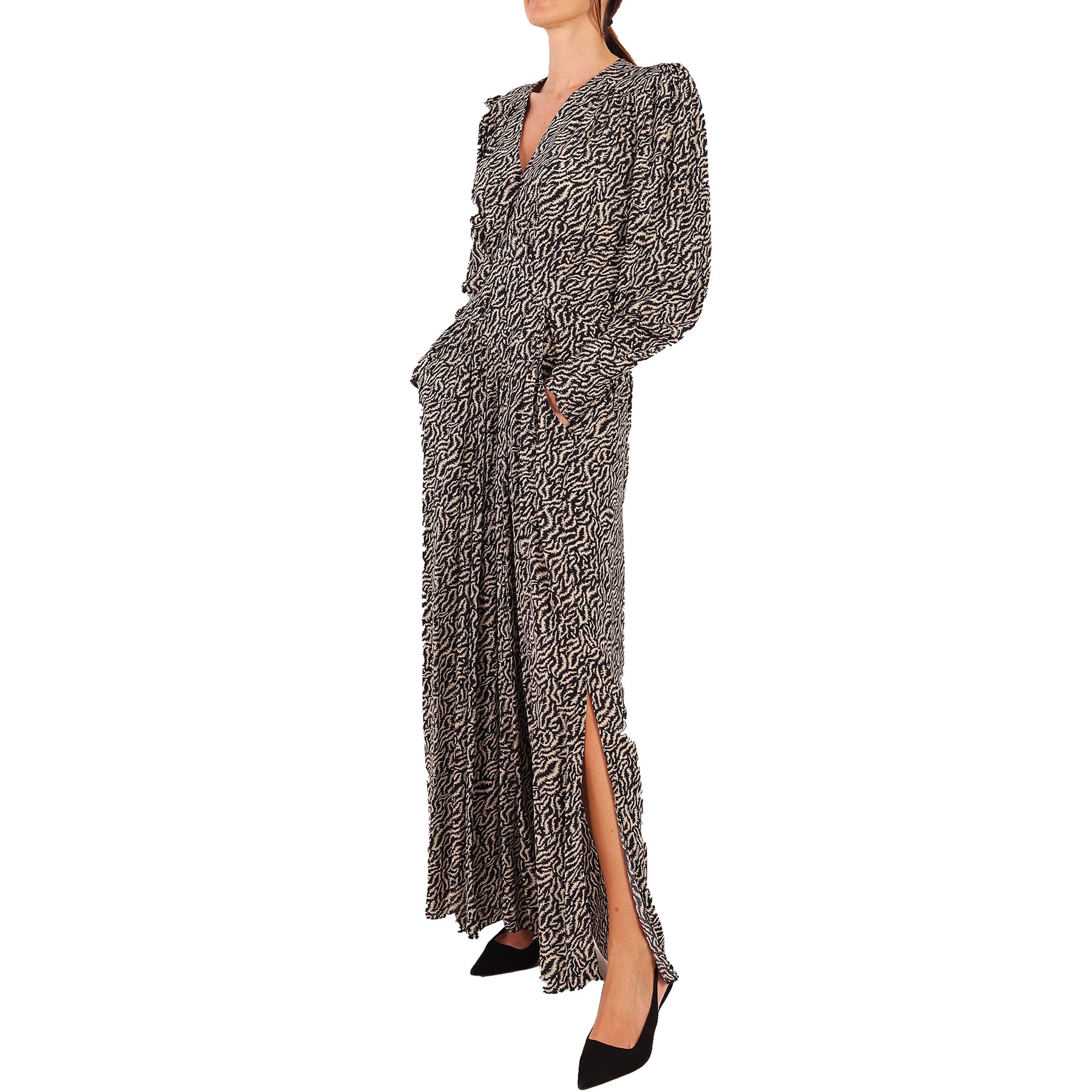 Abito lungo Isabel Marant, a fantasia, bianca e nera, scollo a v, a maniche lunghe, zip laterale, con tasche