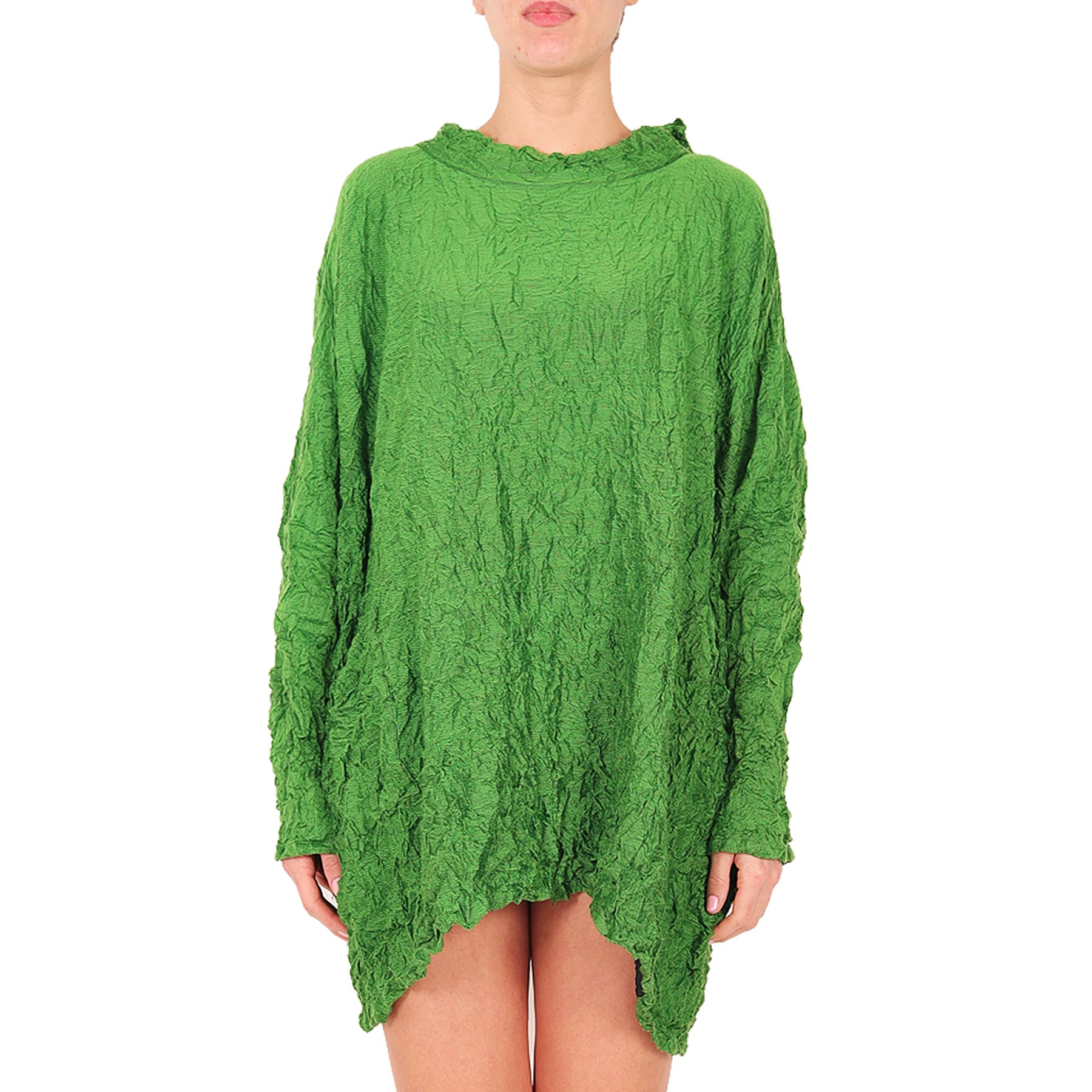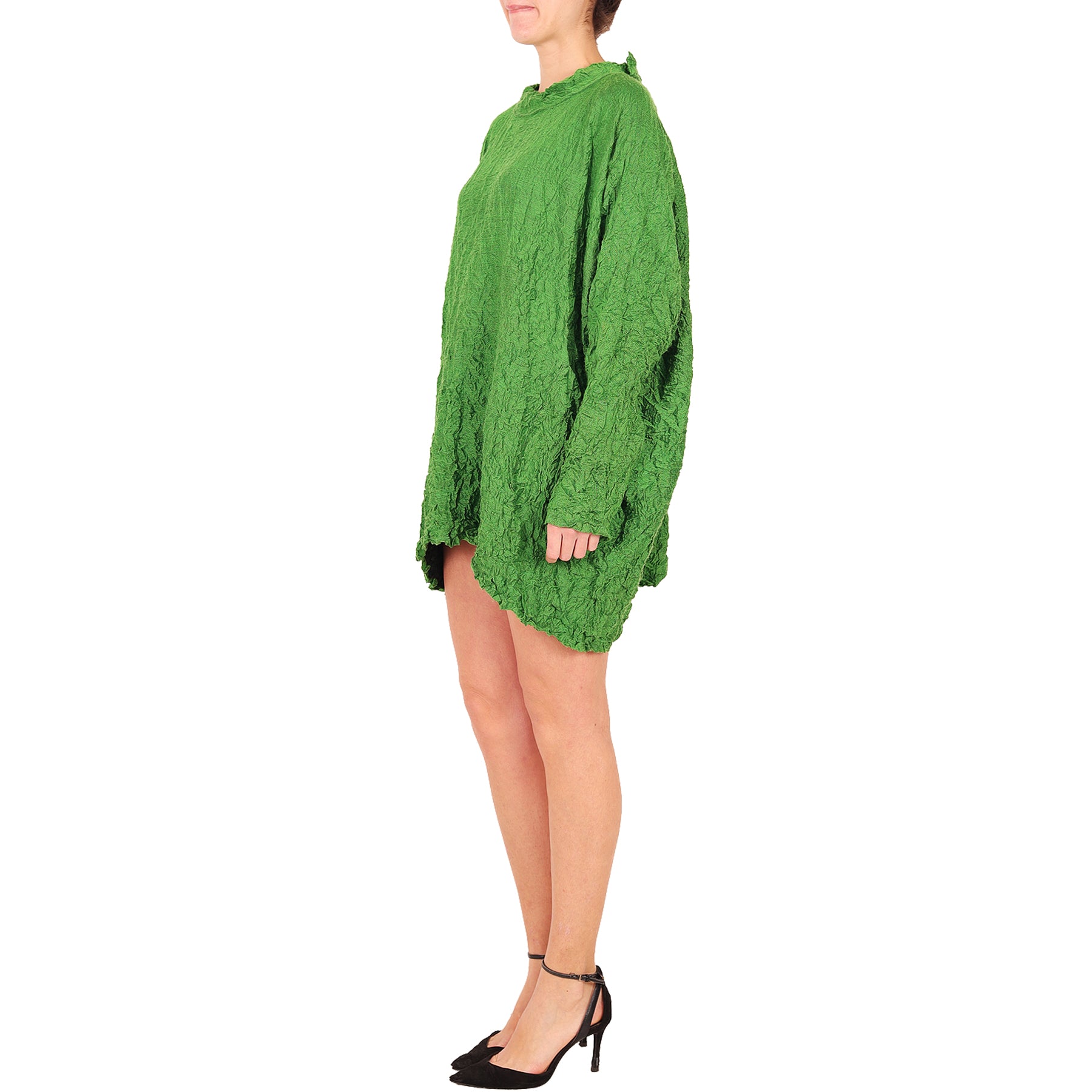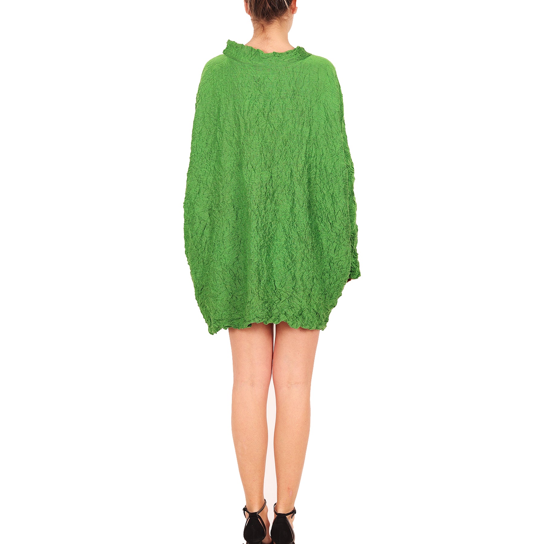 Shu Moriyama dress, green, wrinkled effect, long sleeves, boat neck, with pocket