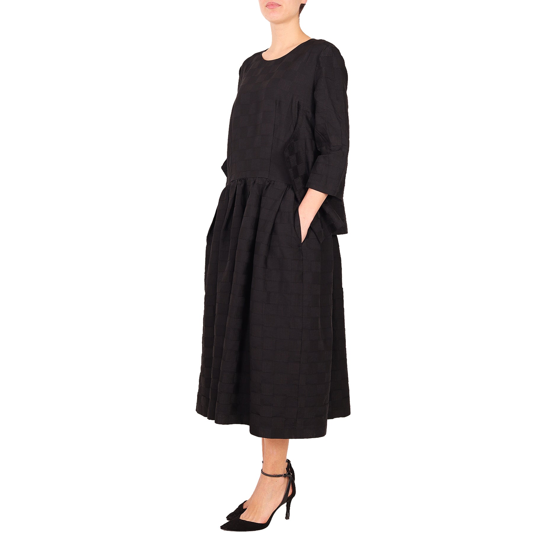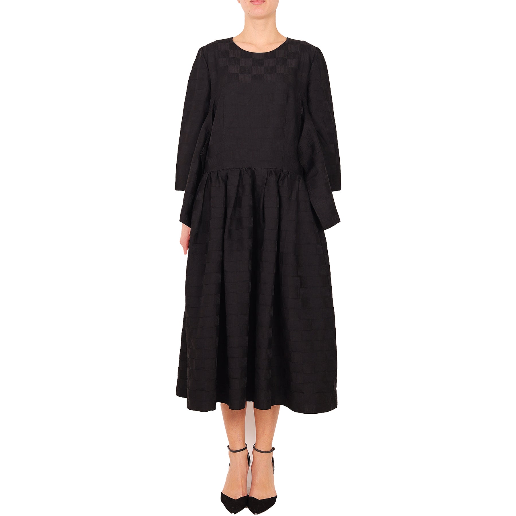 Comme Des Garcons dress, black, crew neck, long sleeves, pleated skirt, pockets, zip fastening
