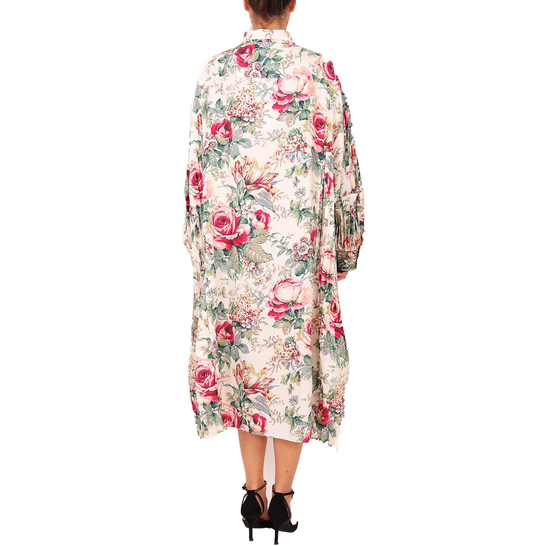 Junya Watanabe long dress, floral, with long pleated sleeves, button closure, with pocket
