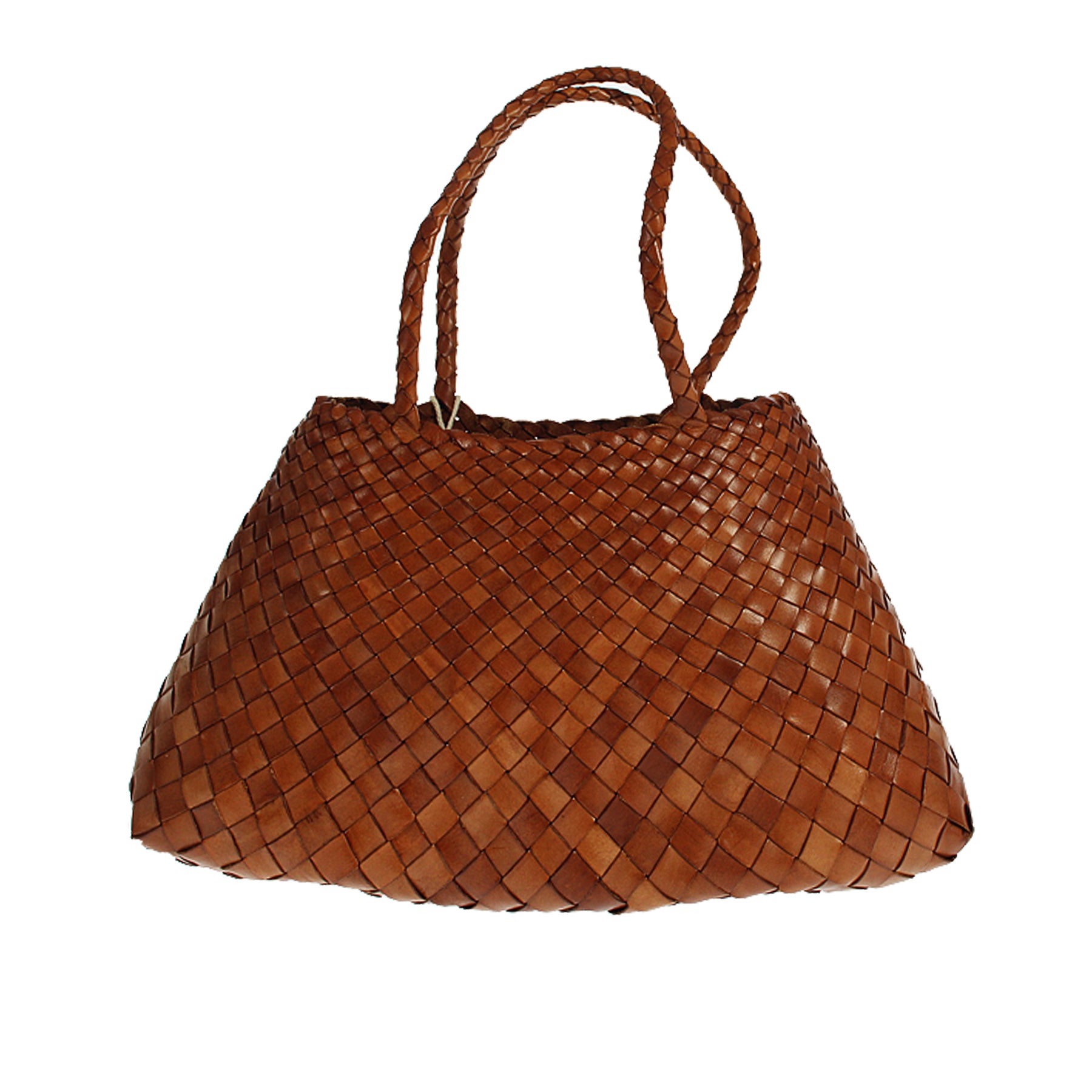 Borsa Dragon Diffusion, modello Santa Croce tapered big, borsa a spalla, colore marrone cuoio, con iconico motivo intrecciato, intrecciata a mano, in pelle, doppi manici in pelle intrecciata, borsa perfetta per ogni occasione, modello shopper, interno non foderato, senza chiusura, stile iconico e intramontabile