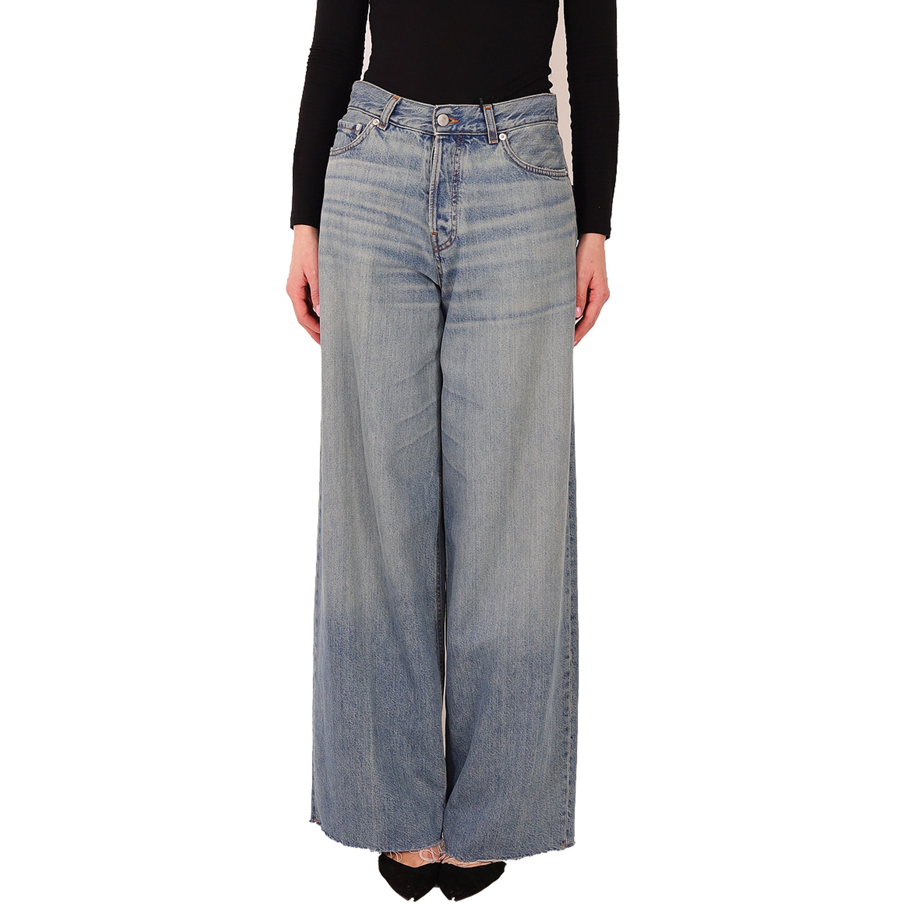 Denim Haikure, blu slavato, con cinque tasche, chiusura con bottoni