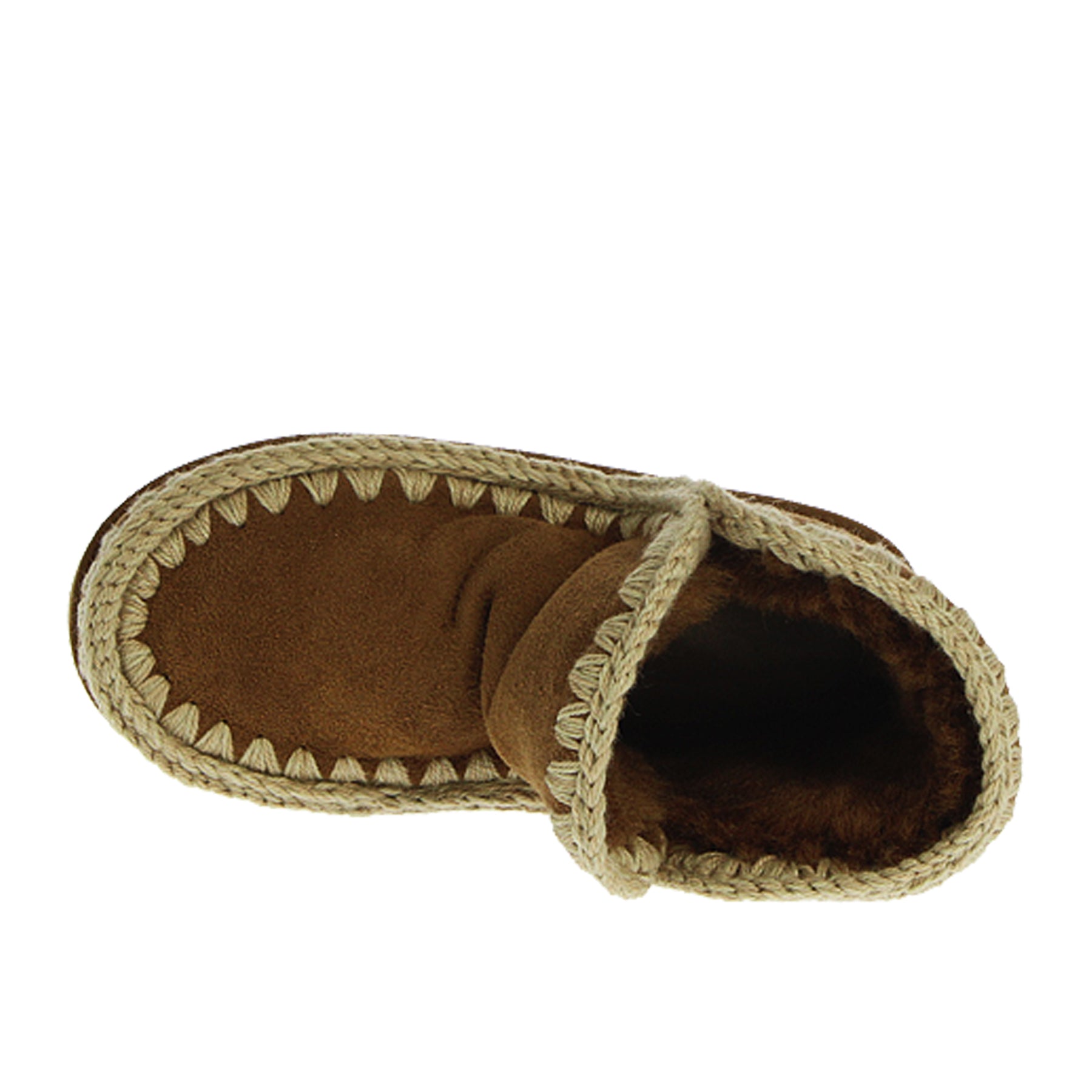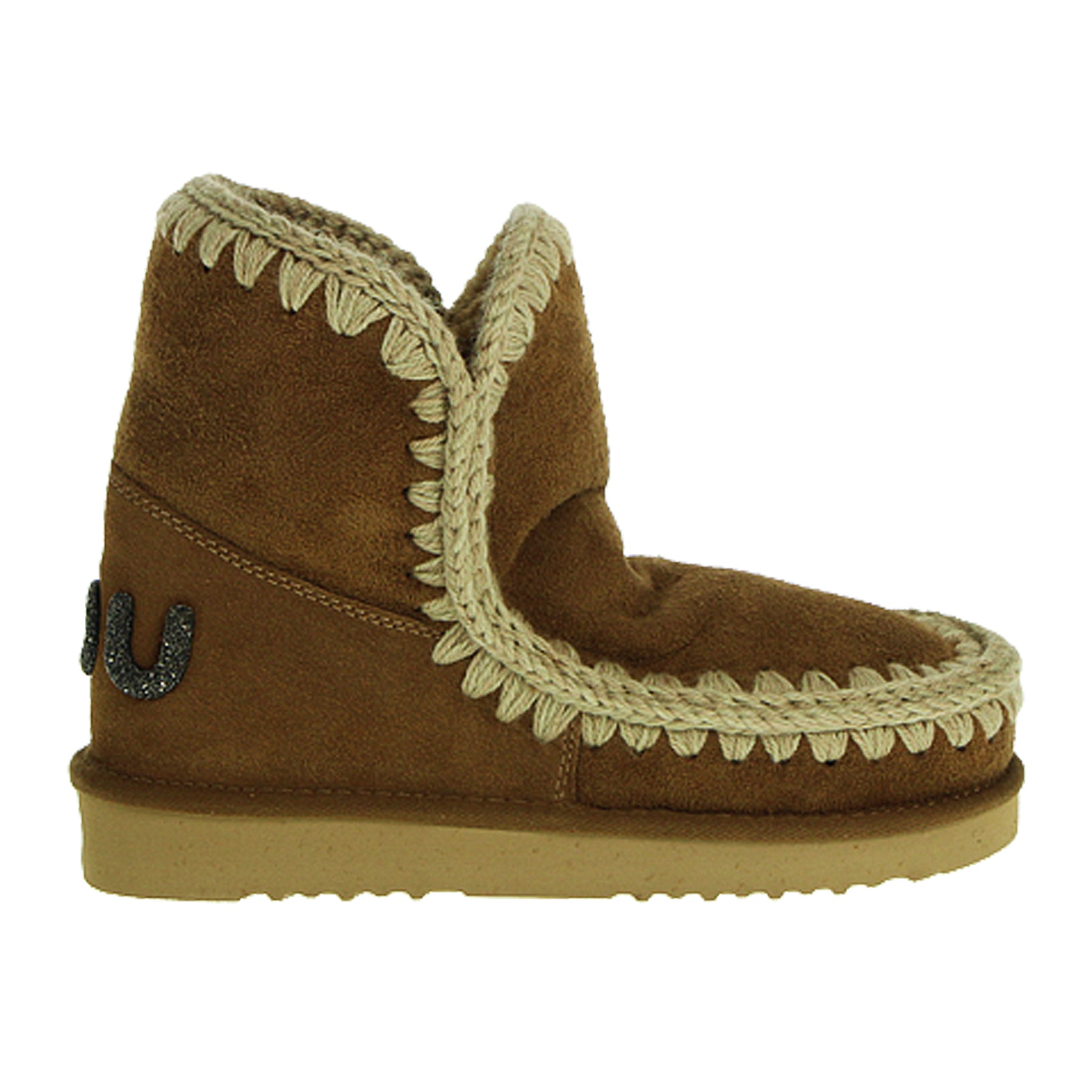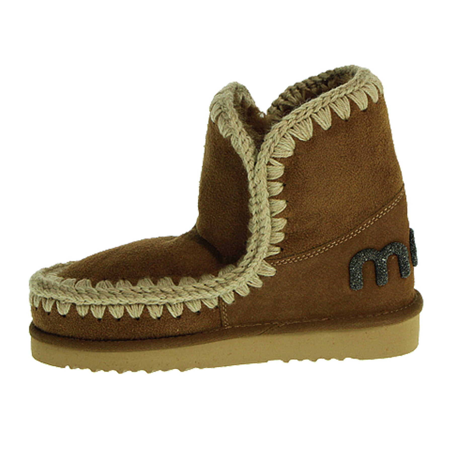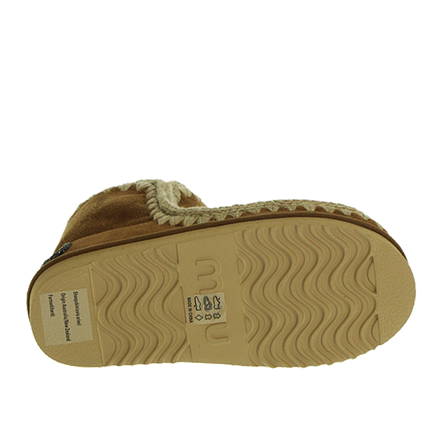 Eskimo Mou, camoscio, con interno montone, colore marrone, con logo glitter, bordo in lana all'uncinetto, con suola in gomma