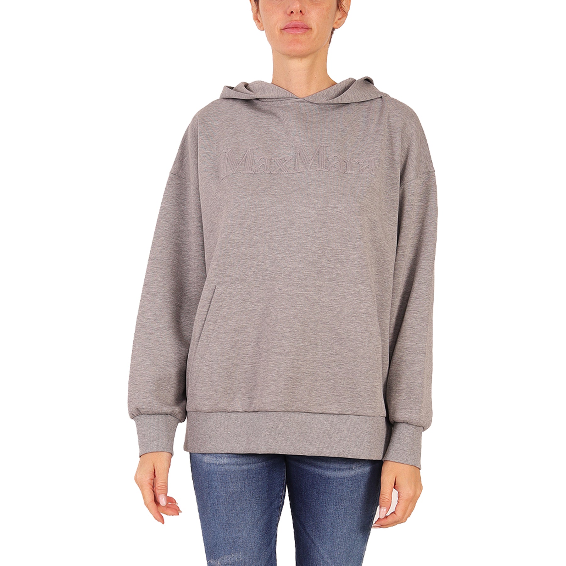 Max Mara sweatshirt, grey, with hood, with embroidered logo on the front, with front pocket, in a cotton blend