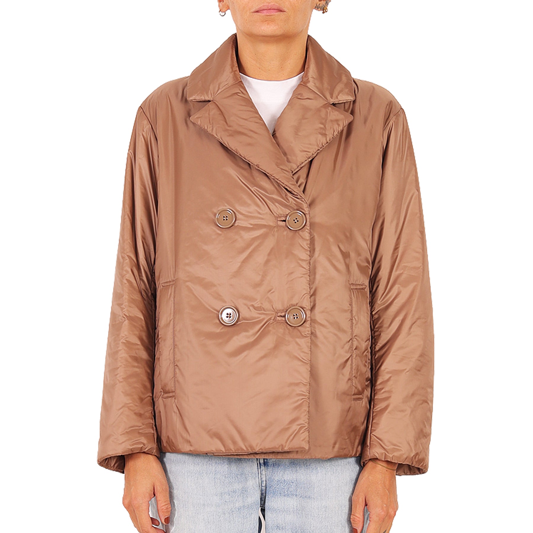 Giacca trapuntata Max Mara, a doppiopetto, color beige, con tasche, imbottita