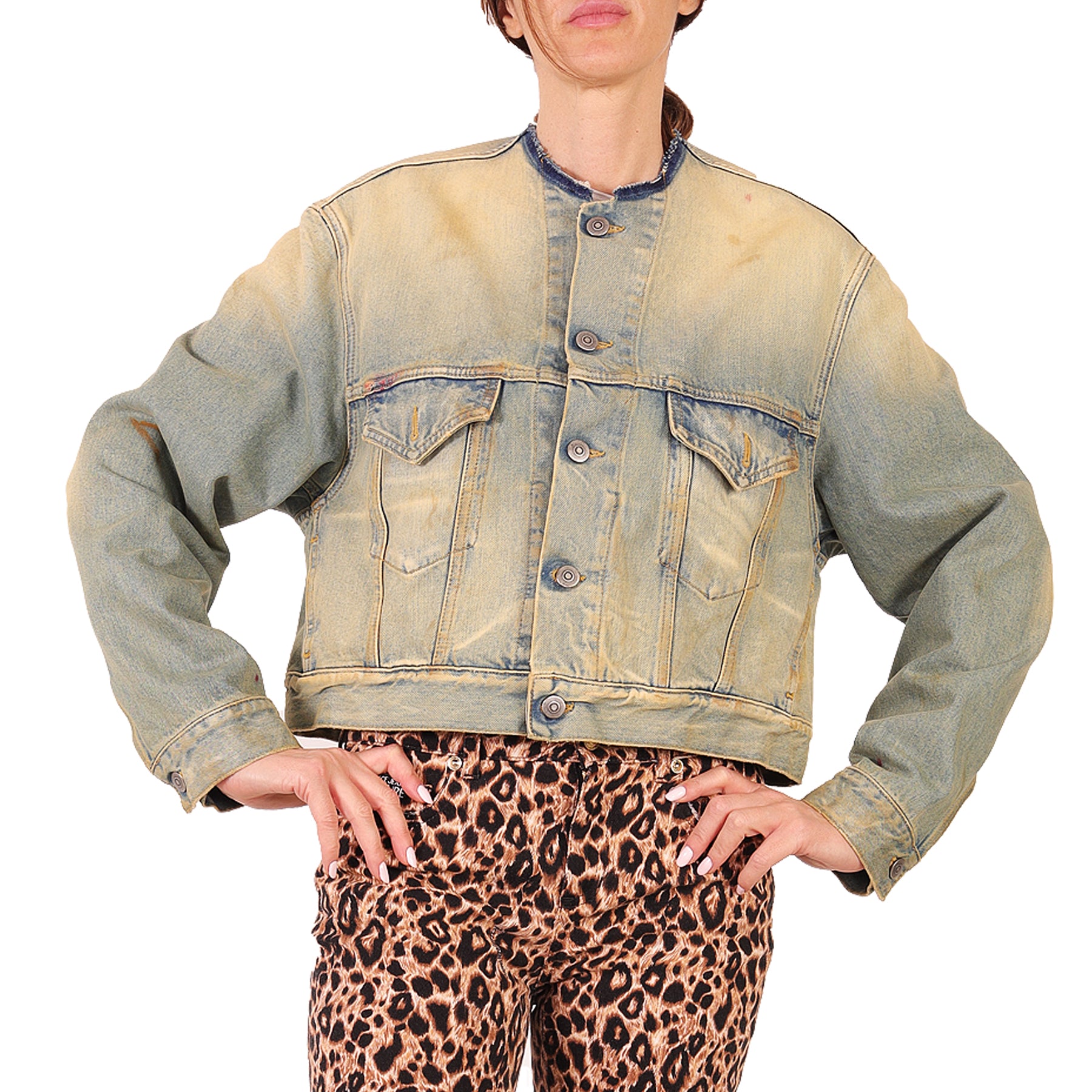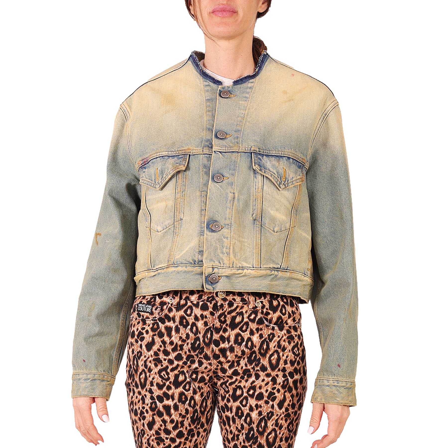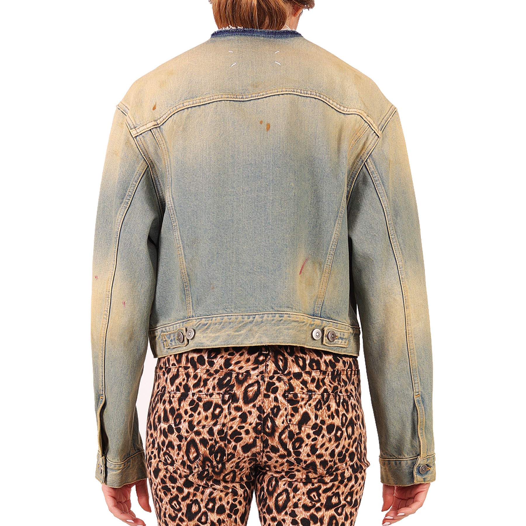 Giacca Maison Margiela, in denim, slavato, con bordi a taglio vivo, con bottoni, con tasche, in cotone