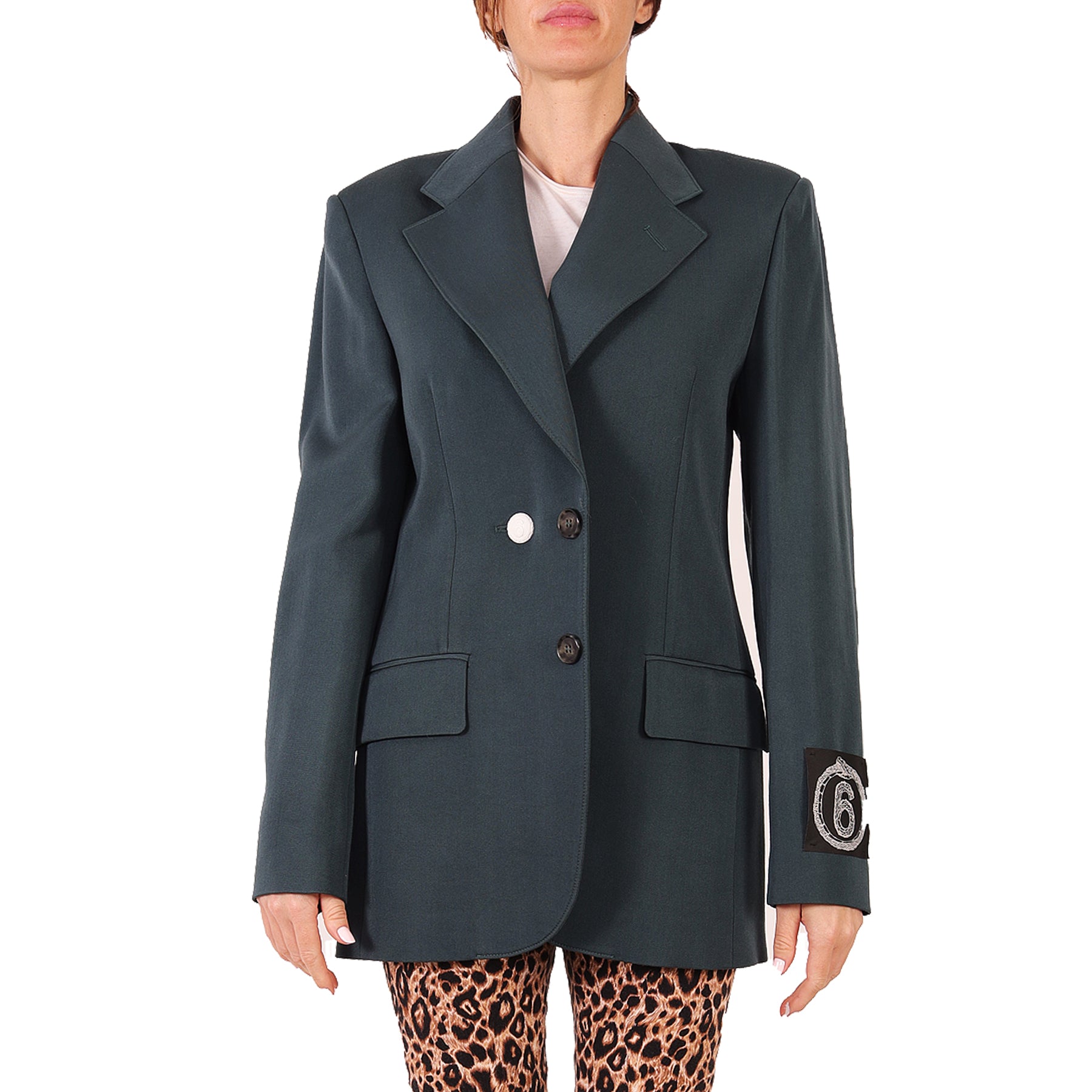 Giacca Maison Margiela MM6, verde scuro, in misto lana, chiusura con bottoni, con tasche