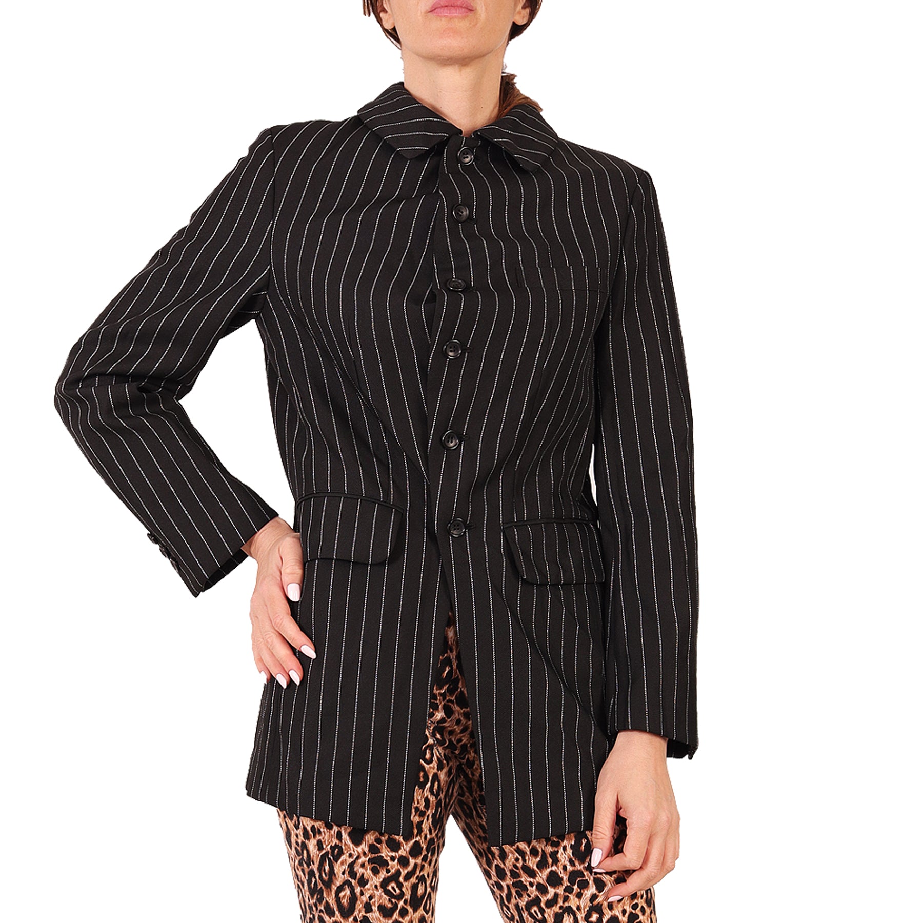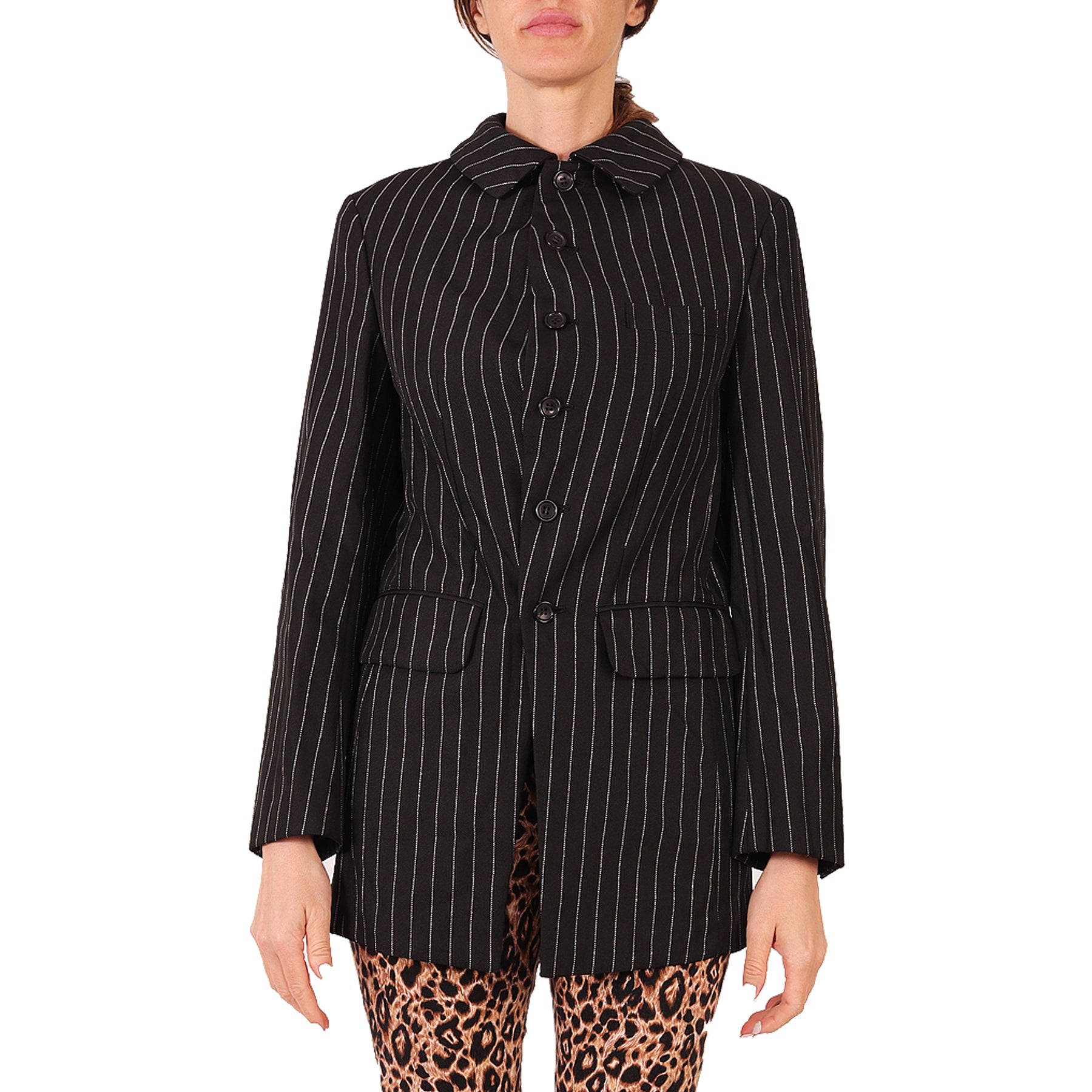 Giacca Comme des Garcons, gessata, colore nero, chiusura con bottoni, con tasche