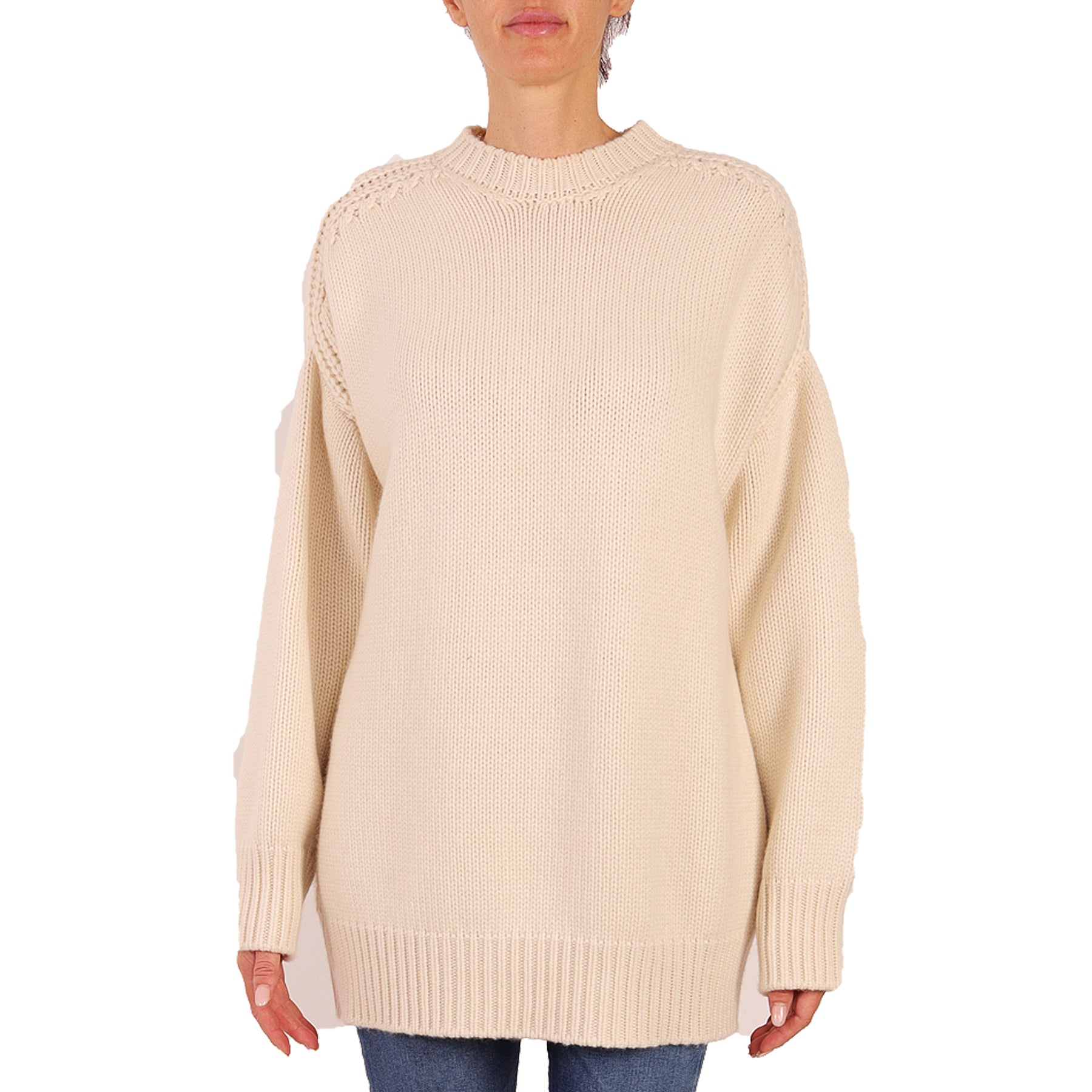 Sa su phi sweater, cashmere, knitted, cream color, crew neck, elastic waist and sleeves