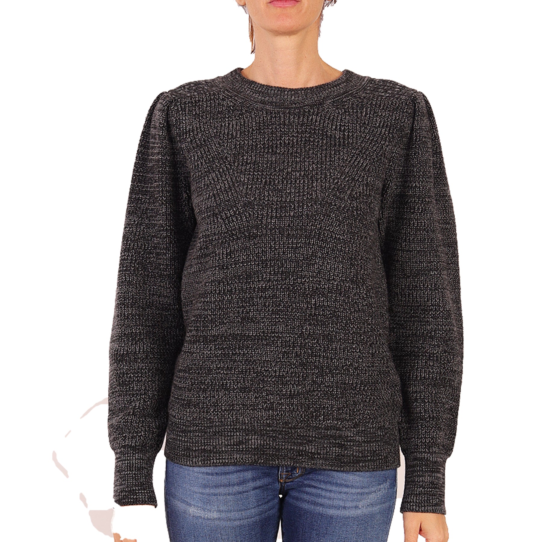 Isabel Marant sweater, in wool, grey color, knitted, round neck, elastic waist and sleeves
