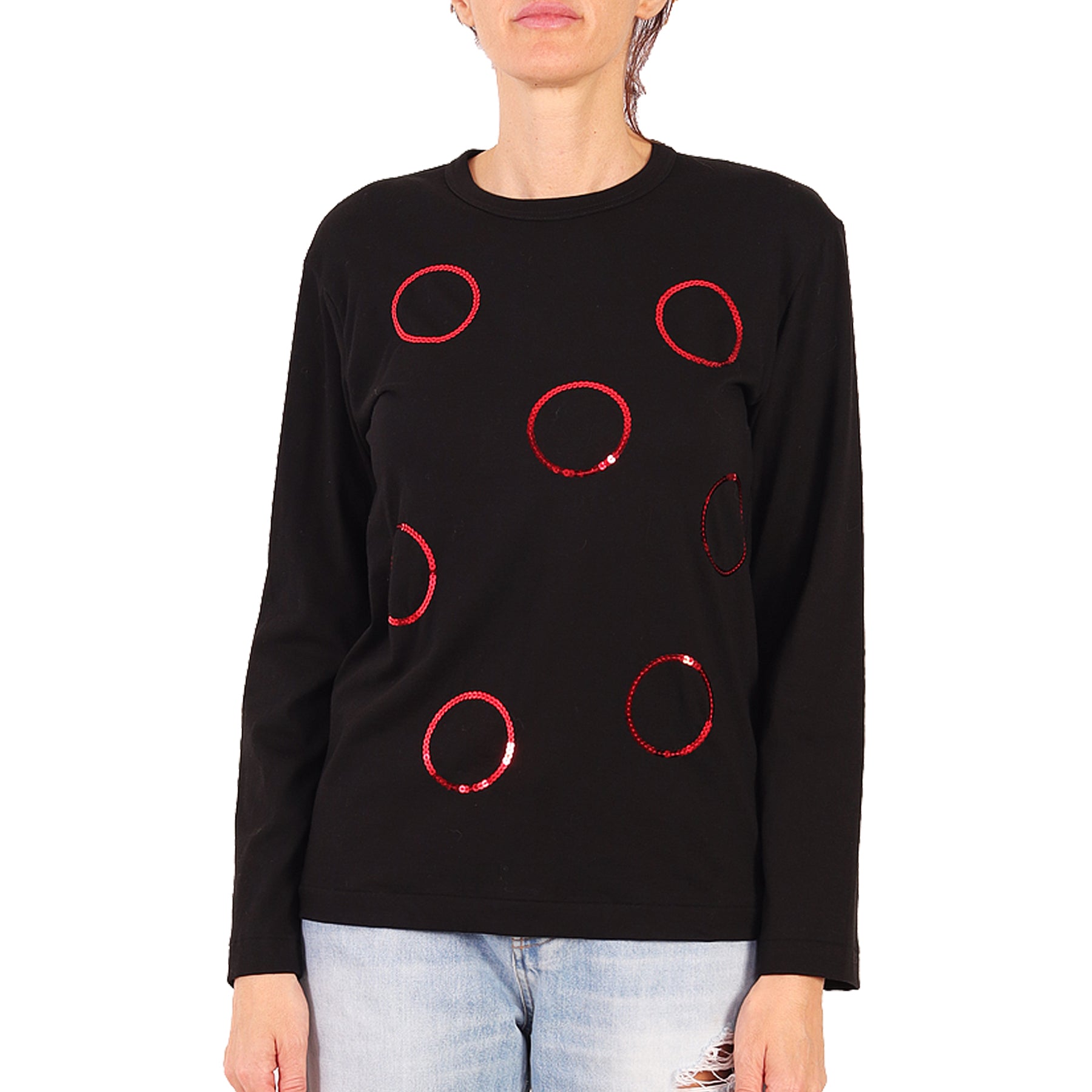 Comme Des Garcons sweater, long sleeves, black color, red sequin applications, crew neck