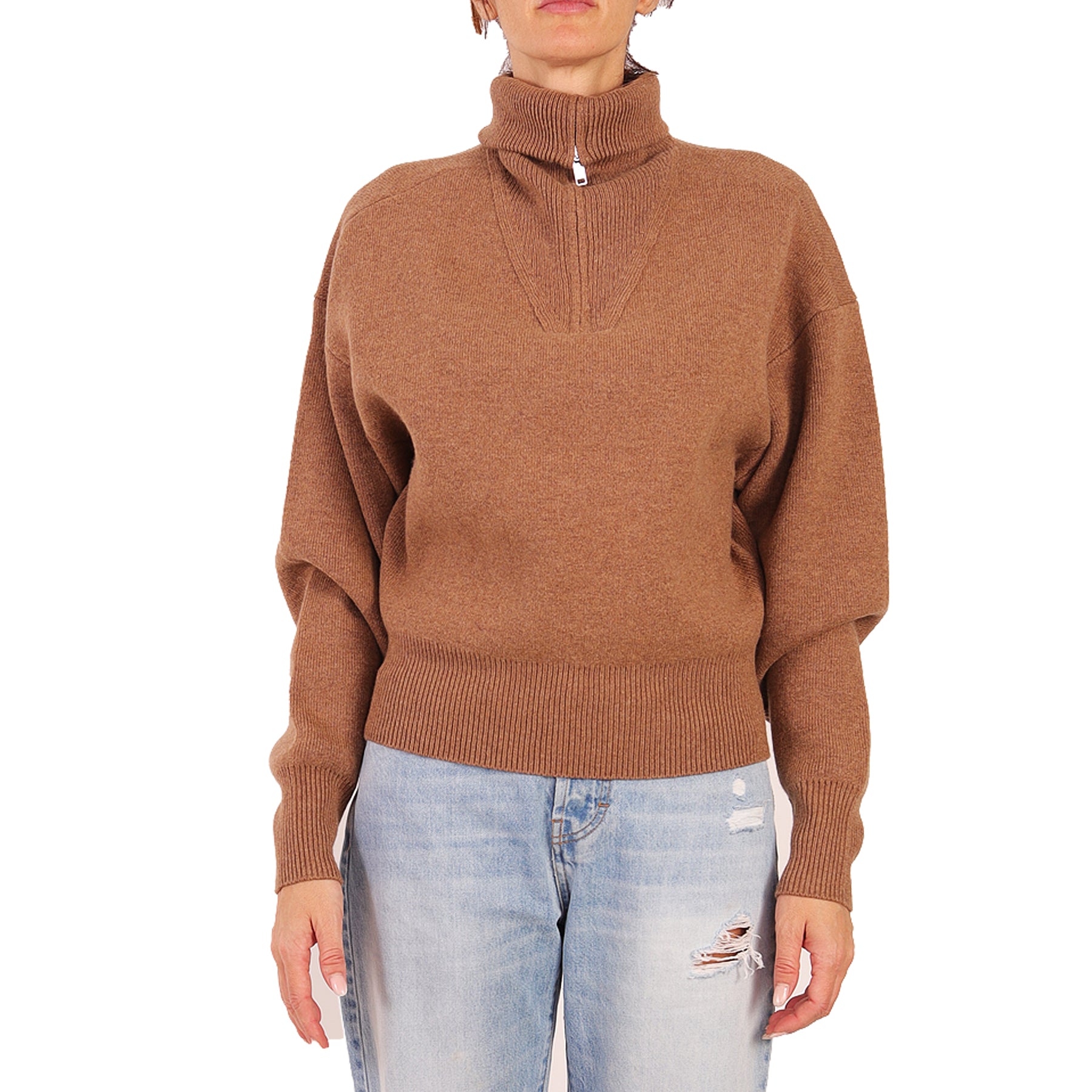 Isabel Marant turtleneck sweater with half zip, beige color