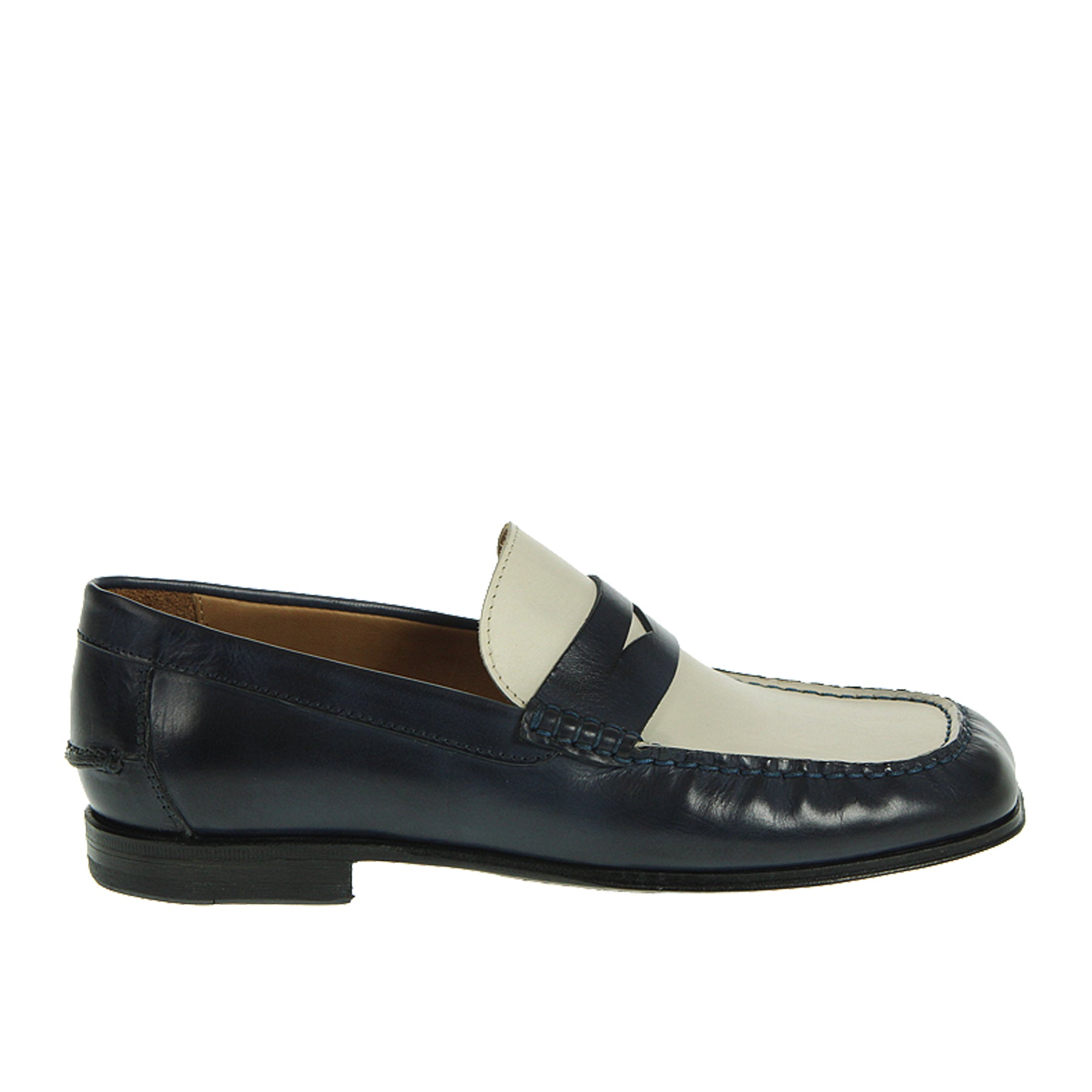 Damy moccasin, in leather, two-tone, blue and white, leather sole
