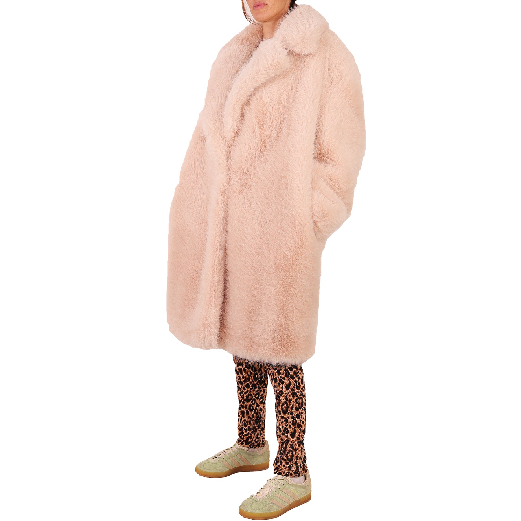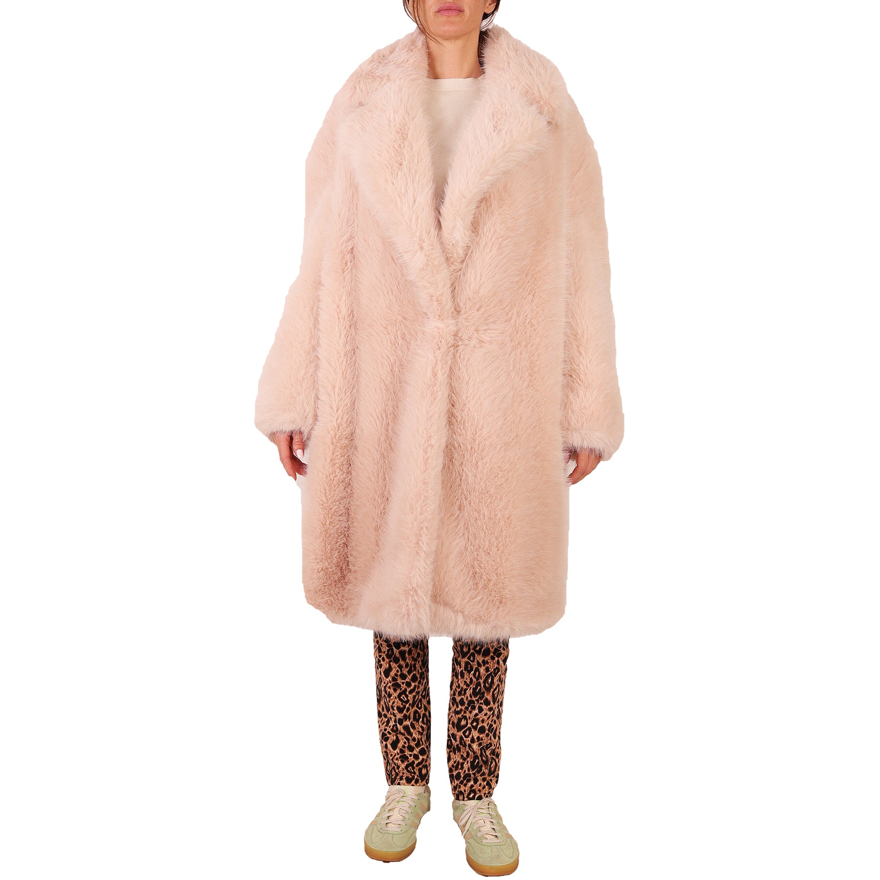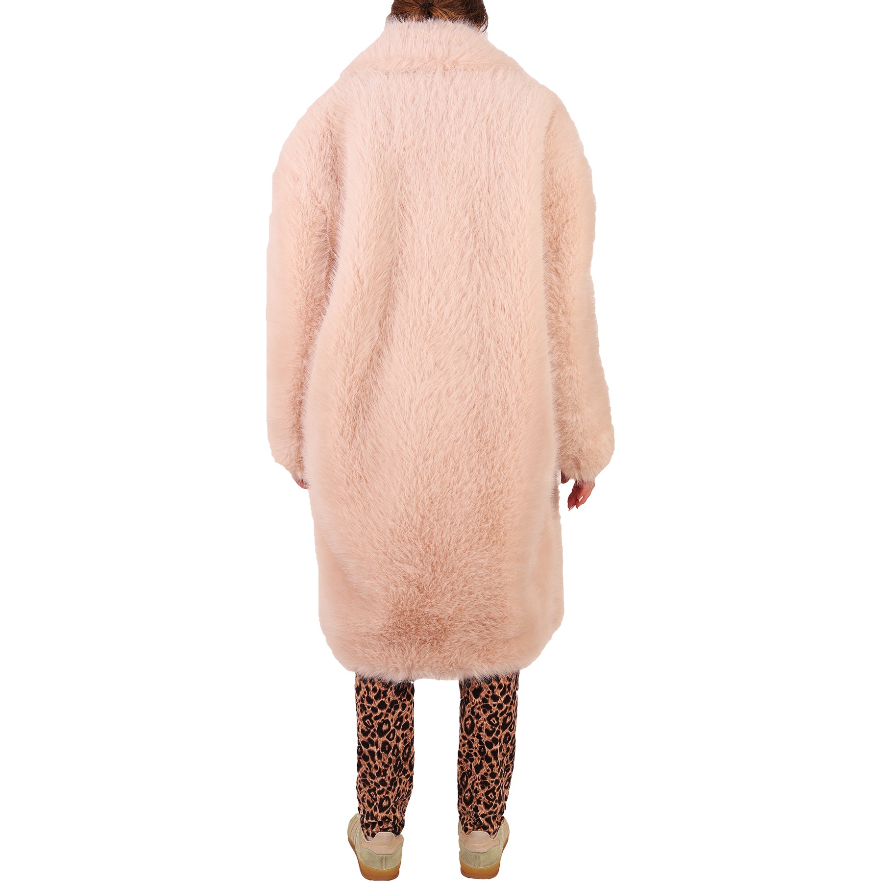 Ecopelliccia lunga Sportmax, rosa, con tasche, chiusura con gancetto