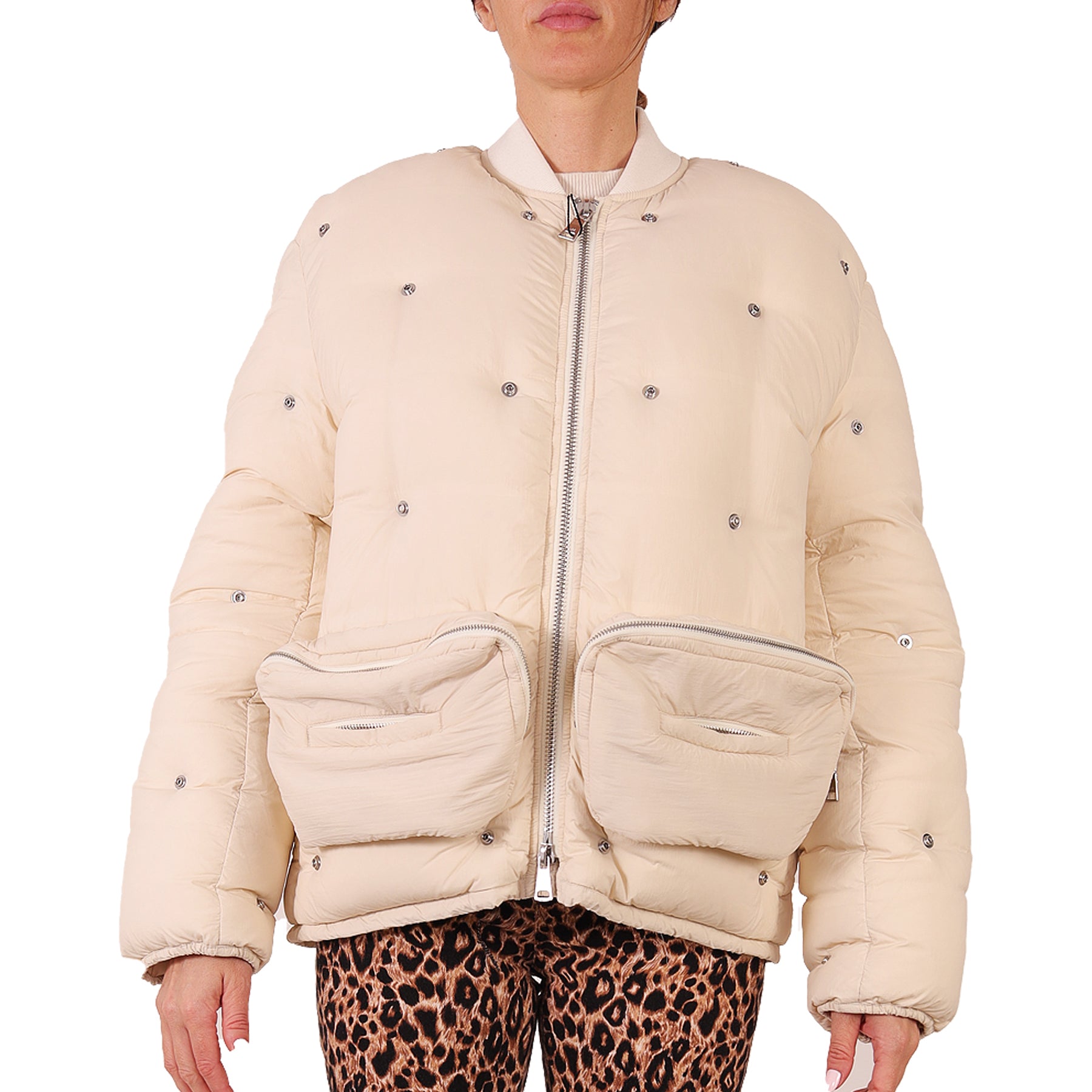 Piumino Add, panna, imbottito, con borchiette, con zip e bottoni, con tasche