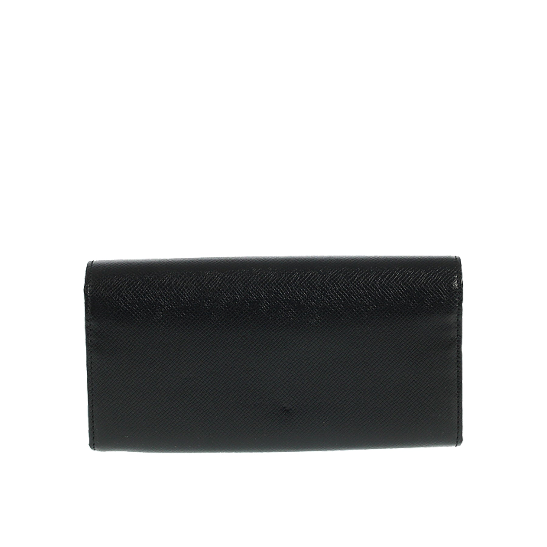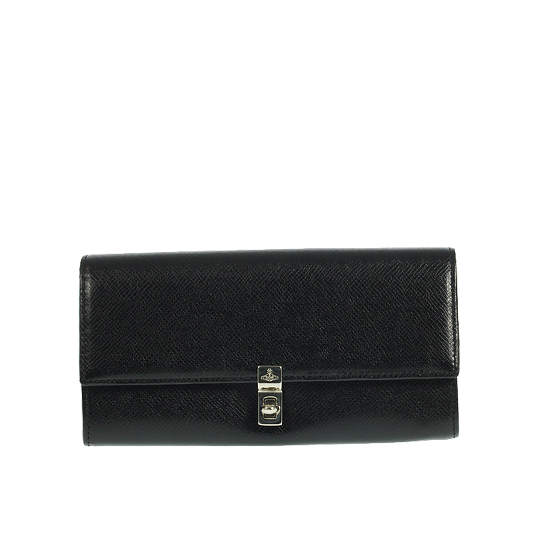 Portafoglio Vivienne Wetwood, in saffiano, colore nero, chiusura con gancio, logo serigrafato, tasca interna con cerniera, doppio scomparto interno, taschine porta carte, lunghezza cm 19, retail € 265,00